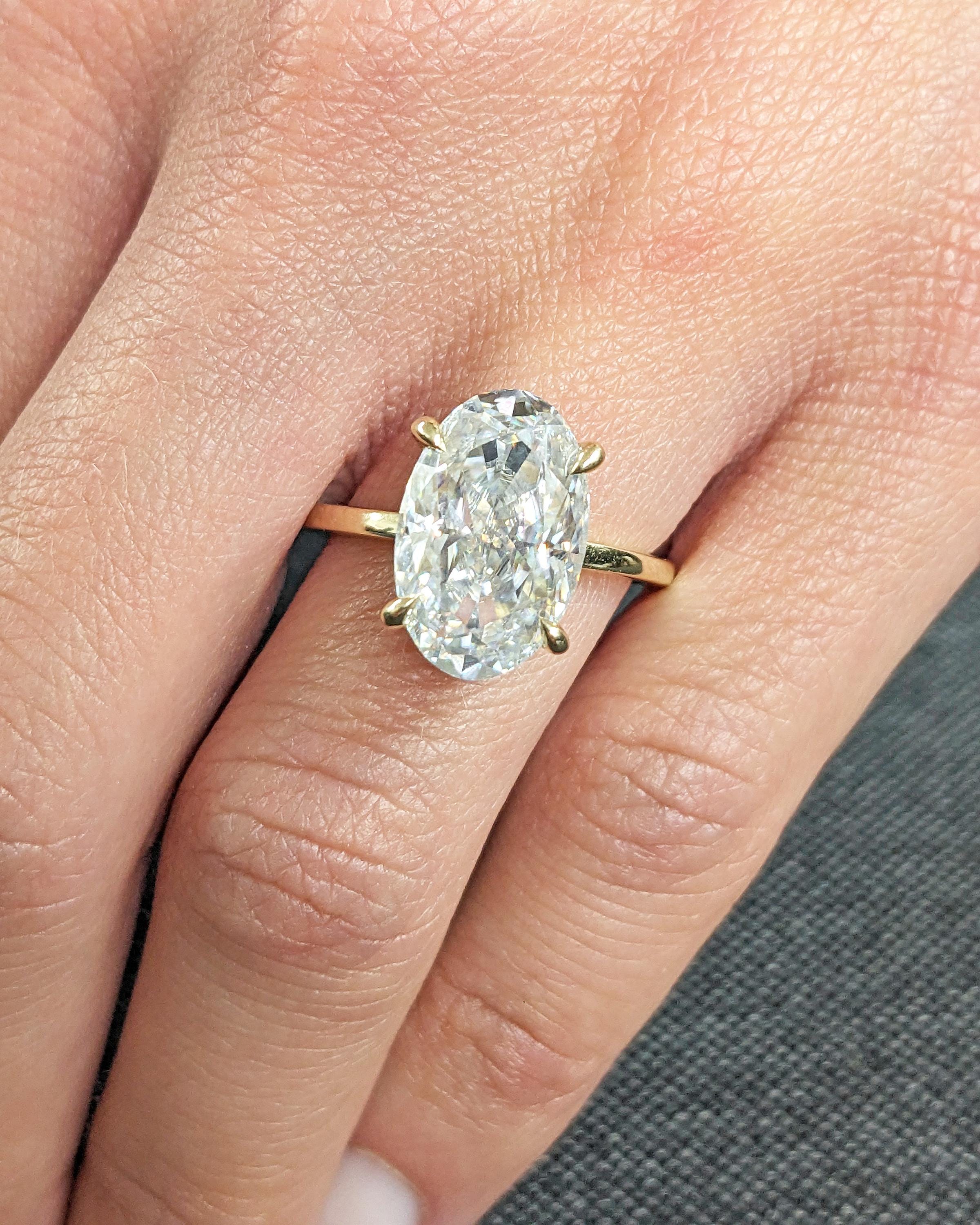 5 Carat IGI Certified Lab Grown Diamond Engagement Ring: Crushed Ice Oval Solitaire Lab Diamond Wedding Ring in 14K Yellow Gold