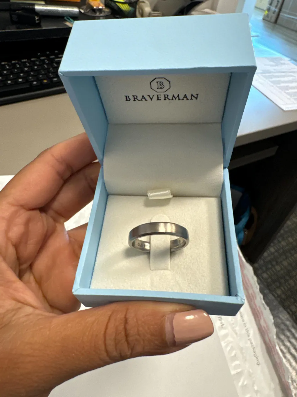 This hand made ring is crafted of the finest quality titanium. The ring is brushed with shiny polished beveled edges. It's comfort fit and can be as a day to day accessory or as men’s wedding band or engagement ring.