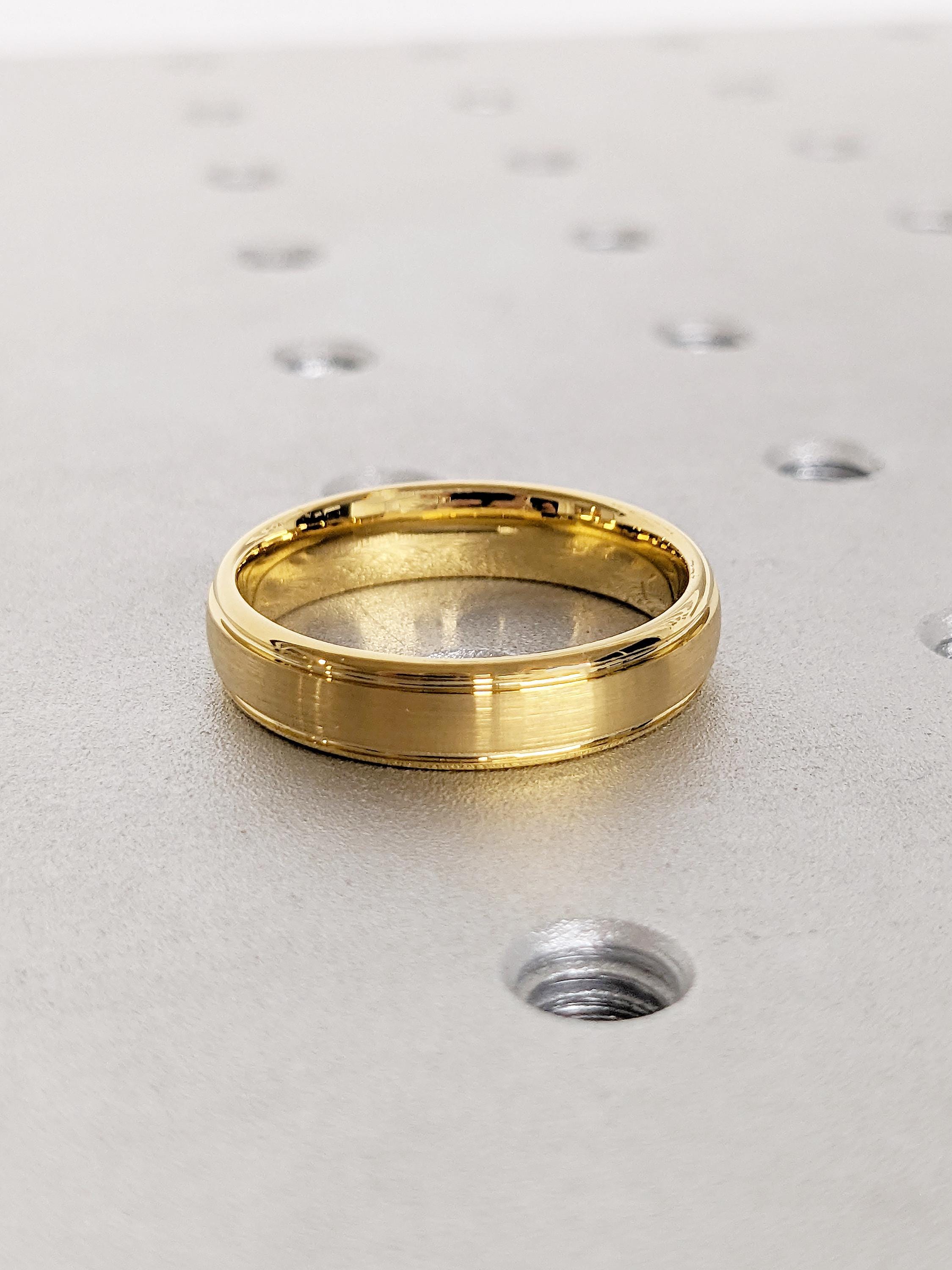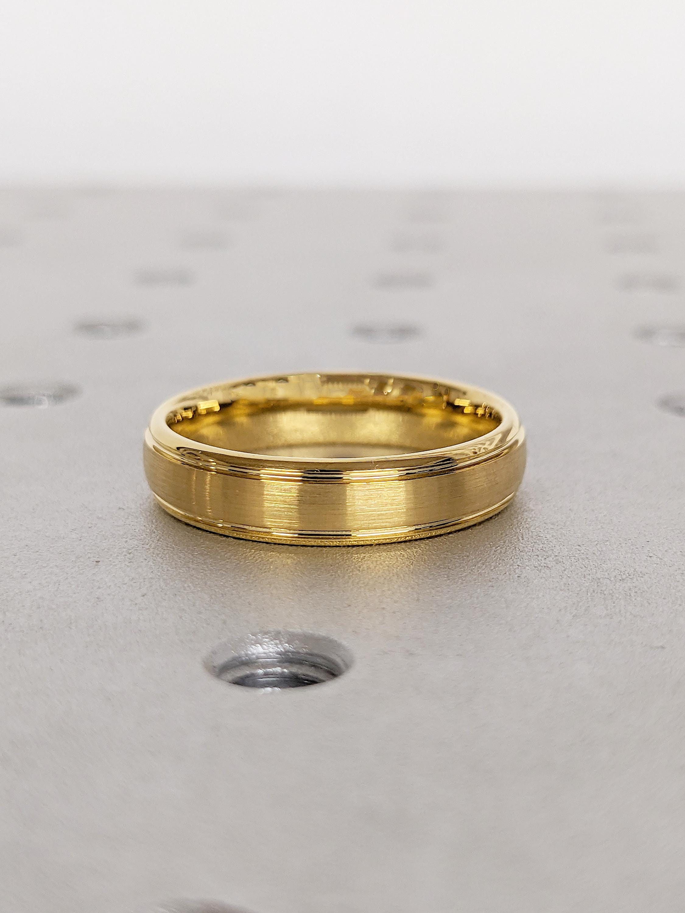 5mm Tungsten Ring, Men's Wedding Ring, Yellow Gold Brushed Ring, Men's Engagement Ring, Personalized Ring, Unique Gift for Him, Gold Ring