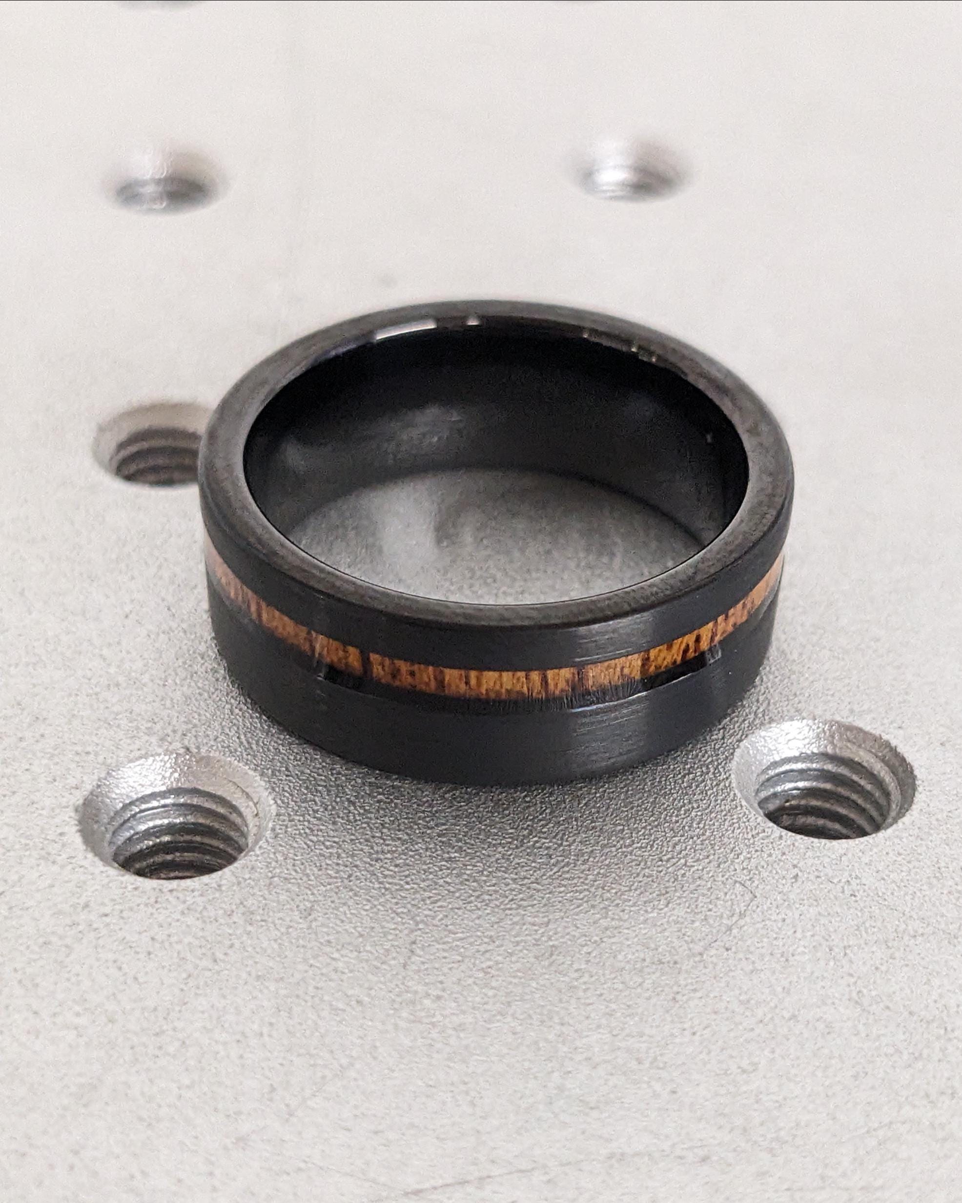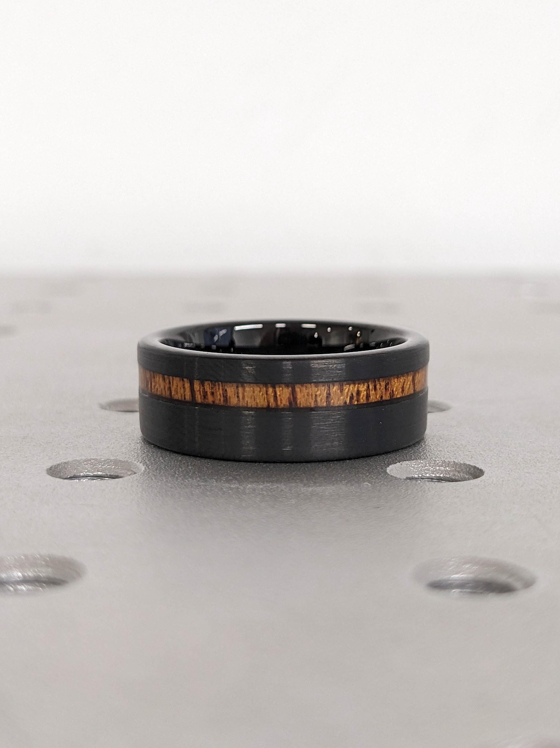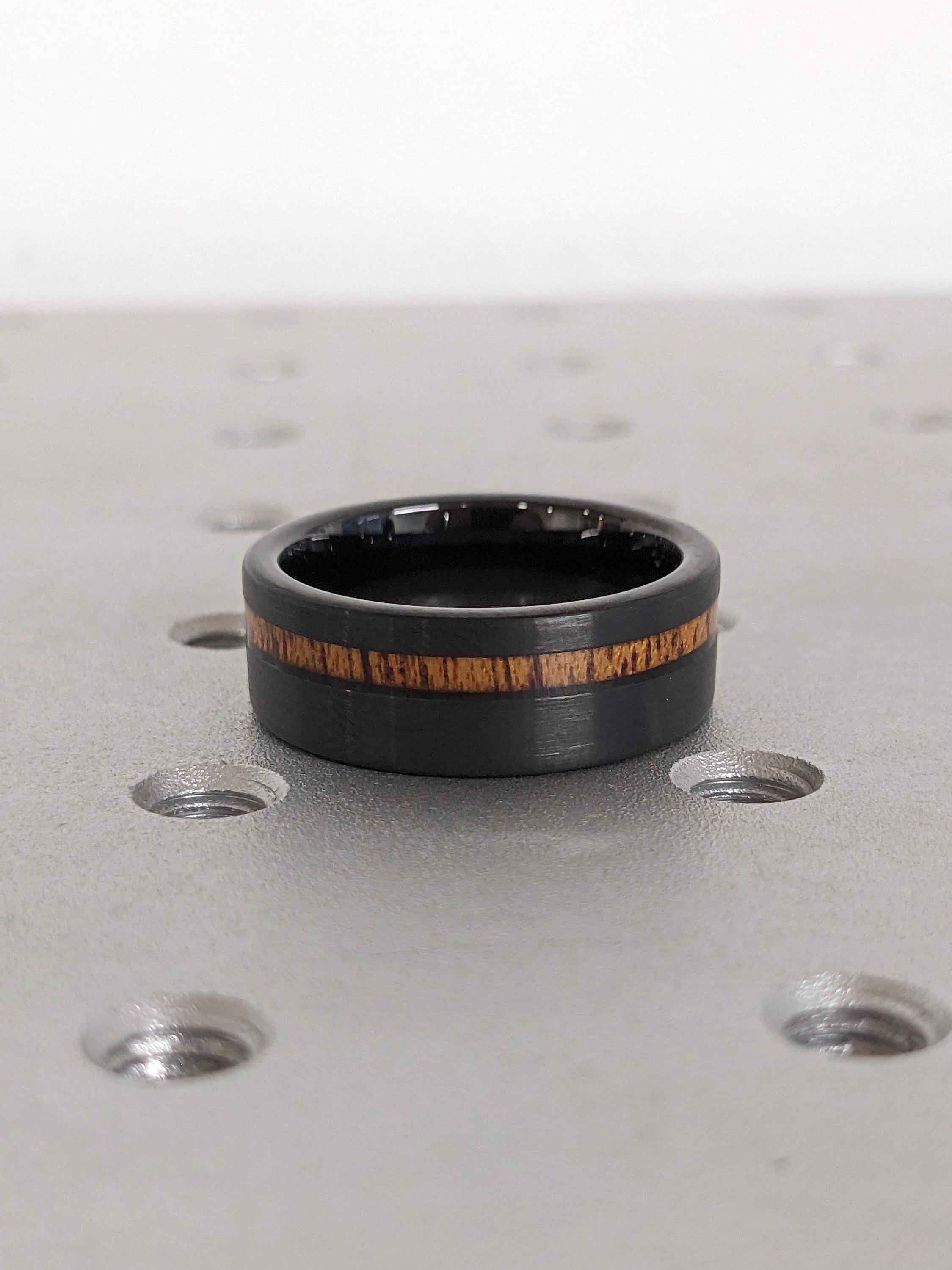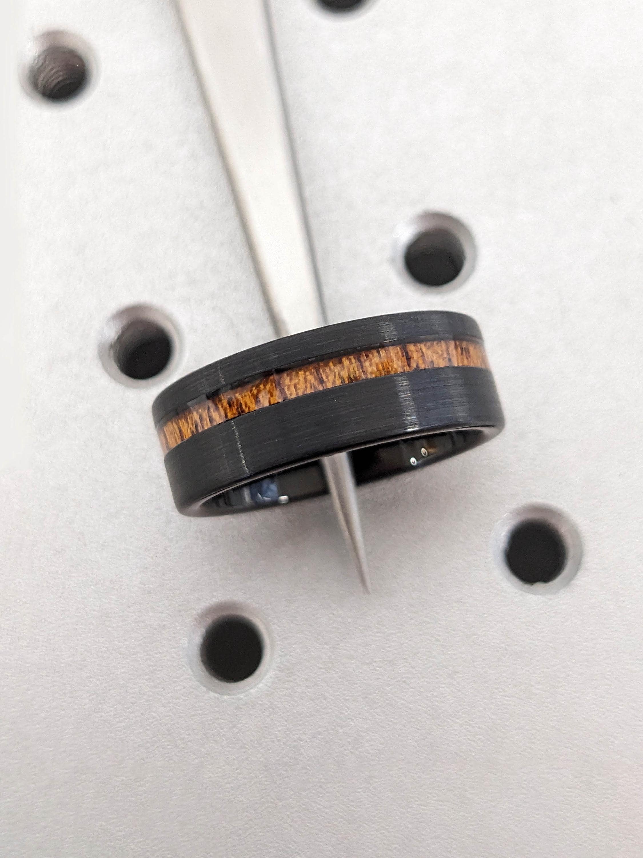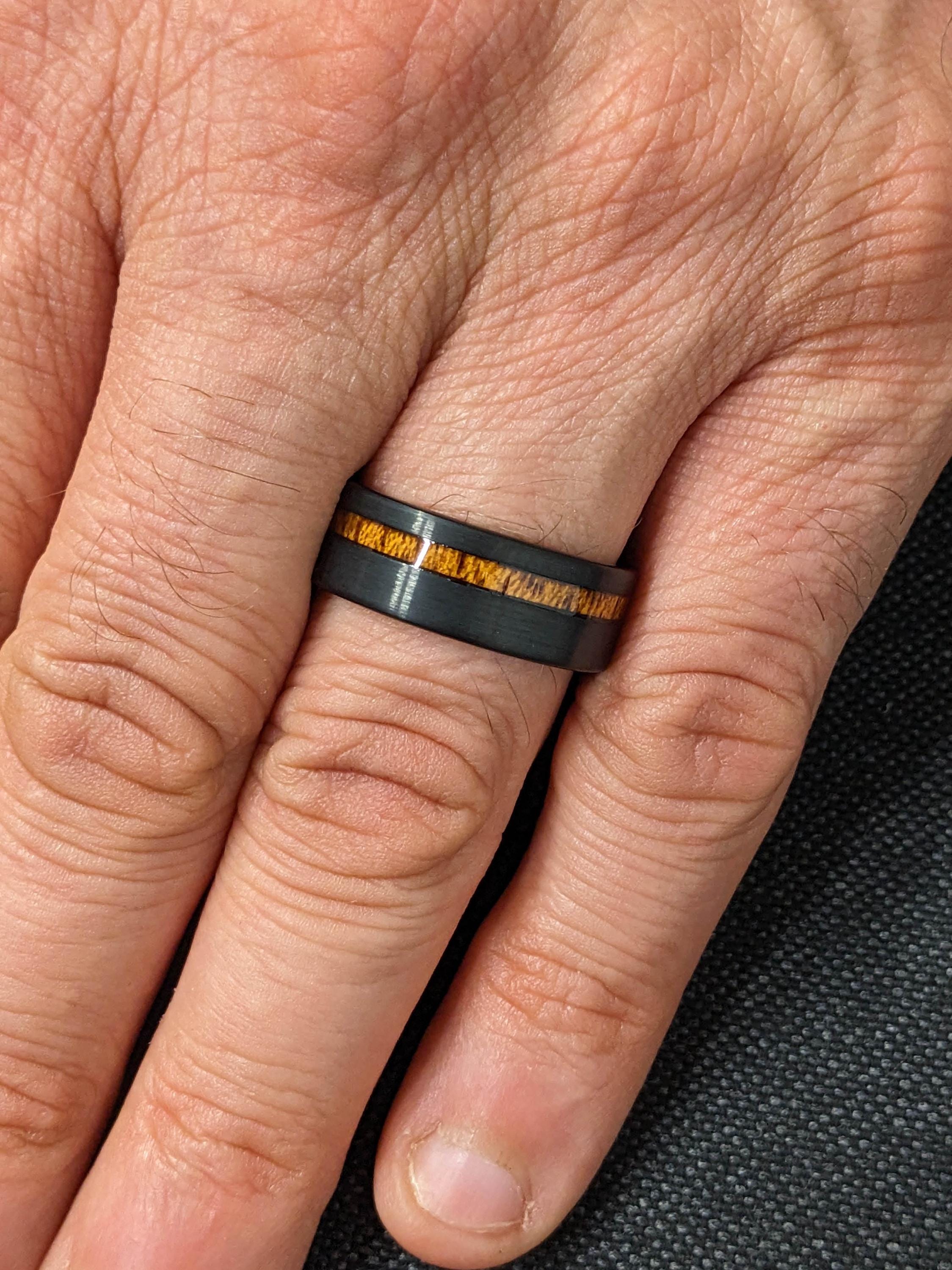 8MM Black Tungsten Ring with Wood Inlay | Brushed Mens Engagement Ring