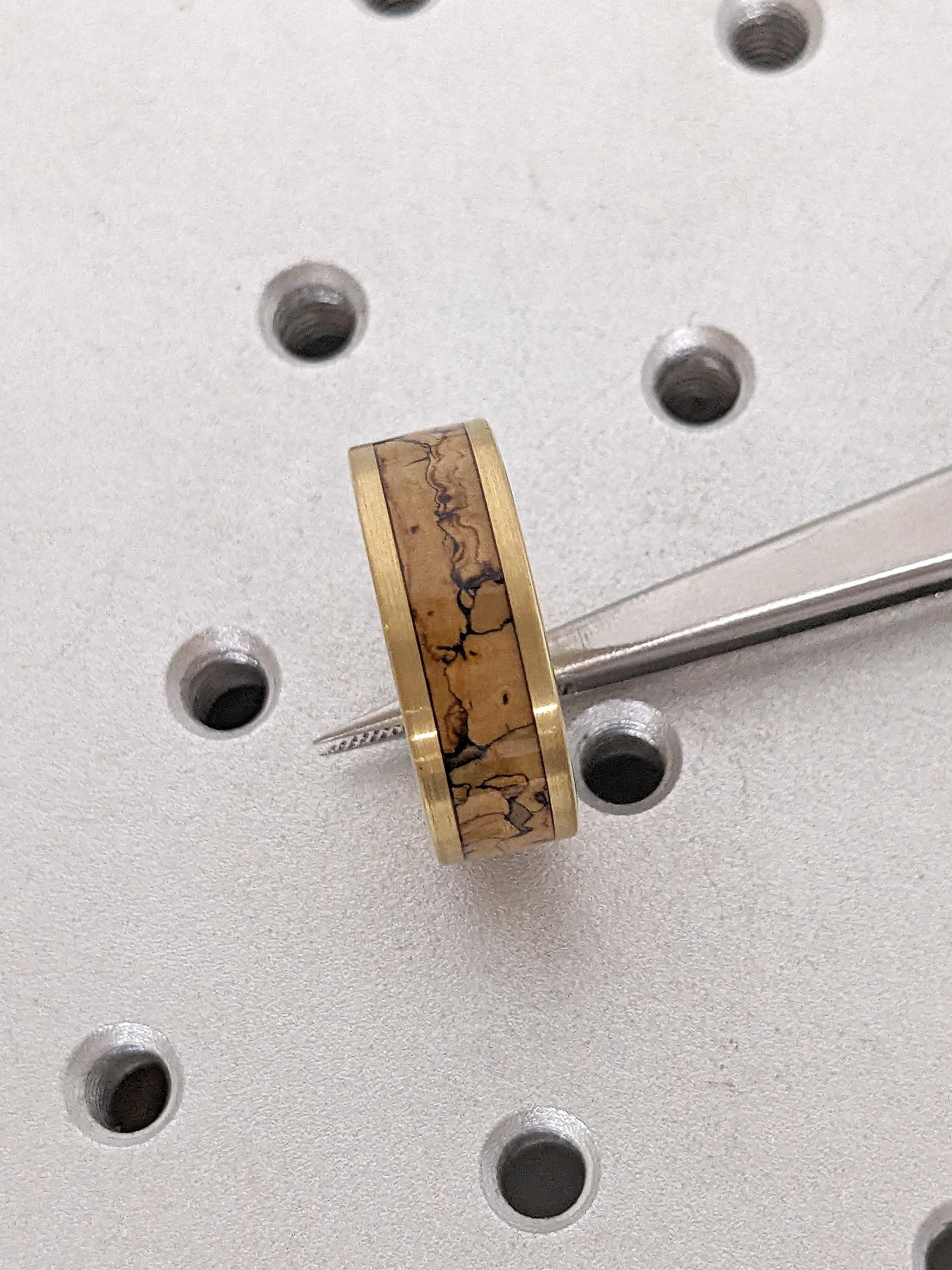 Bold and distinctive, this 8mm yellow gold plated tungsten ring stands out with its striking man-made dinosaur bone inlay pattern — a modern interpretation of prehistoric texture and timeless strength. The brushed matte finish adds a rustic, masculine edge, while the tungsten carbide construction ensures lasting durability and scratch resistance. Designed for comfort and individuality, this ring makes a powerful statement for the modern man who values both character and craftsmanship.