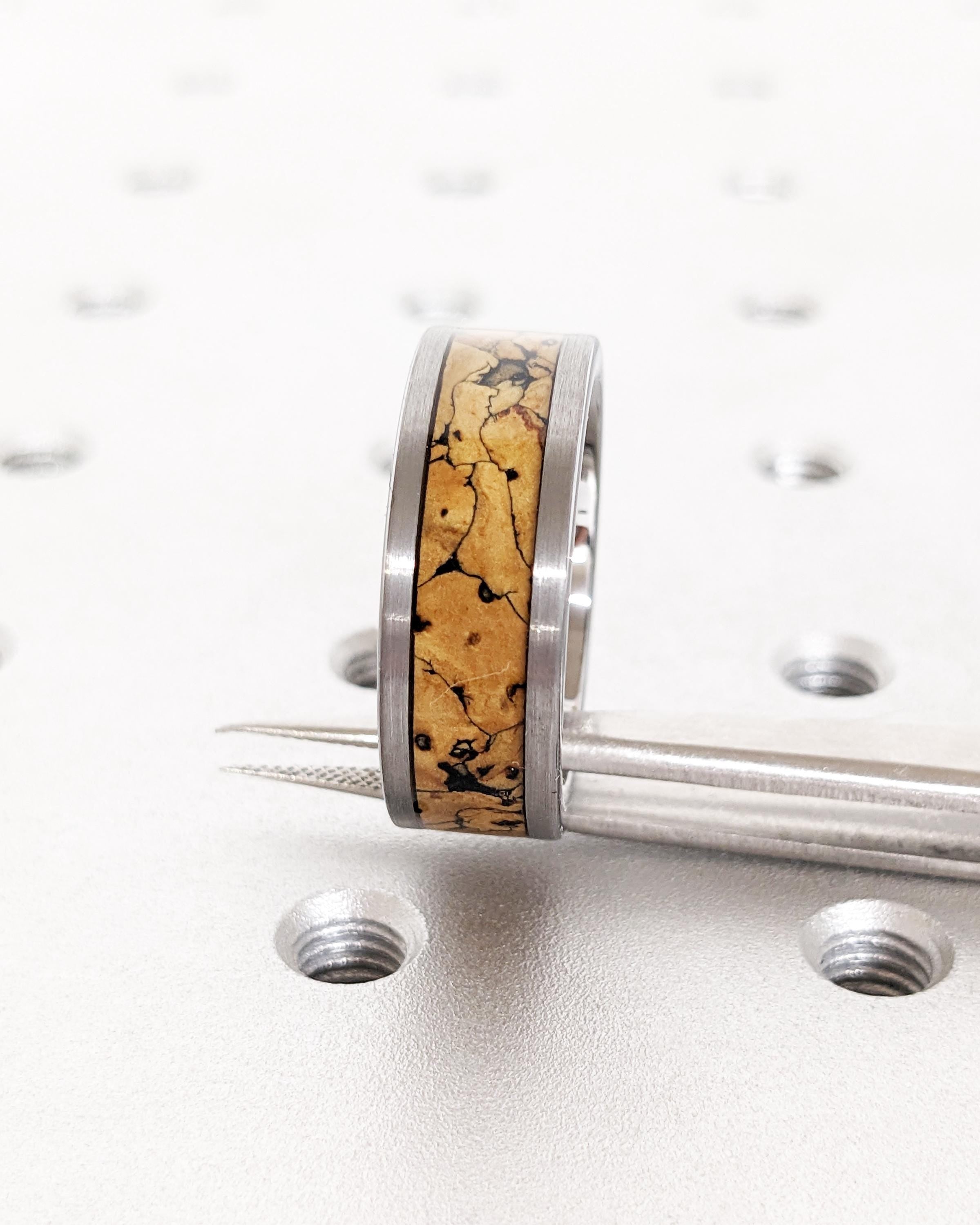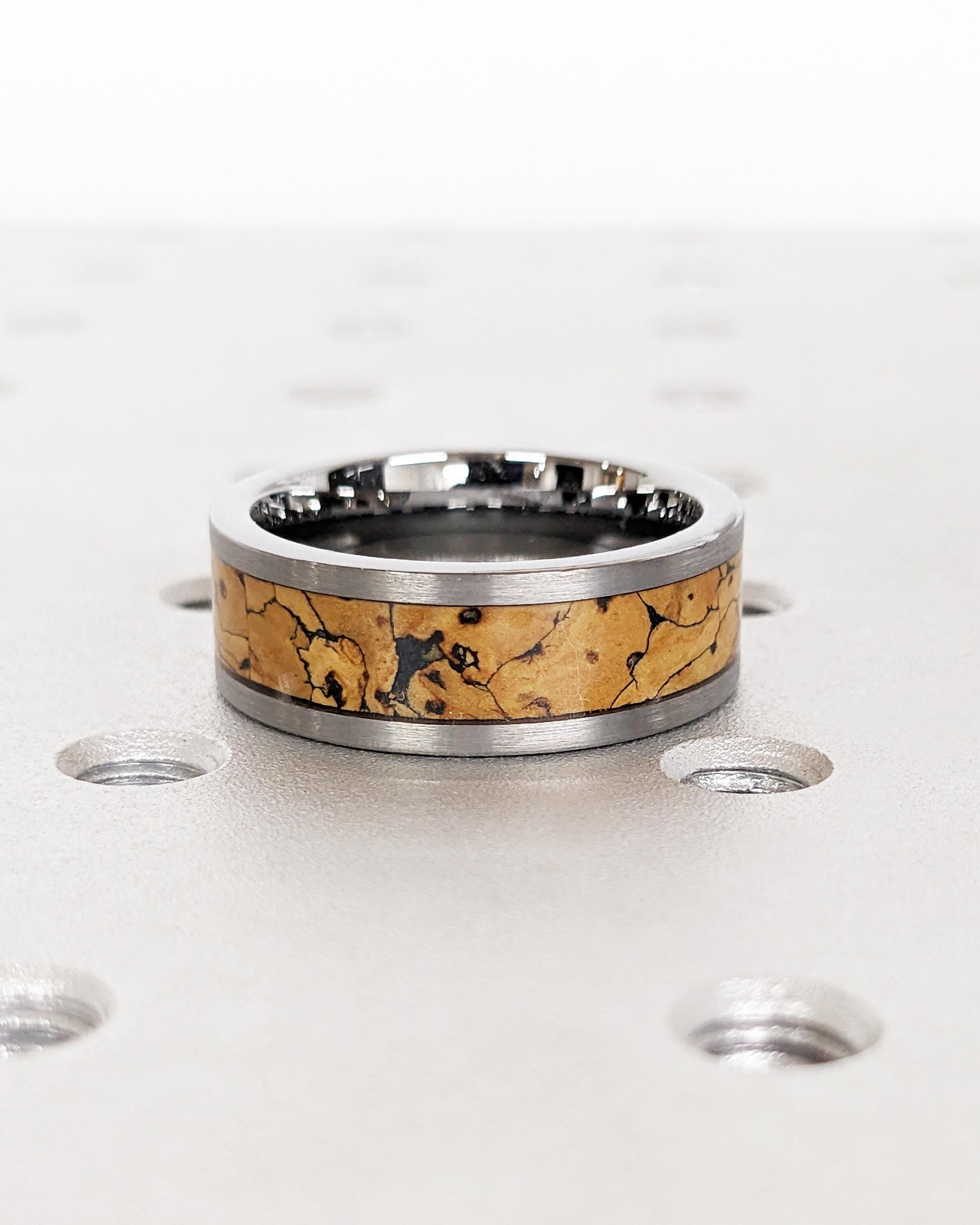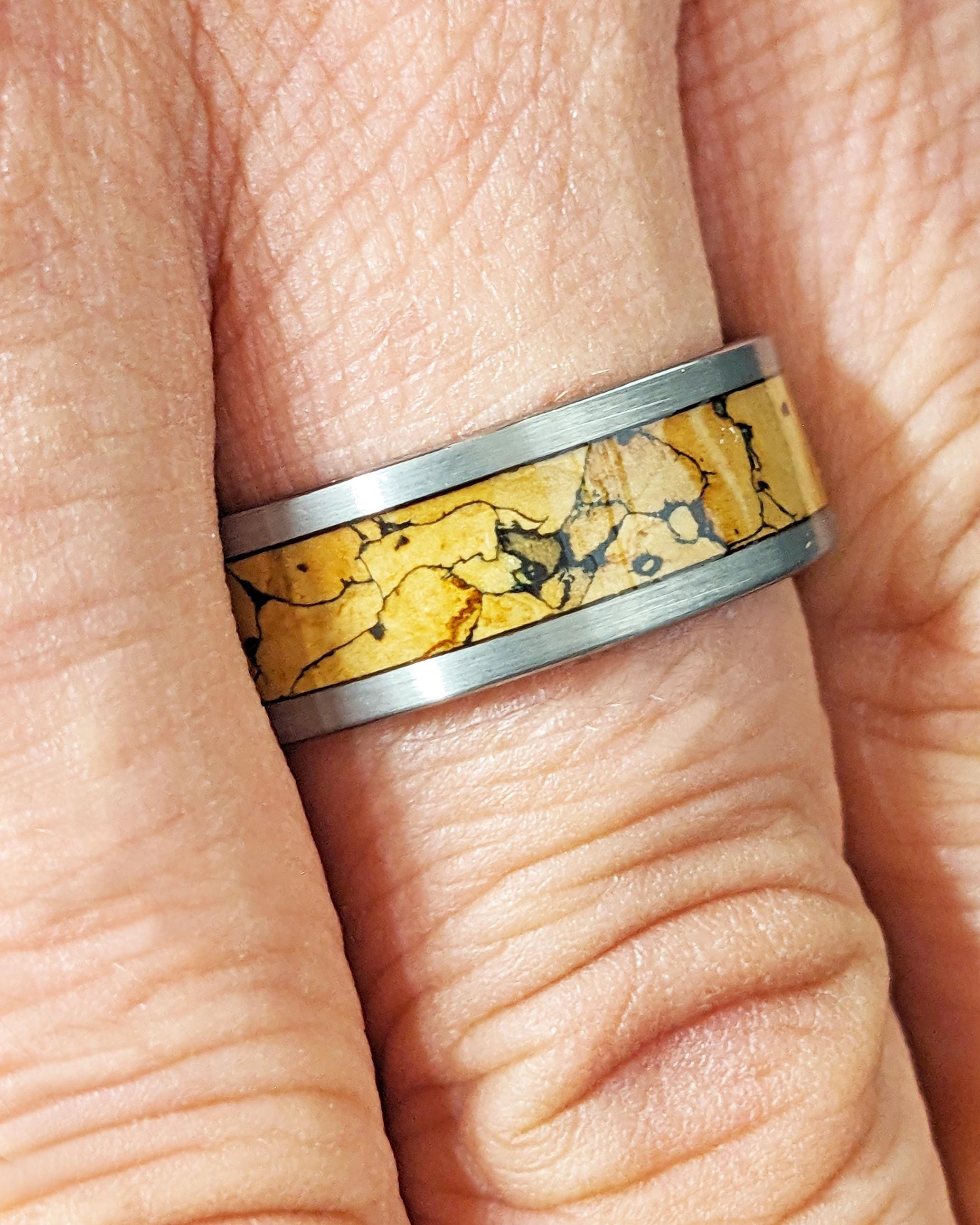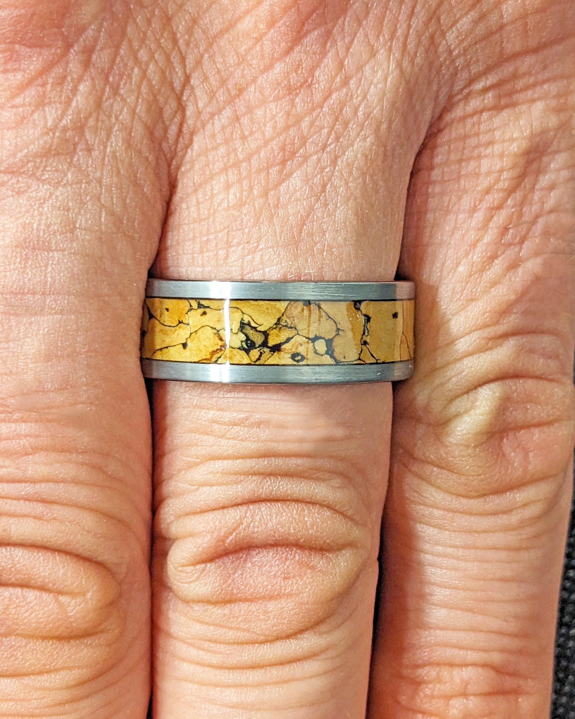 8MM Men's Tungsten Carbide Ring | Dinosaur Bone Ring | Brushed Tungsten Wedding Band | Dinosaur Bone Inlay | Comfort Fit Men's Wedding Band