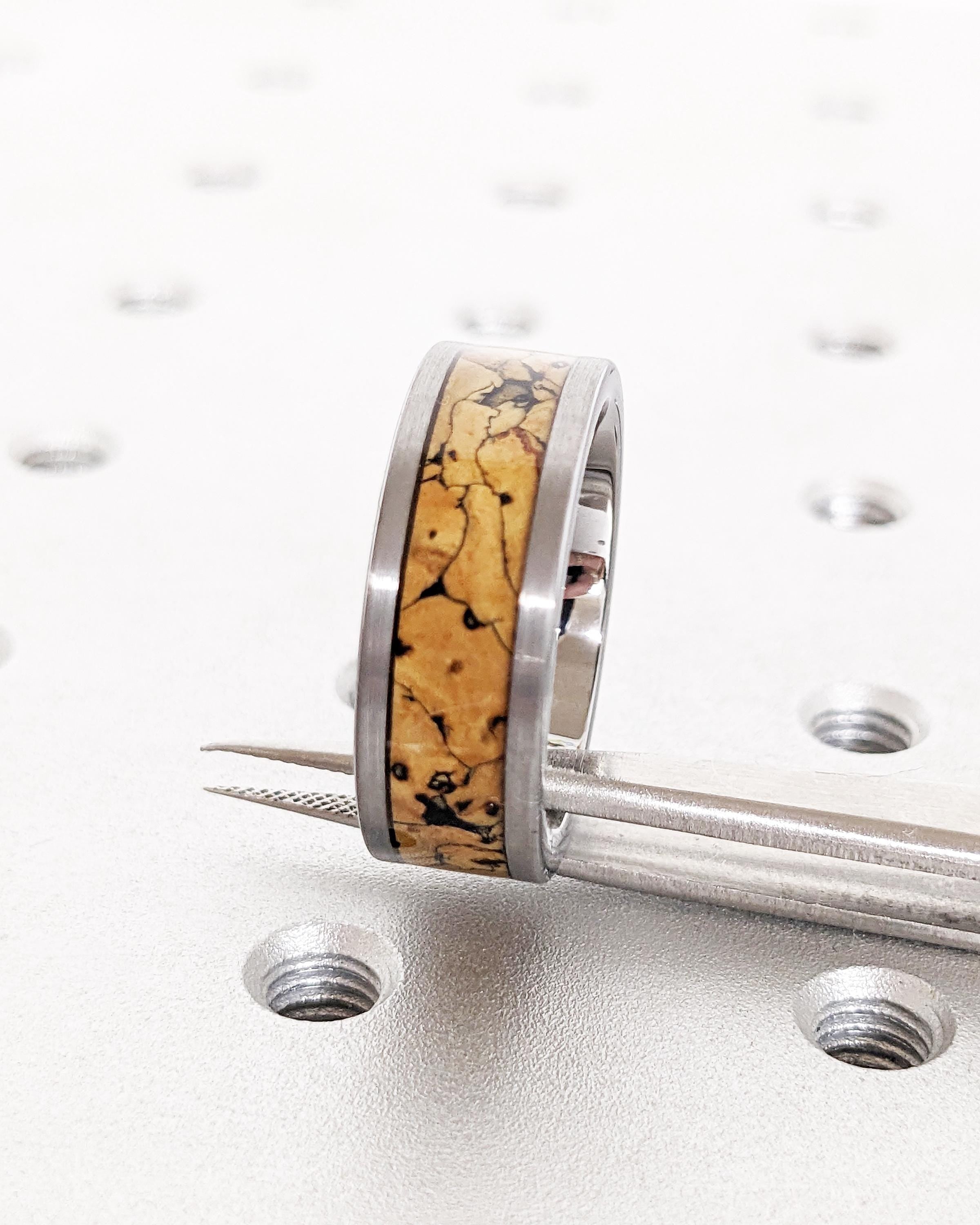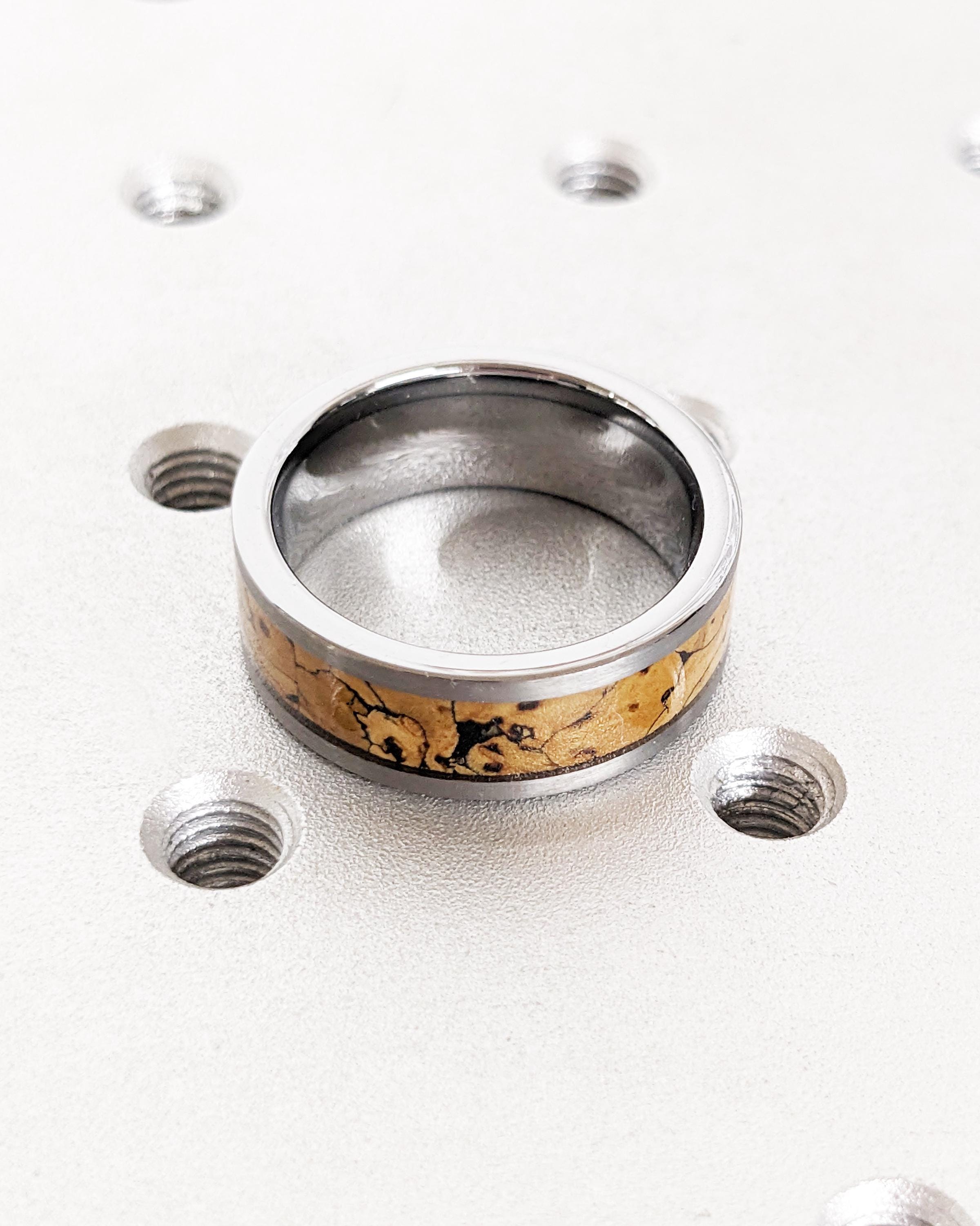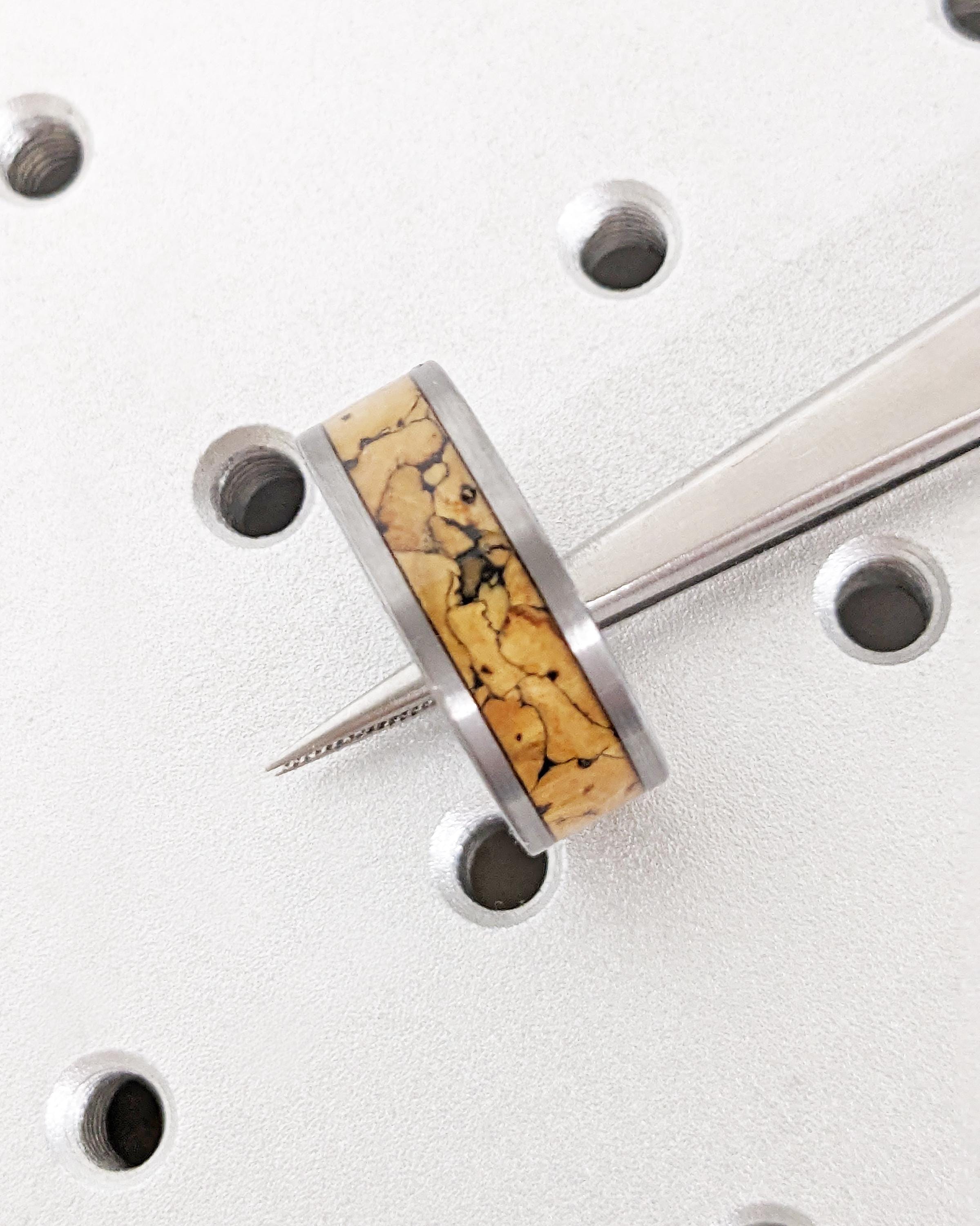 This distinctive tungsten ring combines modern design with prehistoric inspiration. The brushed silver surface contrasts beautifully with the intricate dinosaur fossil pattern inlay. Crafted for durability, it’s hypoallergenic, cobalt-free, and designed with a comfort fit interior. A perfect wedding band or gift for men who love adventure, history and craftsmanship.