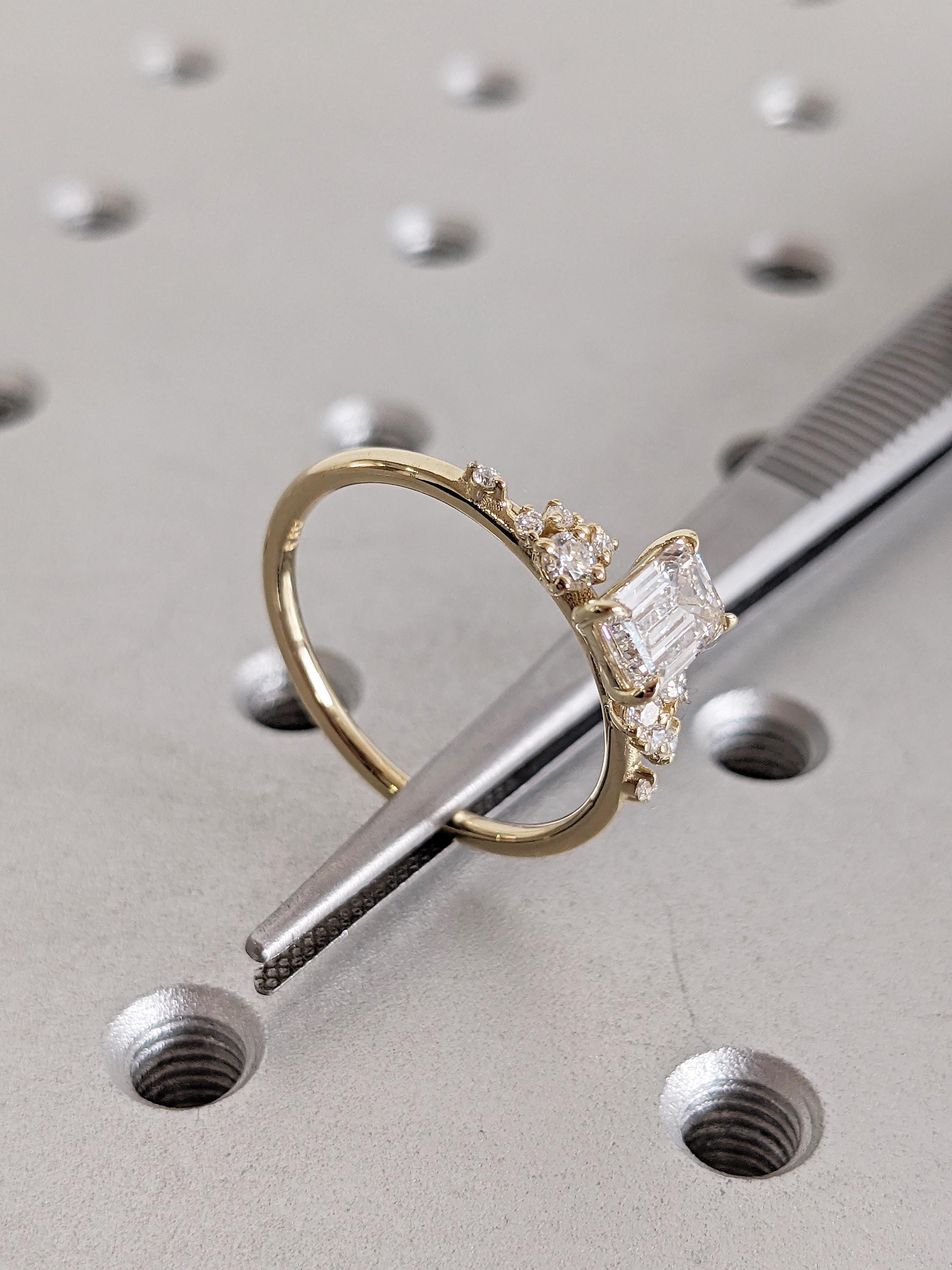 Art Deco Moissanite Ring, 14K Yellow Gold Wedding Rings for Women, Emerald Cut Promise Ring, Snowdrift Diamond Cluster Ring, Gift for Women
