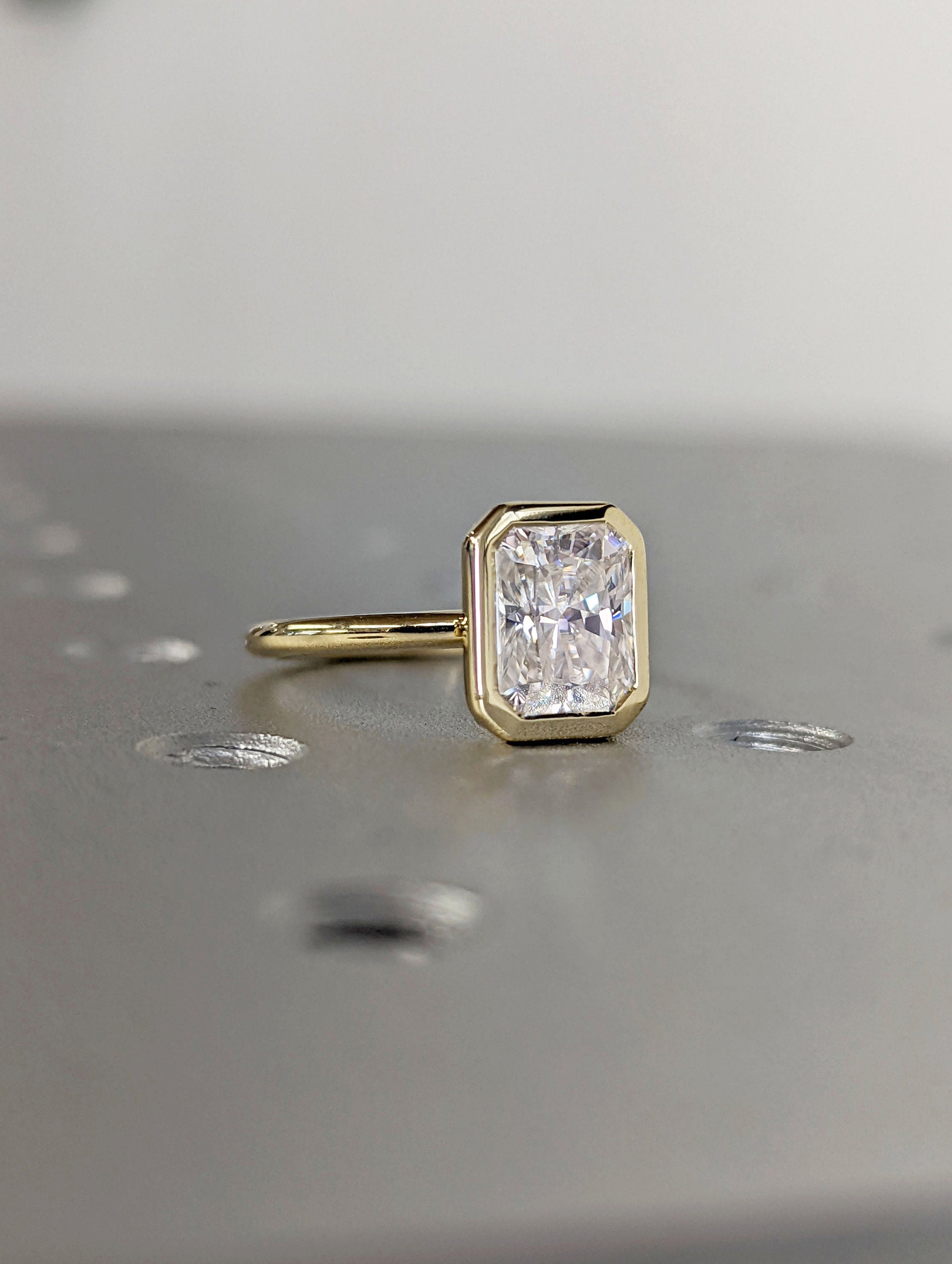 Bezel Radiant Cut Engagement Ring Yellow Gold ring Diamond Simulant ring Promise Ring Stacking ring Moissanite Solitaire Ring Gift for her