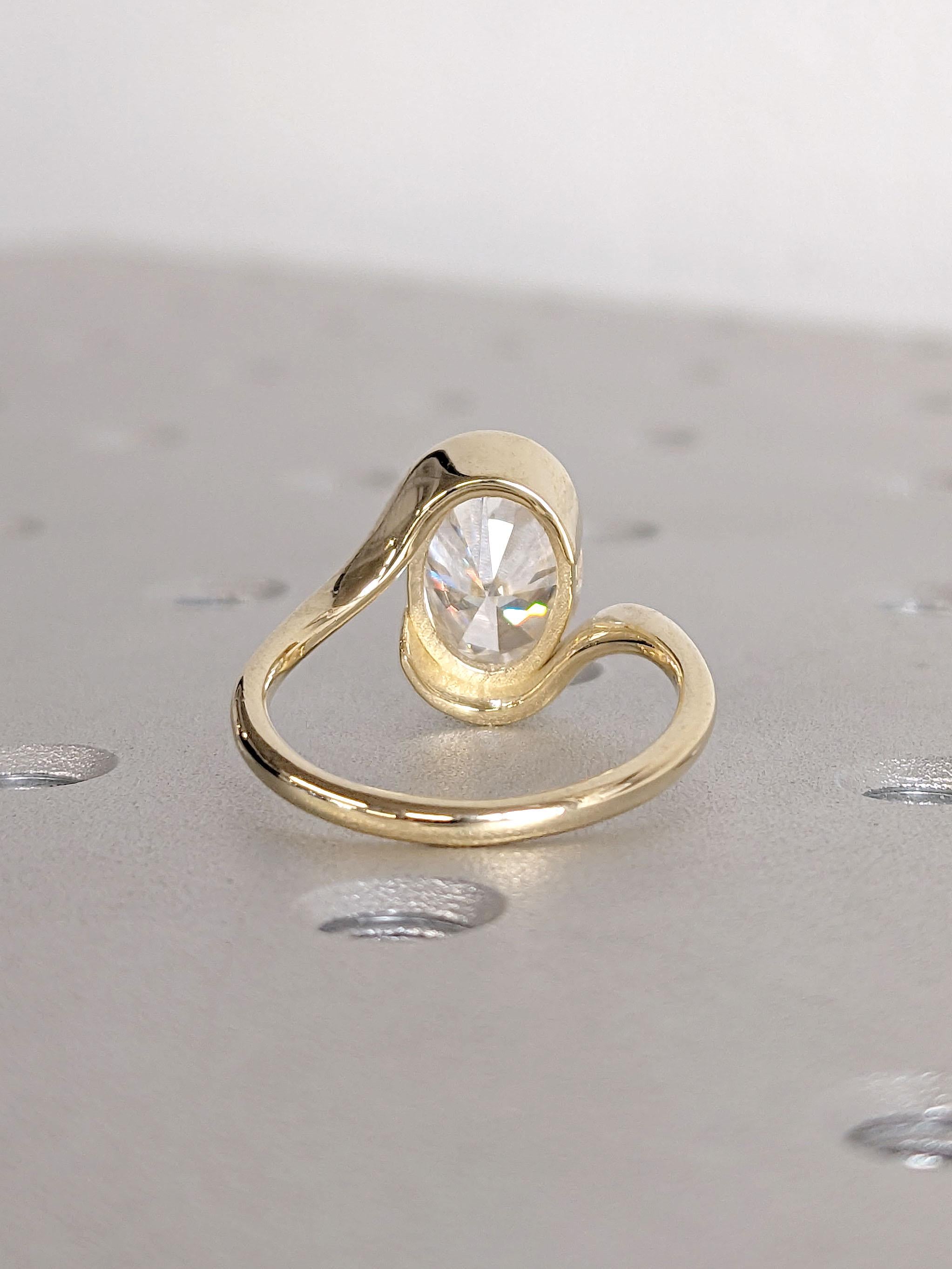 Bezel Set Bypass Engagement Ring, Dainty 14k Solid Gold Women Wedding Ring, Moissanite Ring, Oval Engagement Ring, Gold Promise Ring for Her