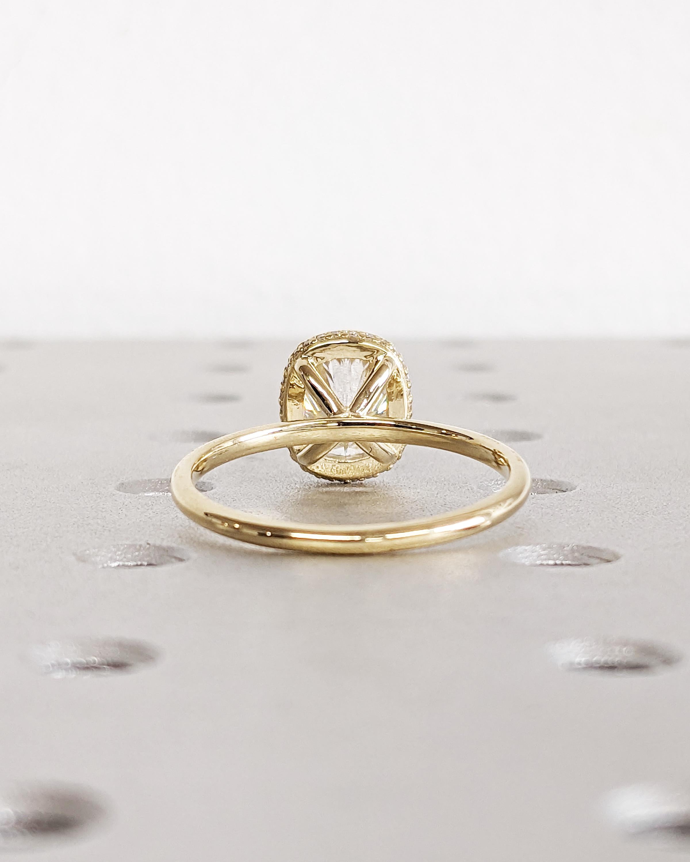 Bezel Set Cushion Lab Grown Diamond Wedding Anniversary Ring, 14K Yellow Gold Diamond Hidden Halo Statement Ring, Gold Promise Ring for Wife