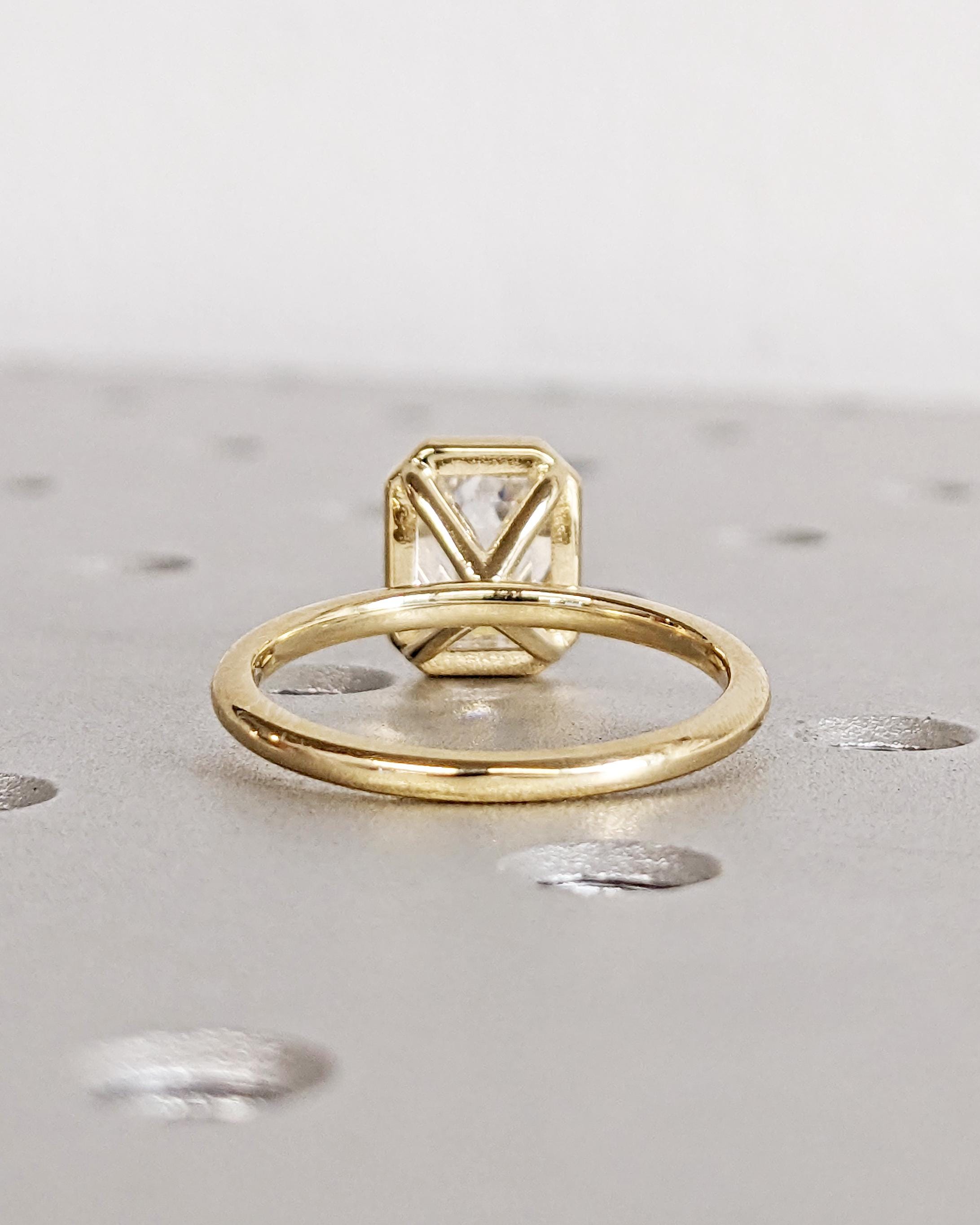 Bezel Set Emerald Cut Lab Grown Diamond Solitaire Ring | IGI Certified Lab Diamond 14K Yellow Gold Vintage Engagement Ring | Statement Ring