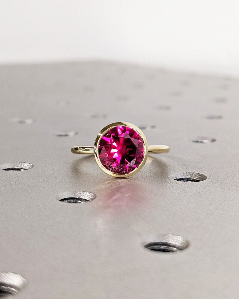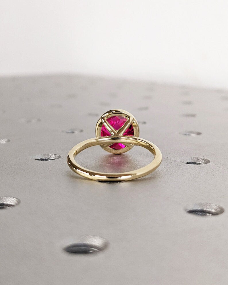 Bezel Set Ruby Ring 14K Solid Yellow Gold Gemstone Engagement Ring For Women -Dainty Promise Ring July Birthstone Anniversary Gift For Her