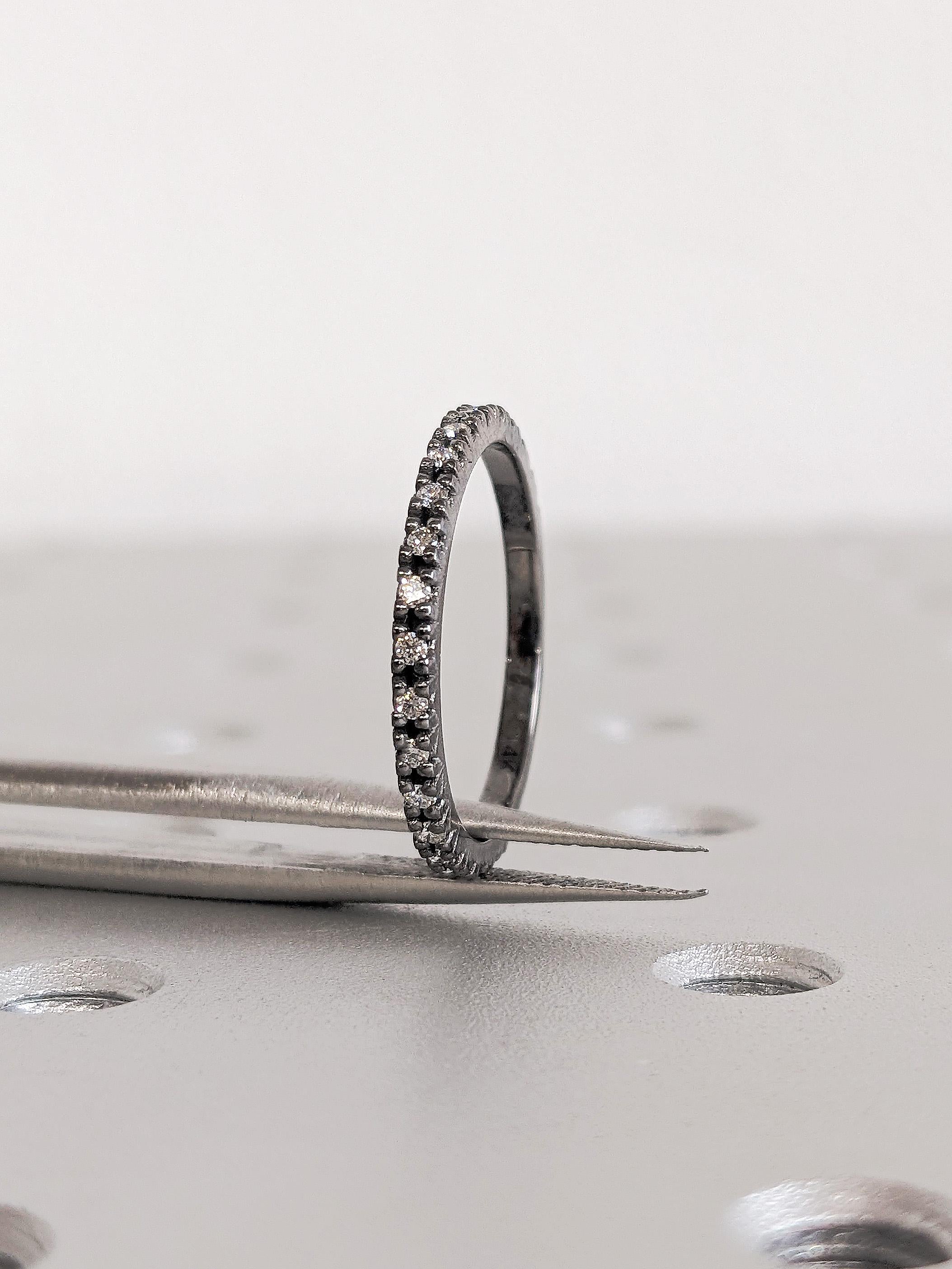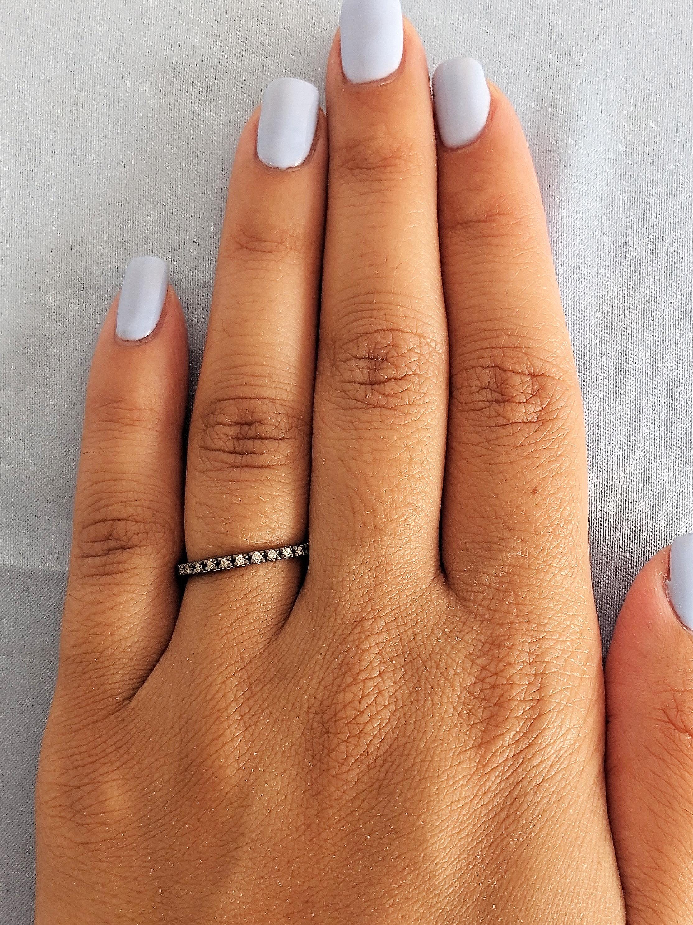 Black Gold Round Diamond Matching Ring, Thin Dainty Pavé Diamond Engagement Ring, 14K Gold Custom Stacking Wedding Band, Gothic Aesthetic