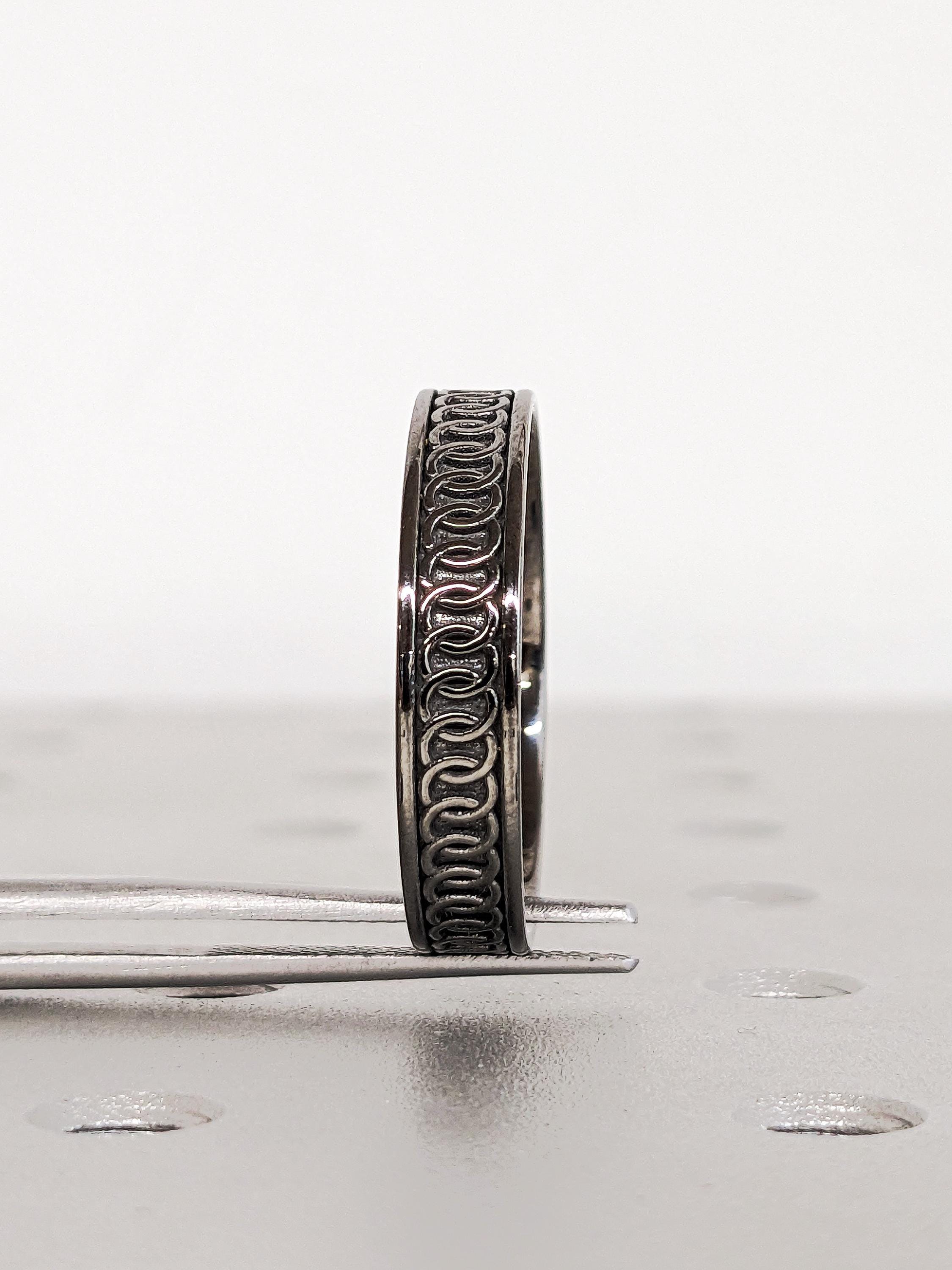 Black Gold Wedding Band, Chain Pattern Men’s Engagement Ring, 14K Solid Polished Band, Endless Love 5mm, Custom Anniversary Band For Him