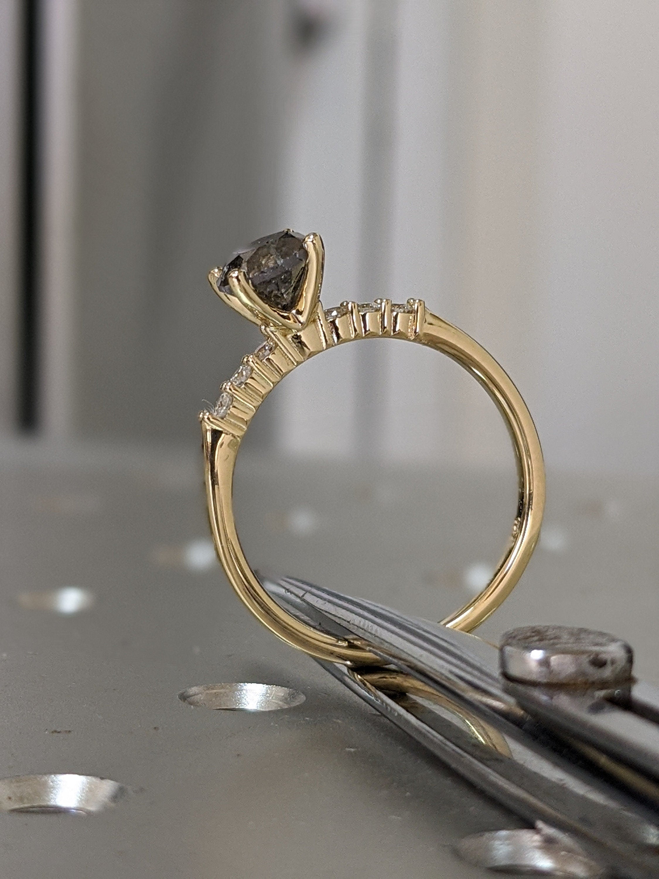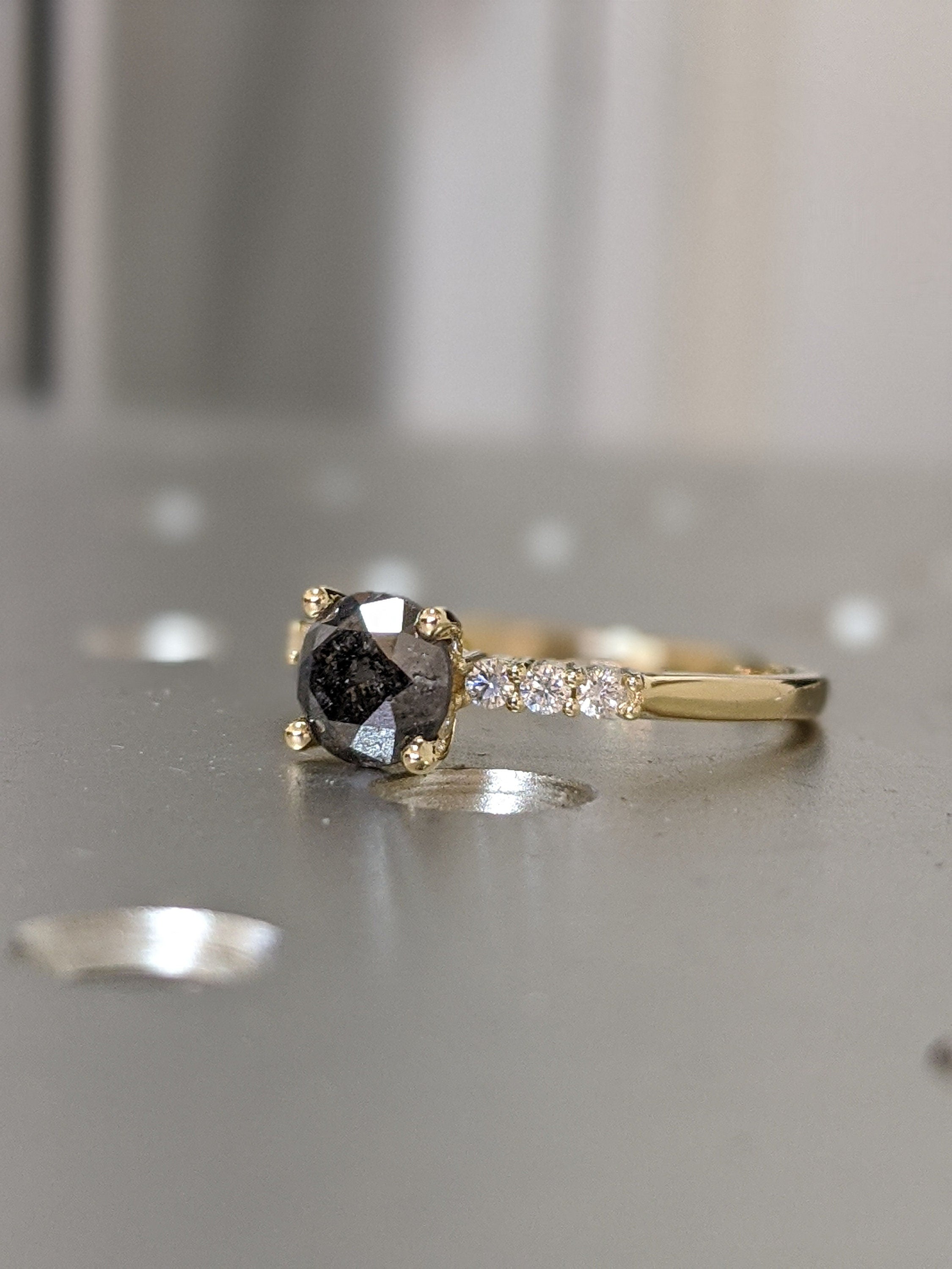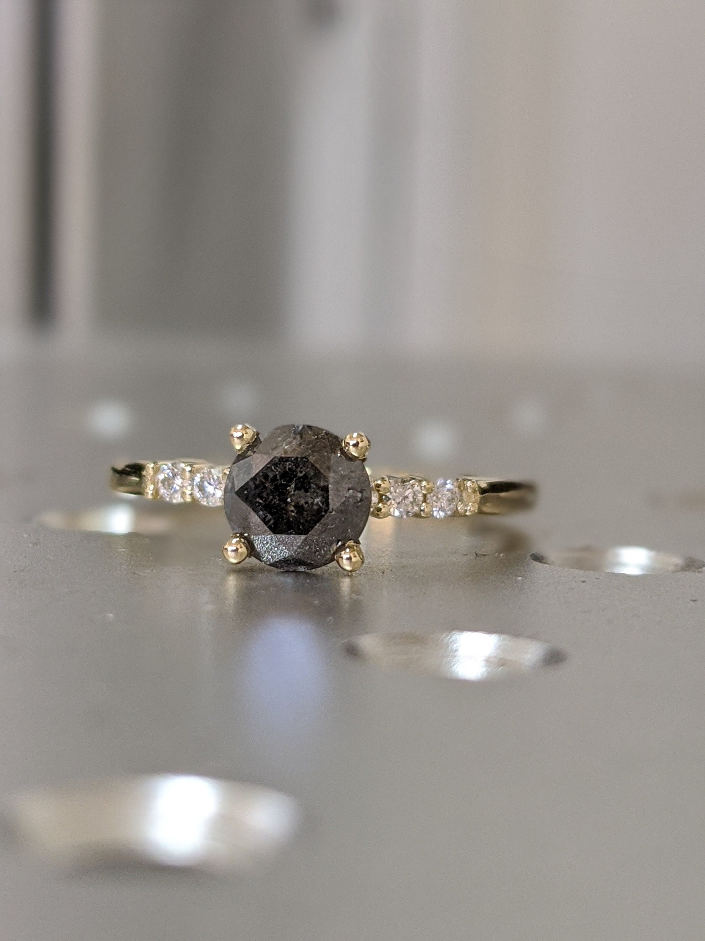Salt And Pepper Diamond Ring, Rose Cut Salt And Pepper Diamond Engagement Ring, Grey Diamond Ring, Salt And Pepper Ring