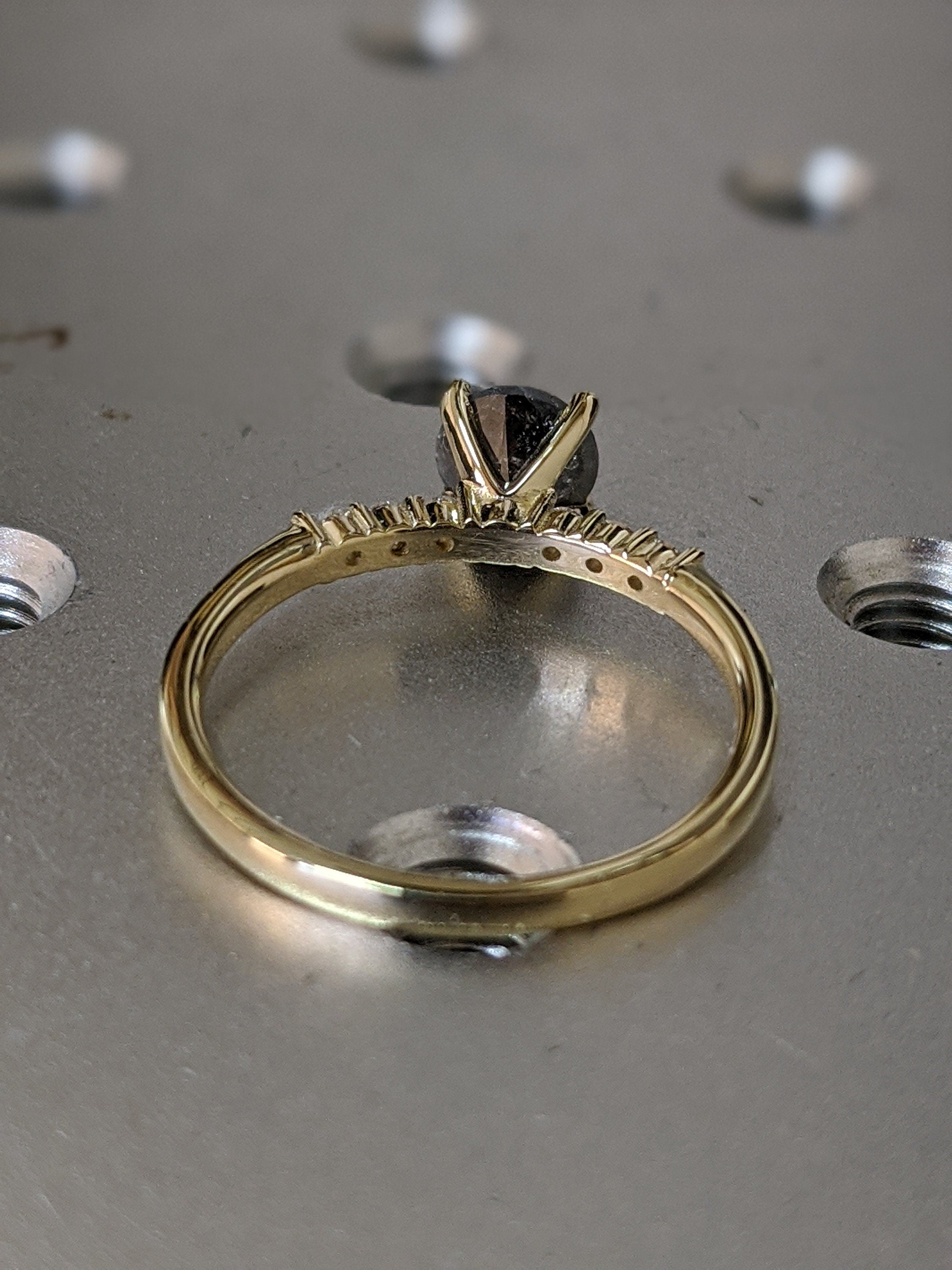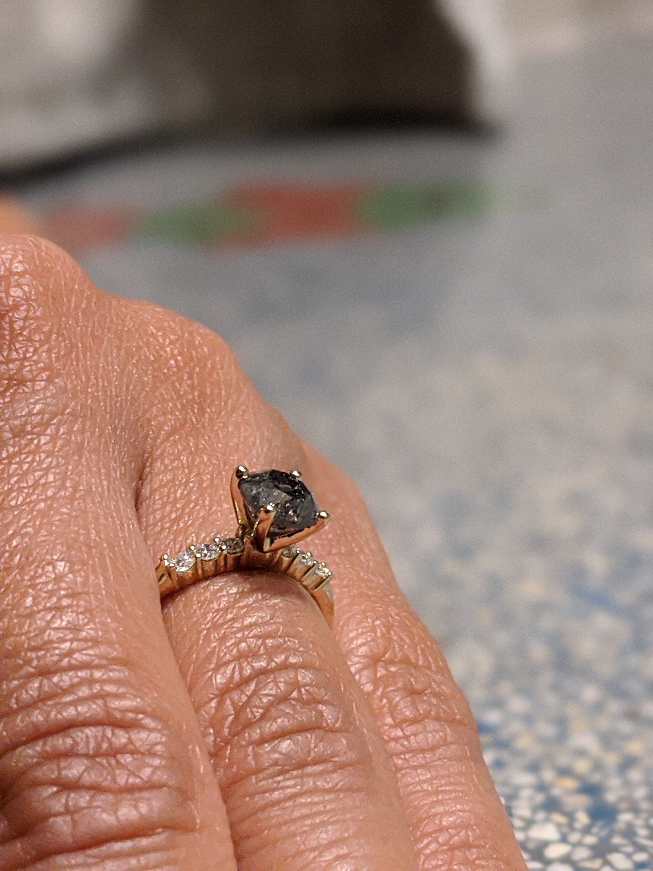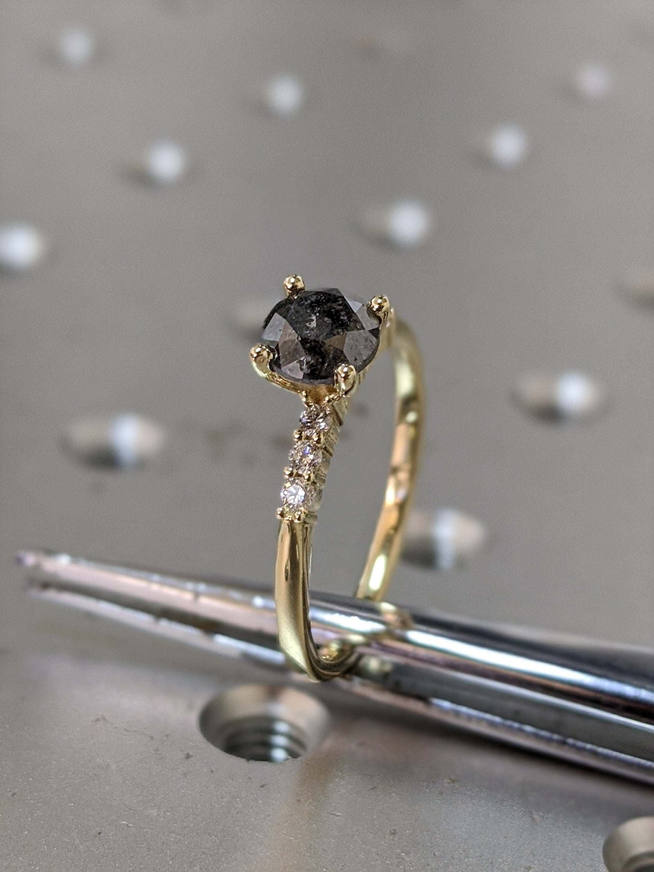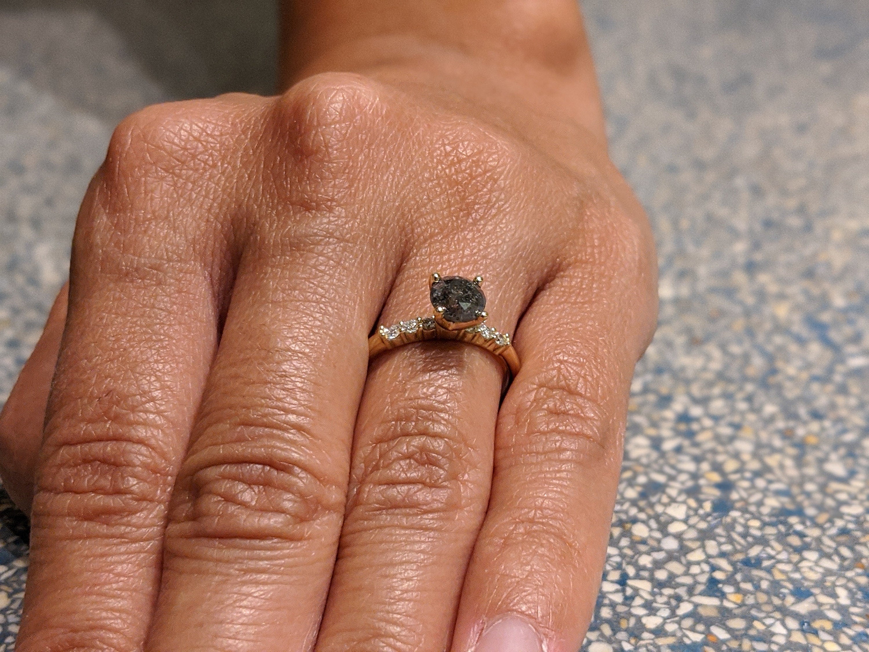 Salt And Pepper Diamond Ring, Rose Cut Salt And Pepper Diamond Engagement Ring, Grey Diamond Ring, Salt And Pepper Ring