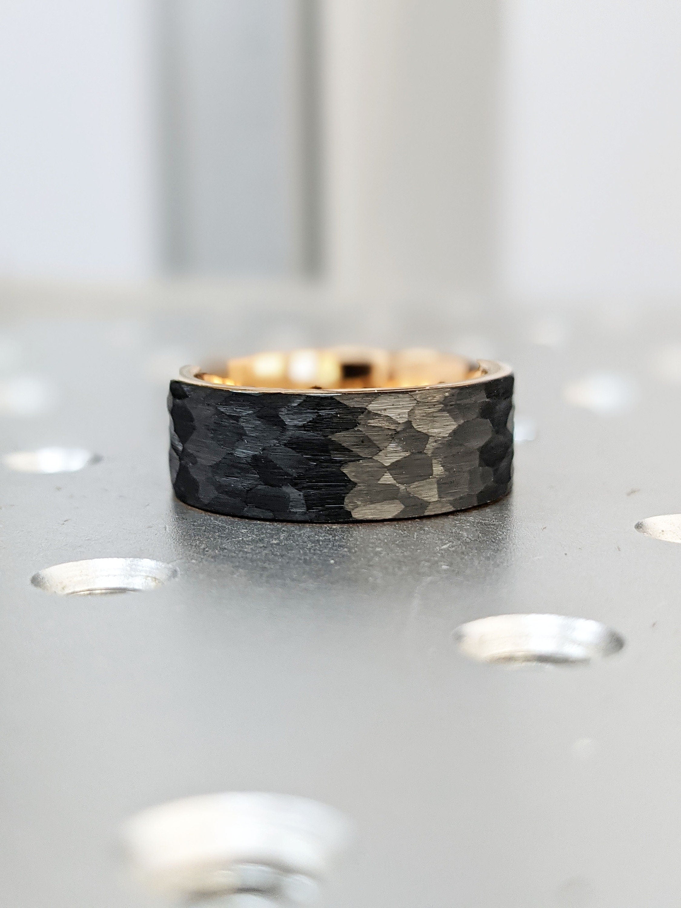 Black Tungsten Rose Gold 8MM Men's Wedding Ring | Handmade Rough Faceted Black Rhodium Men Wedding Band | Comfort Fit Tungsten Ring for Him