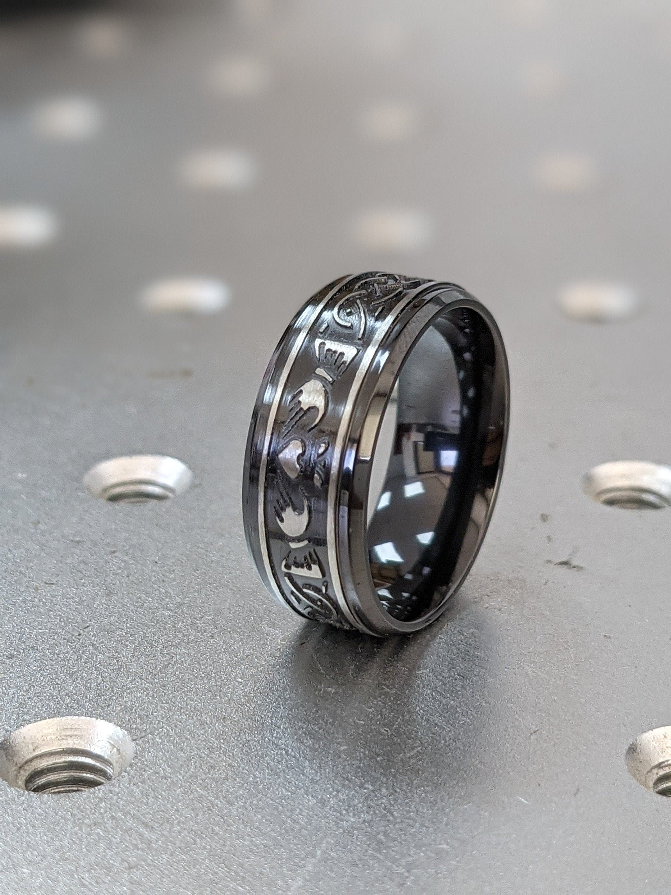 Unfortunately, I didn't get to see the ring before it shipped and the engraving I had done was upside-down when this ring is worn facing the wearer (which it would be in my case). Since engraved zirconium rings are final sale, I'll have to play for a new ring to fix this, which isn't ideal. If you're getting an engraving on a ring meant worn with a particular orientation, be sure to specify which way you want it done.