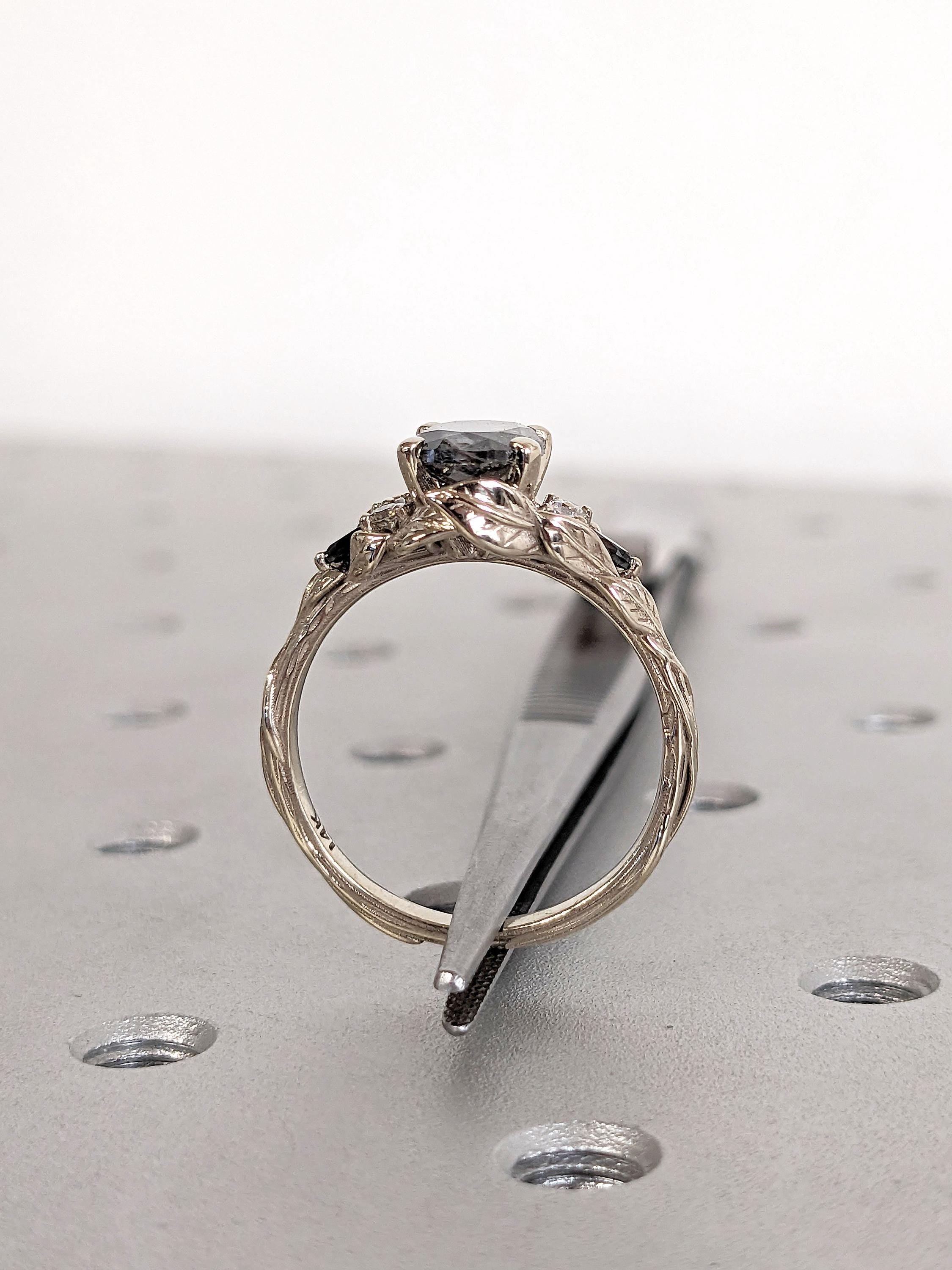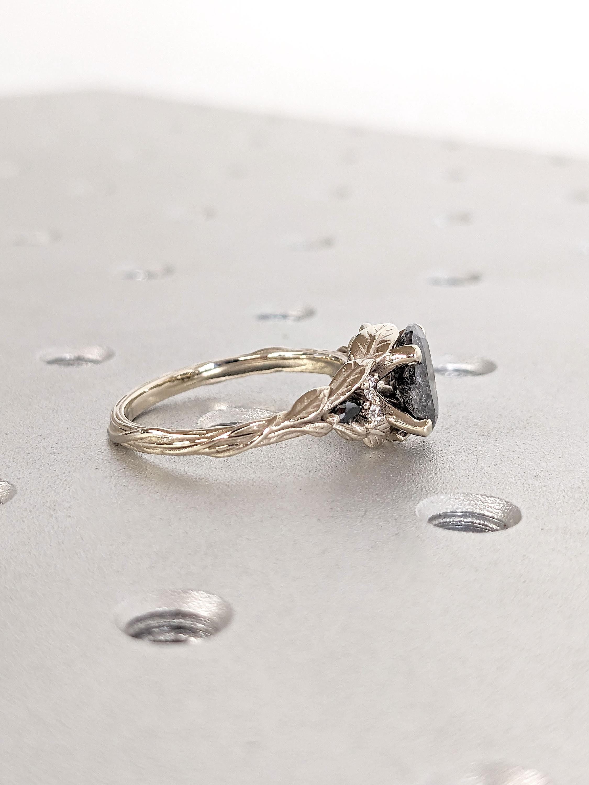 Branch and Leaf Diamond Engagement Ring | Twig Promise Rings for Women | Black Promise Ring | Black Diamond | Vintage Black Engagement Ring