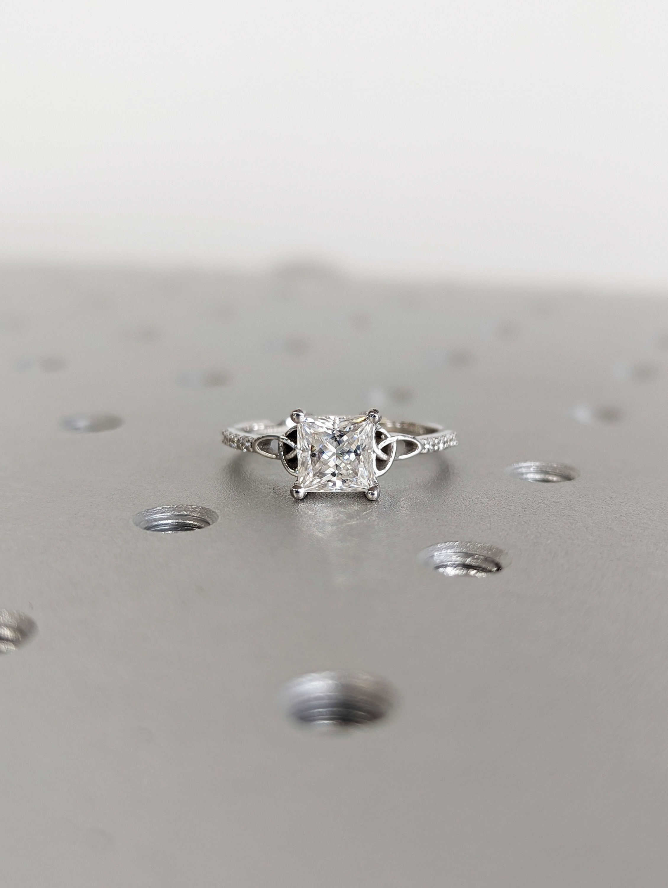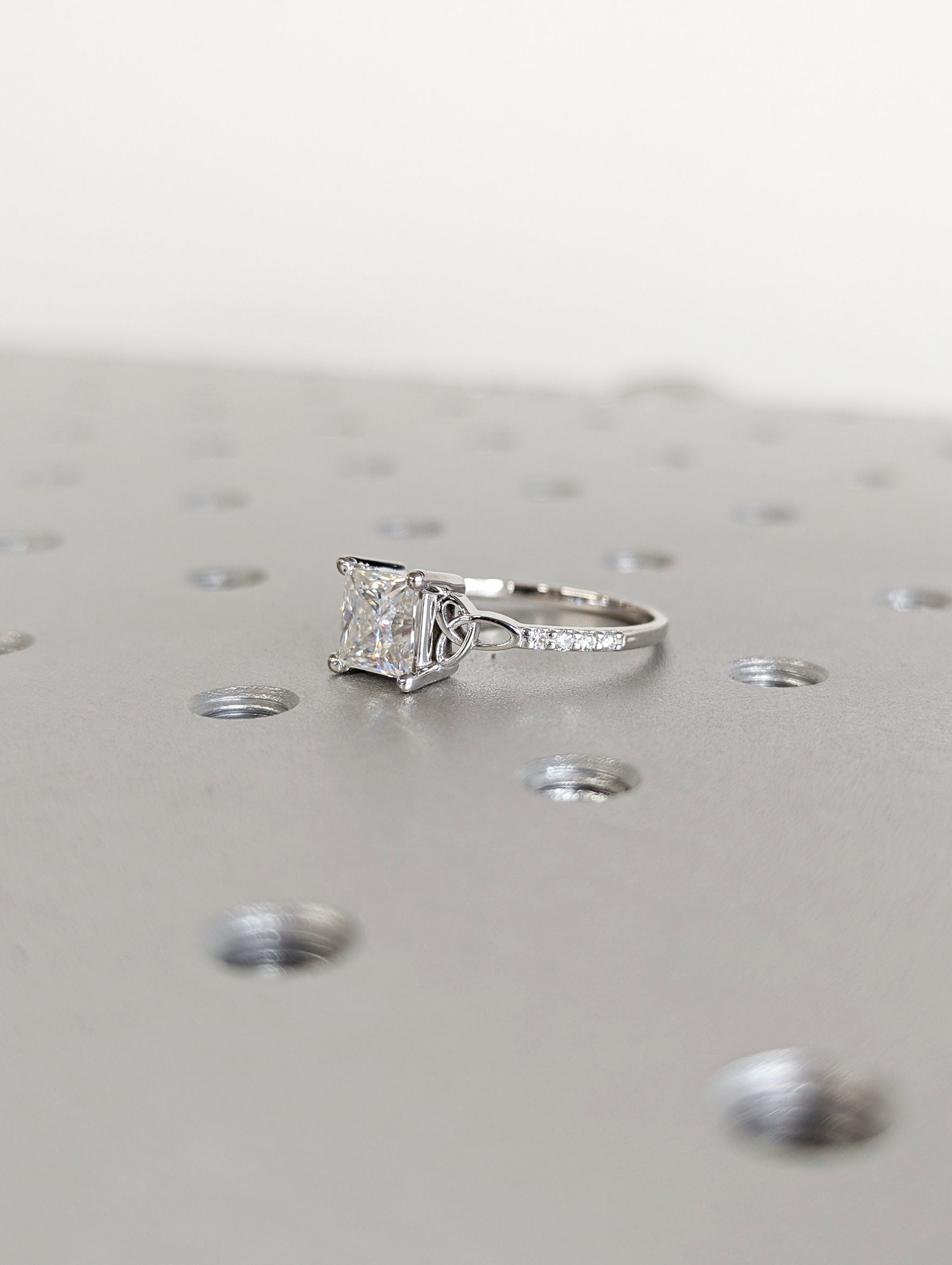 Celtic Cathedral Ring Gold Moissanite Diamond Celtic Engagement Ring Trinity Knot Ring Irish Ring Triquetra Ring Moissanite Ring