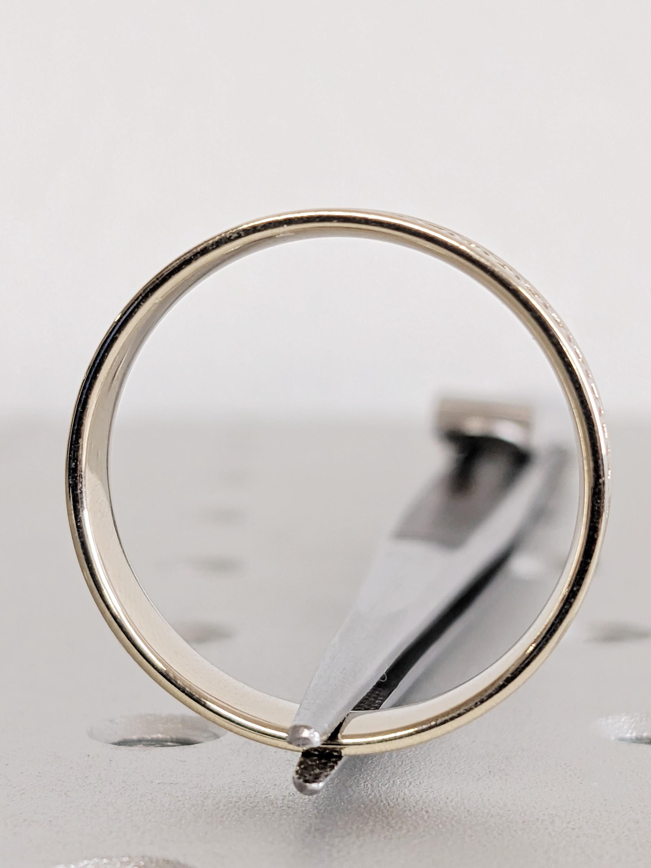 A bold yet refined piece that symbolizes strength and connection. This wedding band features a chain inspired pattern along the center, creating a timeless design that represents an unbreakable bond. Polished to a smooth finish, it’s a meaningful choice for men who appreciate both style and sentiment.