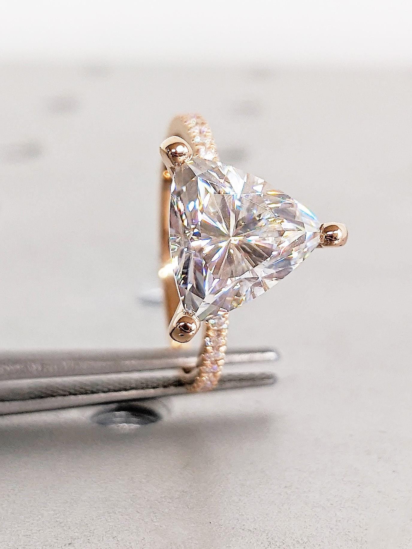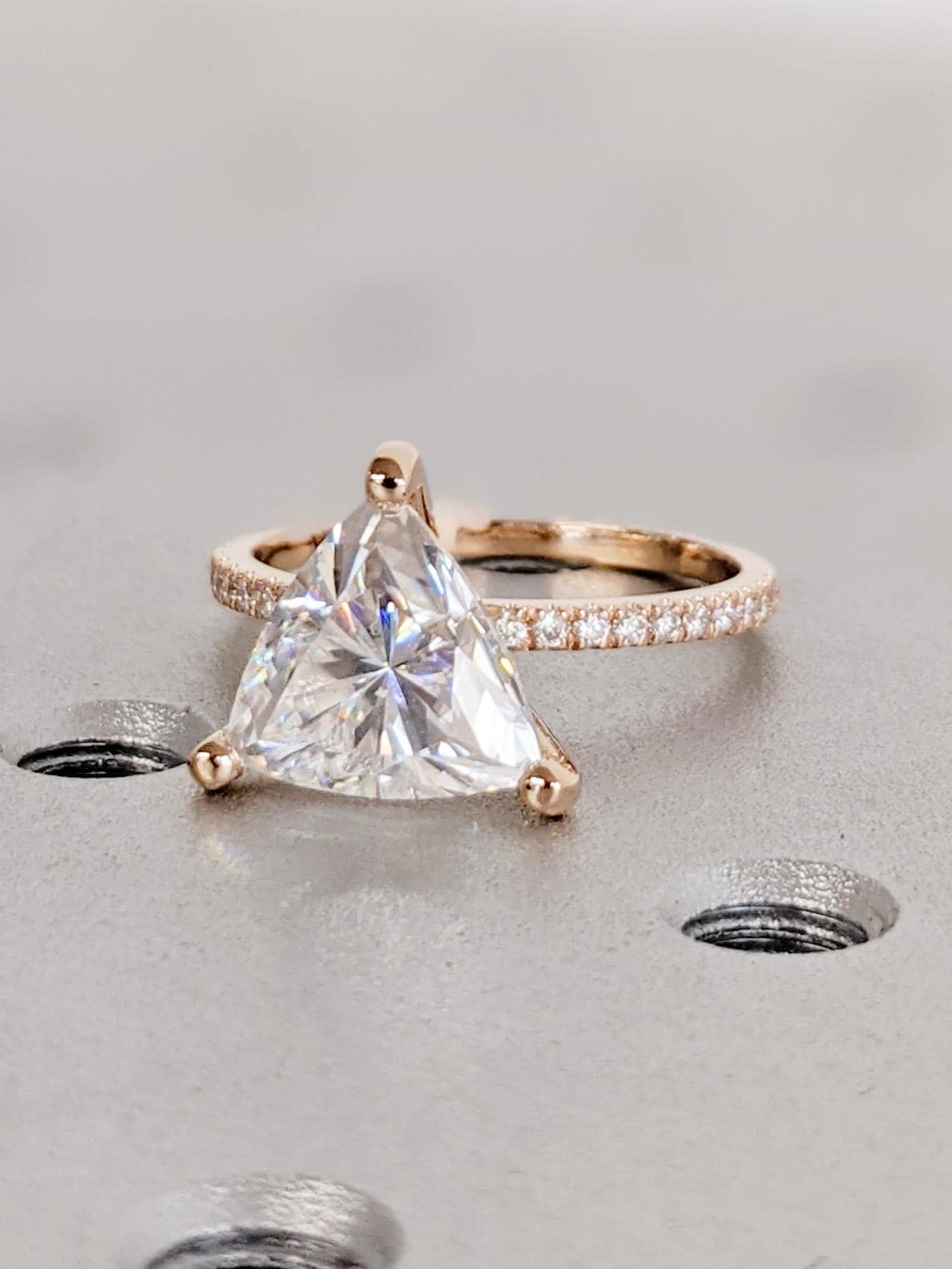 Classic 18K Trillion Cut Rose Gold Moissanite Engagement Ring, Rose Gold Moissanite Diamond Ring, 3 Prong, Dainty Promise Ring, Wedding Ring