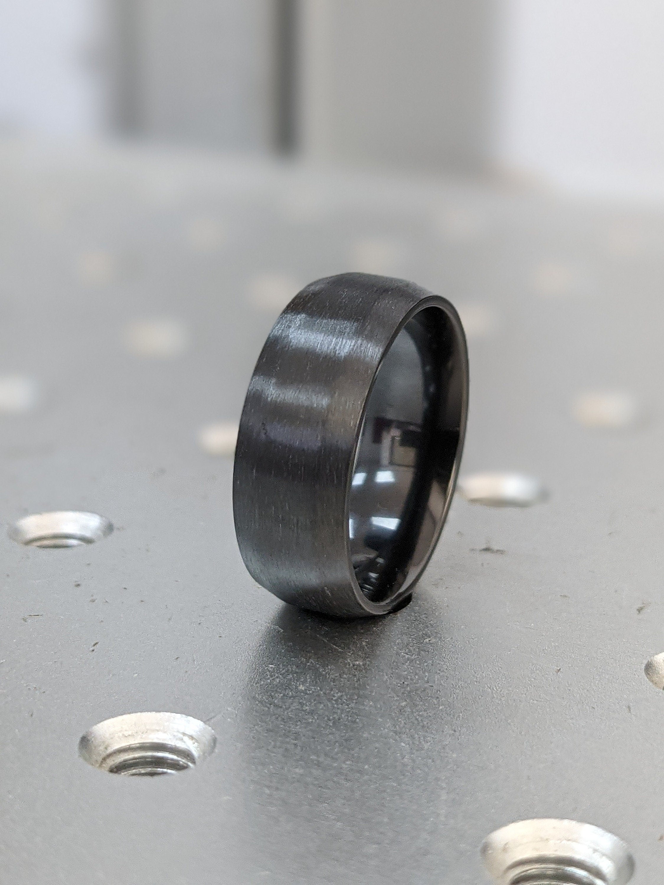 This hand made ring is crafted of the finest quality black zirconium. One of our unique custom handmade Black Zirconium ring, this piece is made with the greatest of care, the black color of the piece with its brushed finish are forever beautiful, a ring suiting as a men's wedding band as well, Brushed with Beveled Edges.
