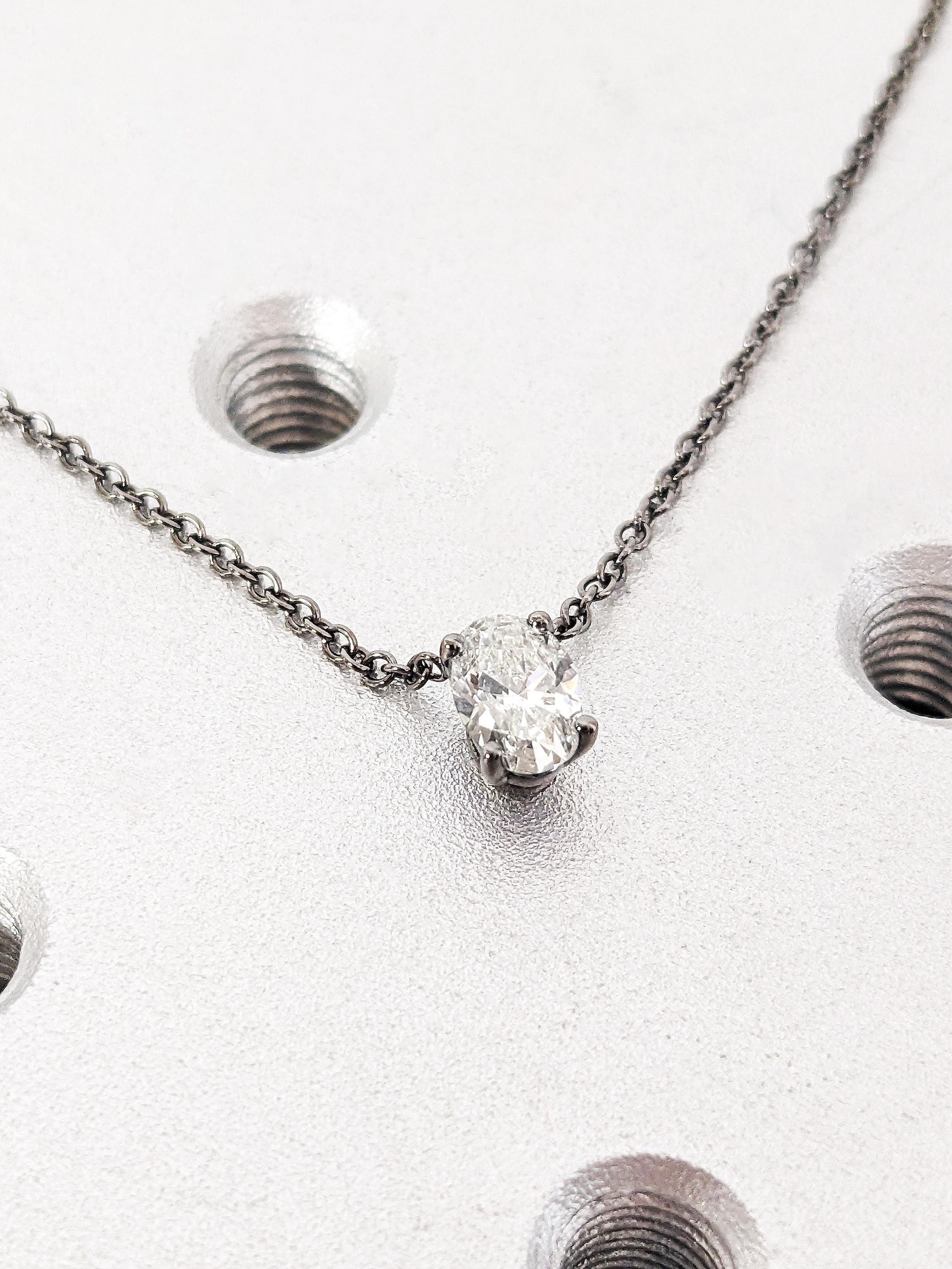 Classic Oval Cut Moissanite Pendant, 14K Solid Black Gold Moissanite Pendant, Everyday Women’s Gold Necklace, Dainty Solitaire Necklace Gift