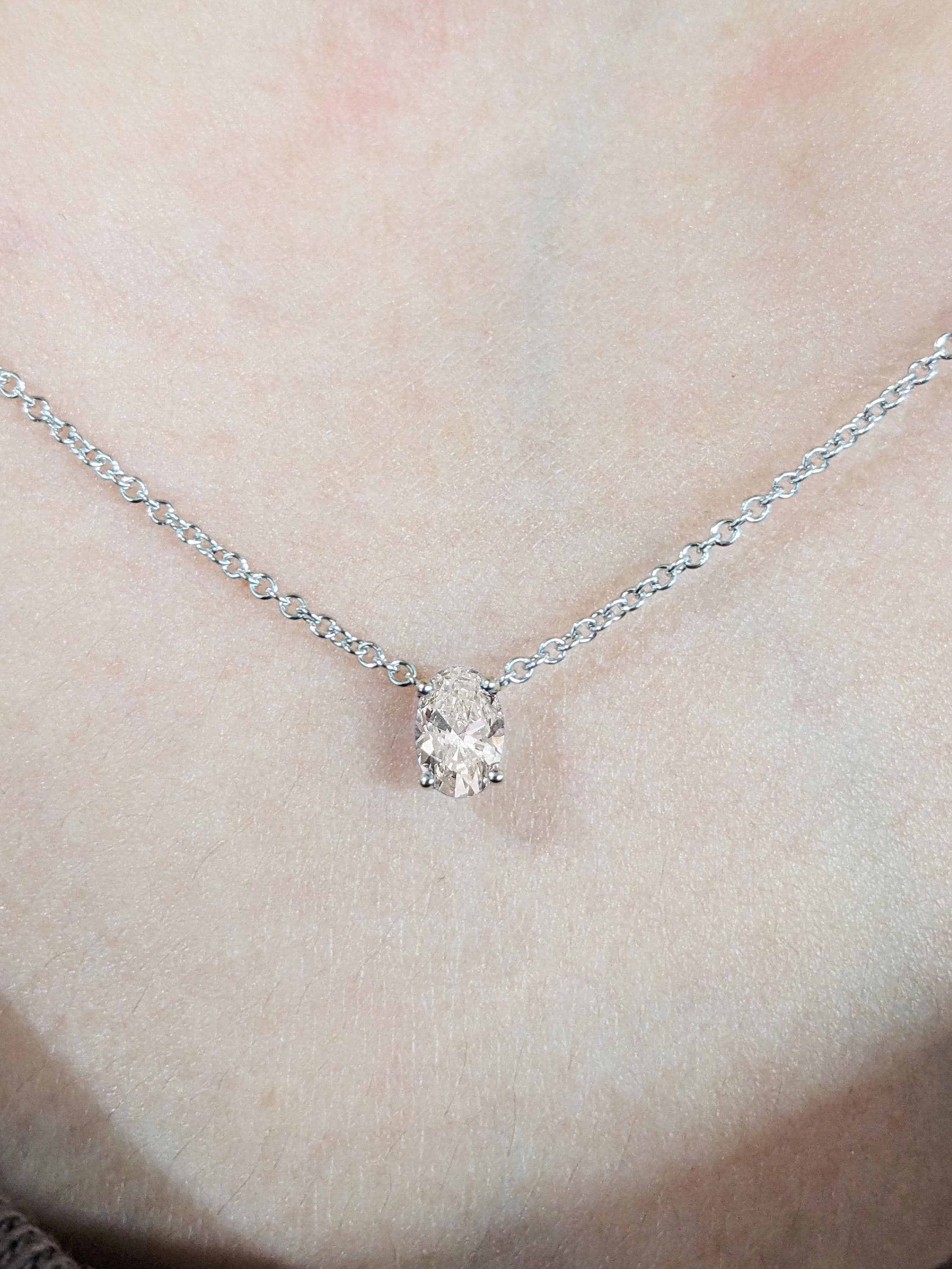 Classic Oval Cut Moissanite Pendant, 14K Solid White Gold Moissanite Pendant, Everyday Women’s Gold Necklace, Dainty Solitaire Necklace Gift