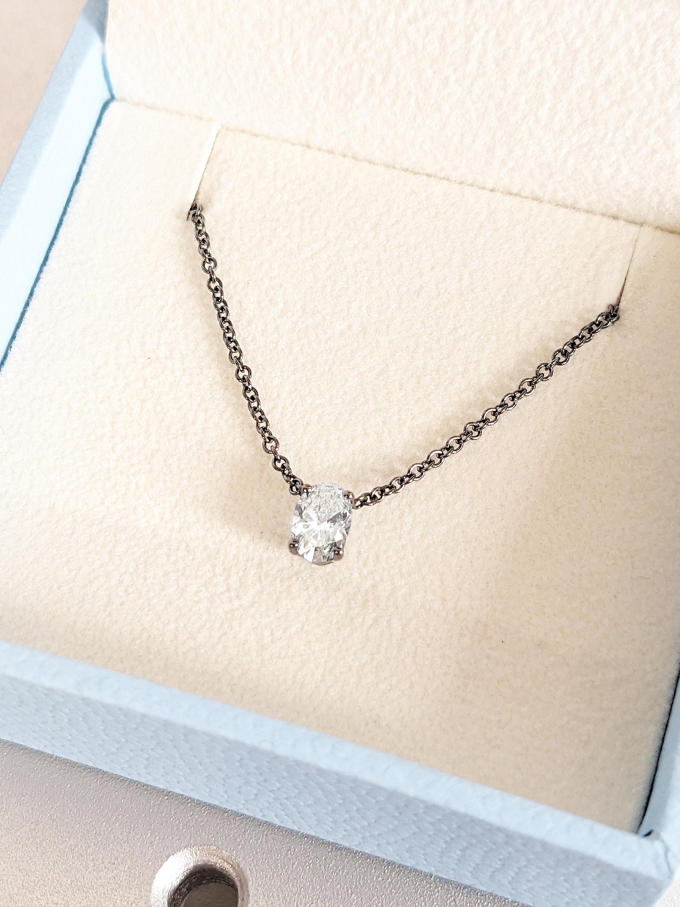 Classic Oval Cut Moissanite Solitaire Bridal Engagement Necklace, Custom 14K Solid Black Gold Women’s Pendant