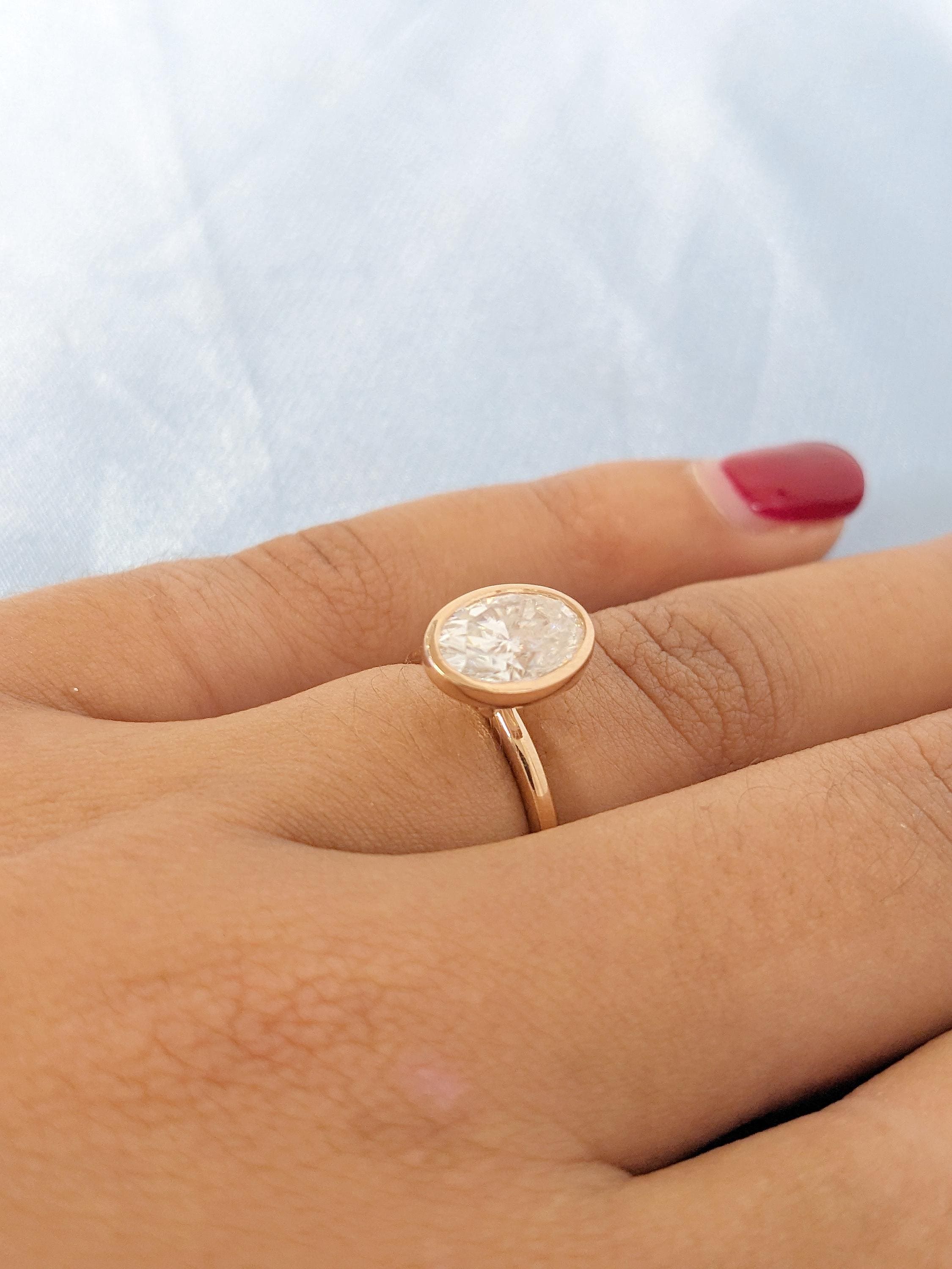 This Lab Grown Diamond engagement ring features an oval Lab Grown Diamond in a sleek bezel setting, offering a refined and elegant look. Its clean and modern style enhances the brilliance of the stone, making it a timeless choice for engagements, weddings, anniversaries, or as a sophisticated gift symbolizing everlasting love.