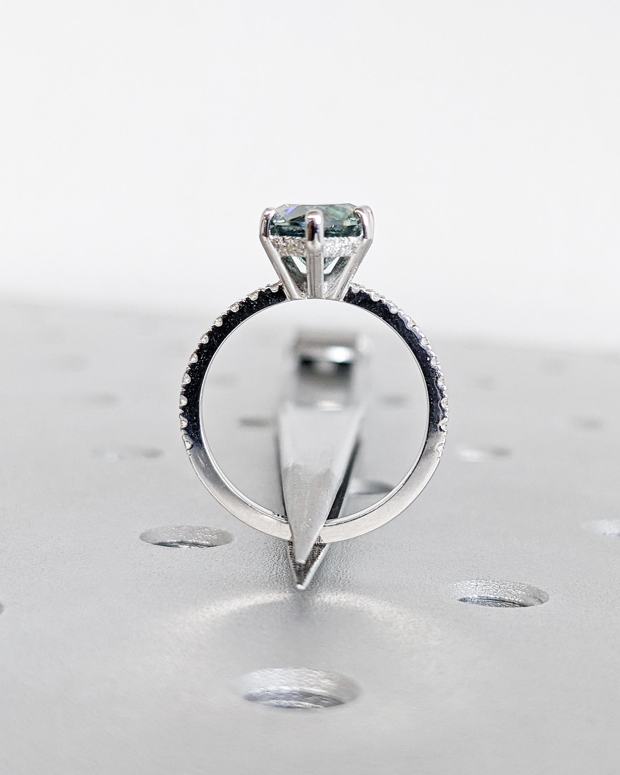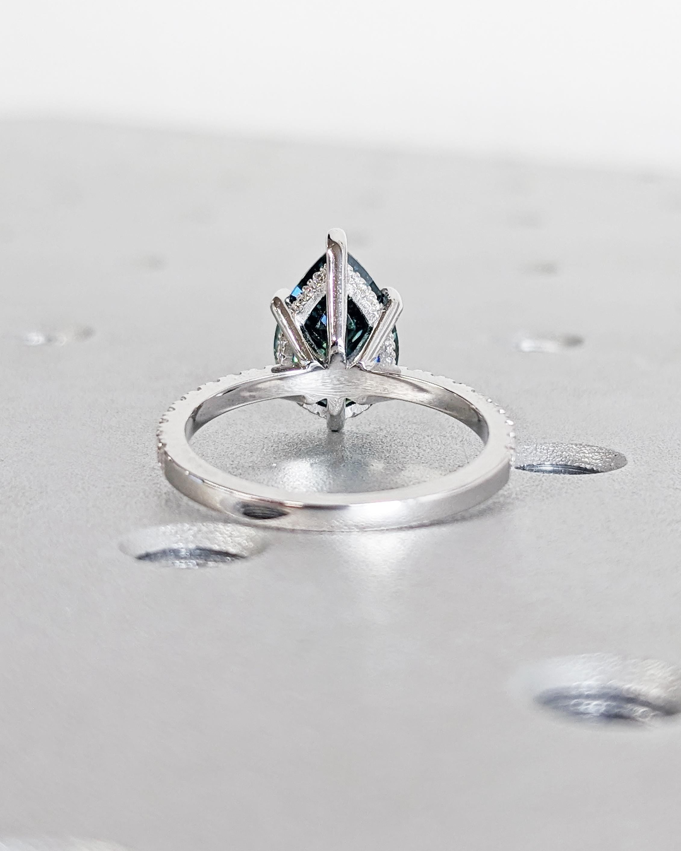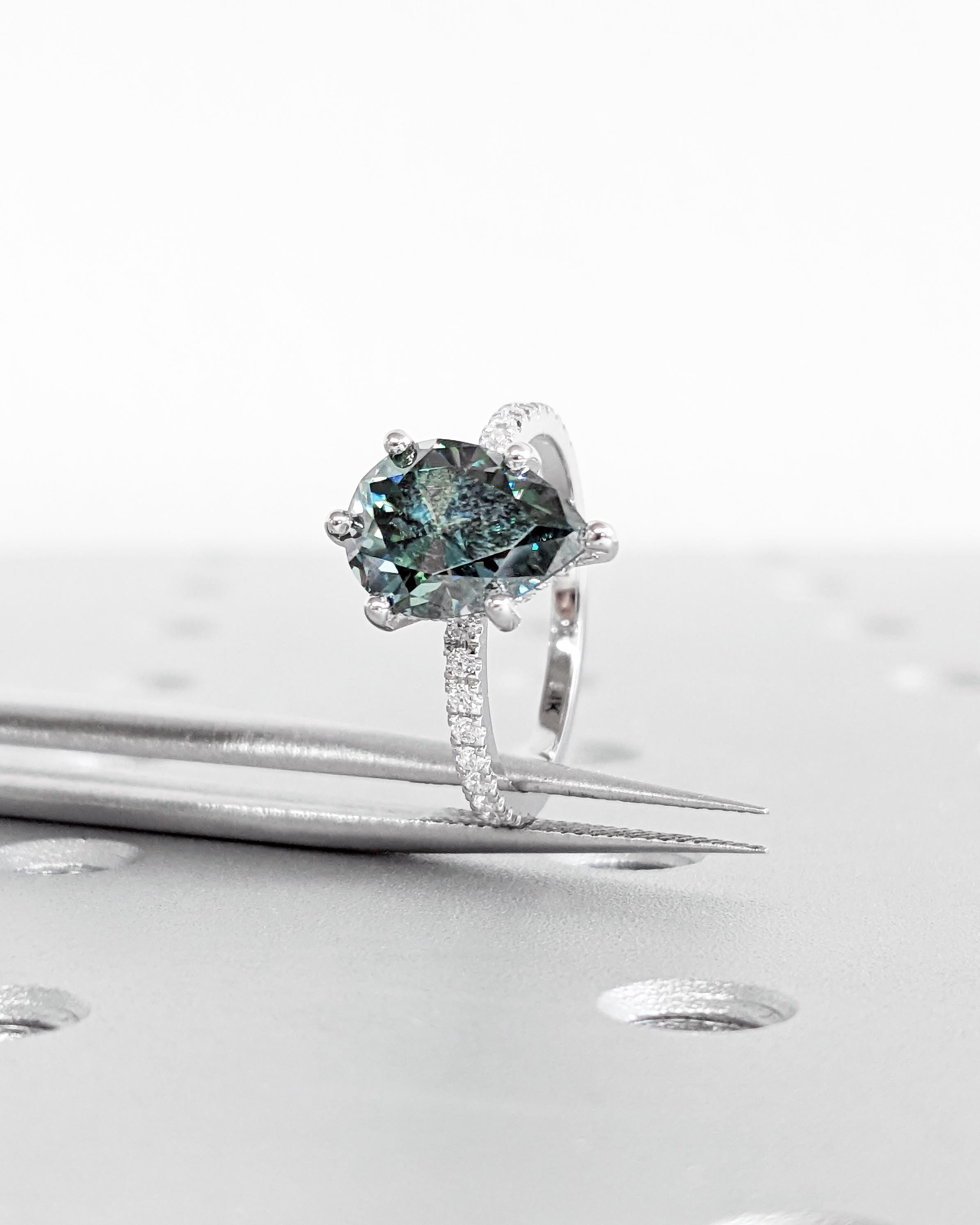 Colored Moissanite Engagement, Green Moissanite Ring, Vintage Blue-Green Pear Engagement Ring, Green Color Moissanite, Diamond Hidden Halo