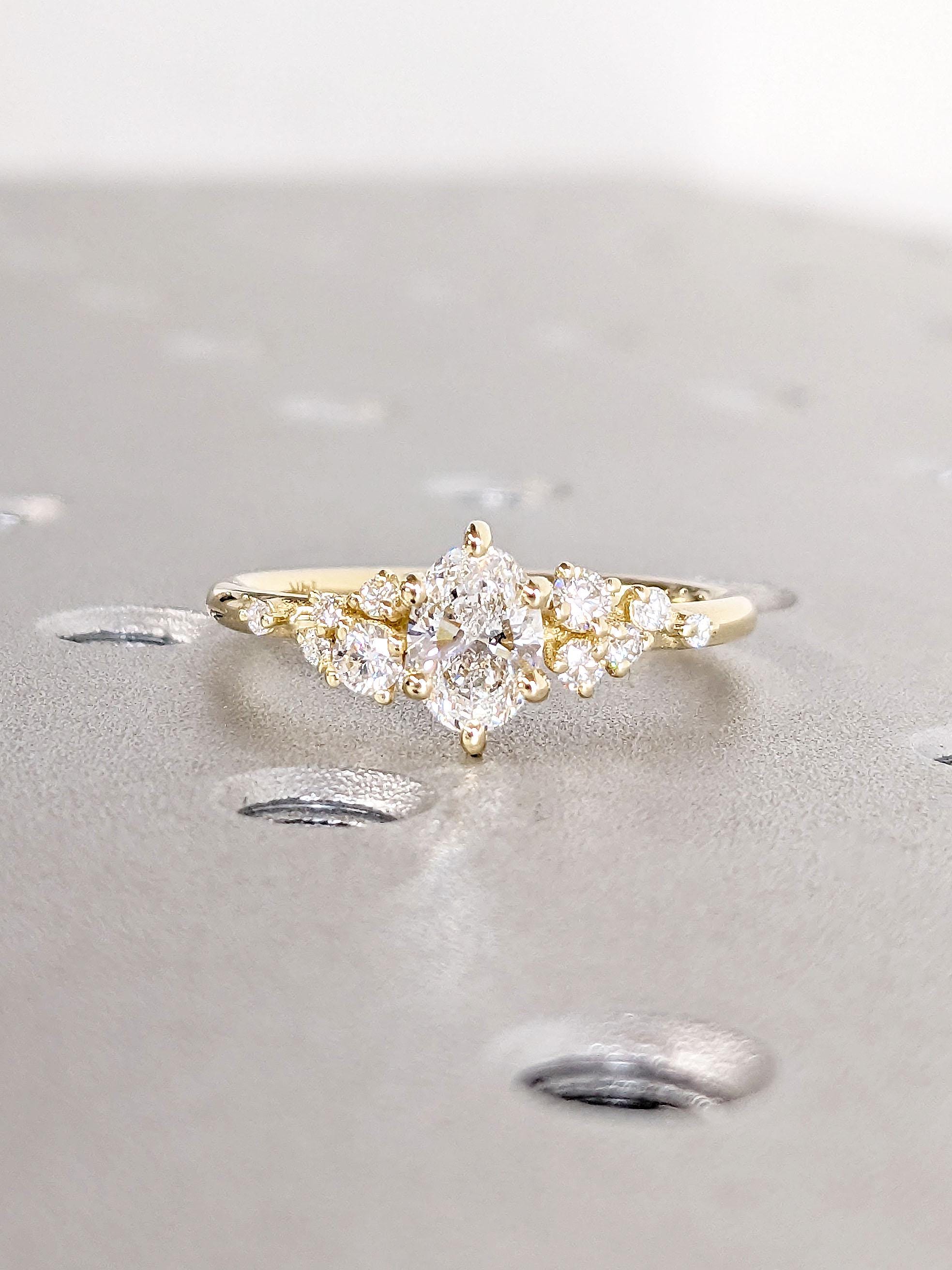 Colorless Moissanite and Natural Diamond Wedding Anniversary Ring Gift for Wife | Real Gold Rings for Women | Promise Ring | Oval Engagement