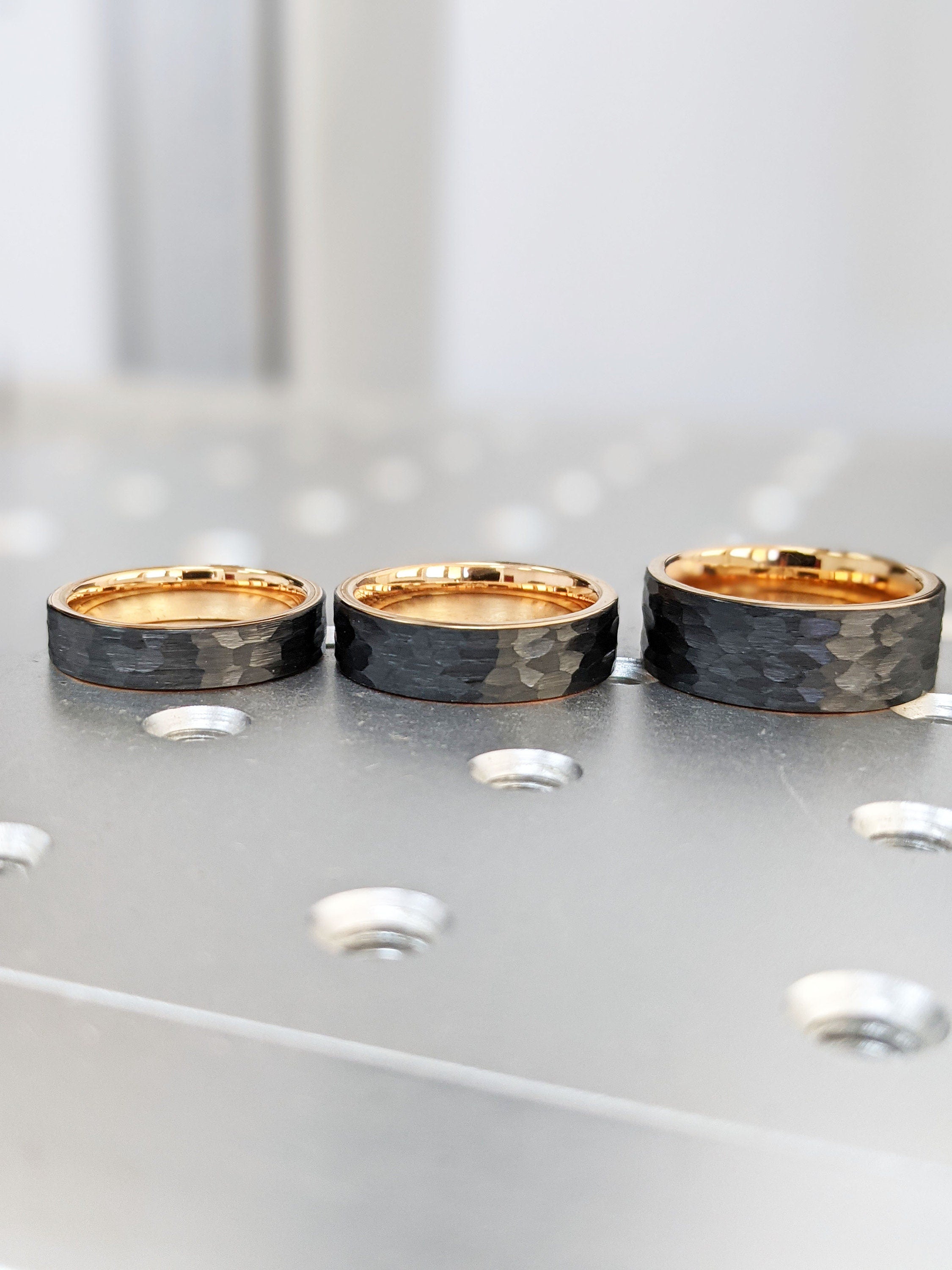 Metal Shown in Images: Black Plated Tungsten, Rose Gold
