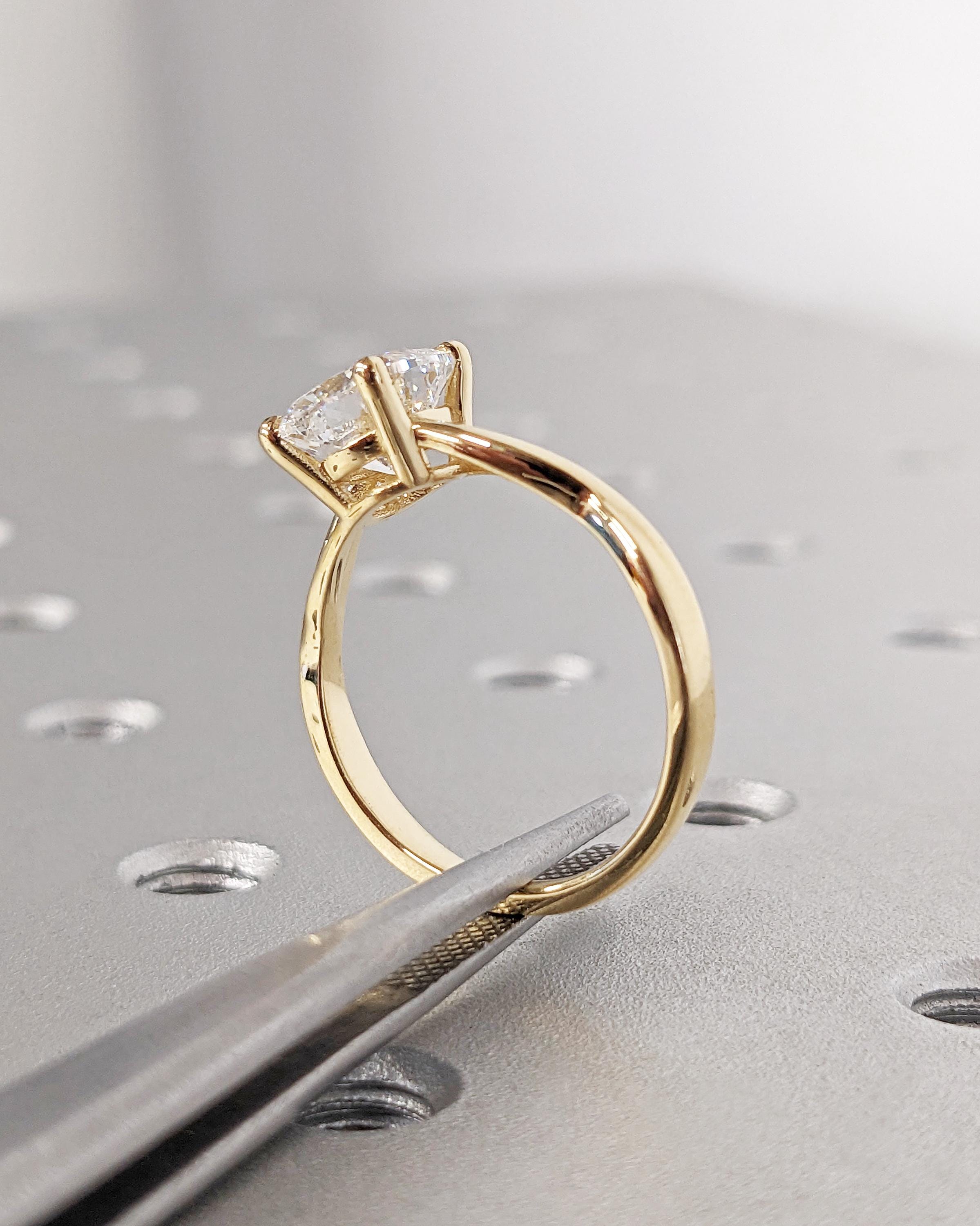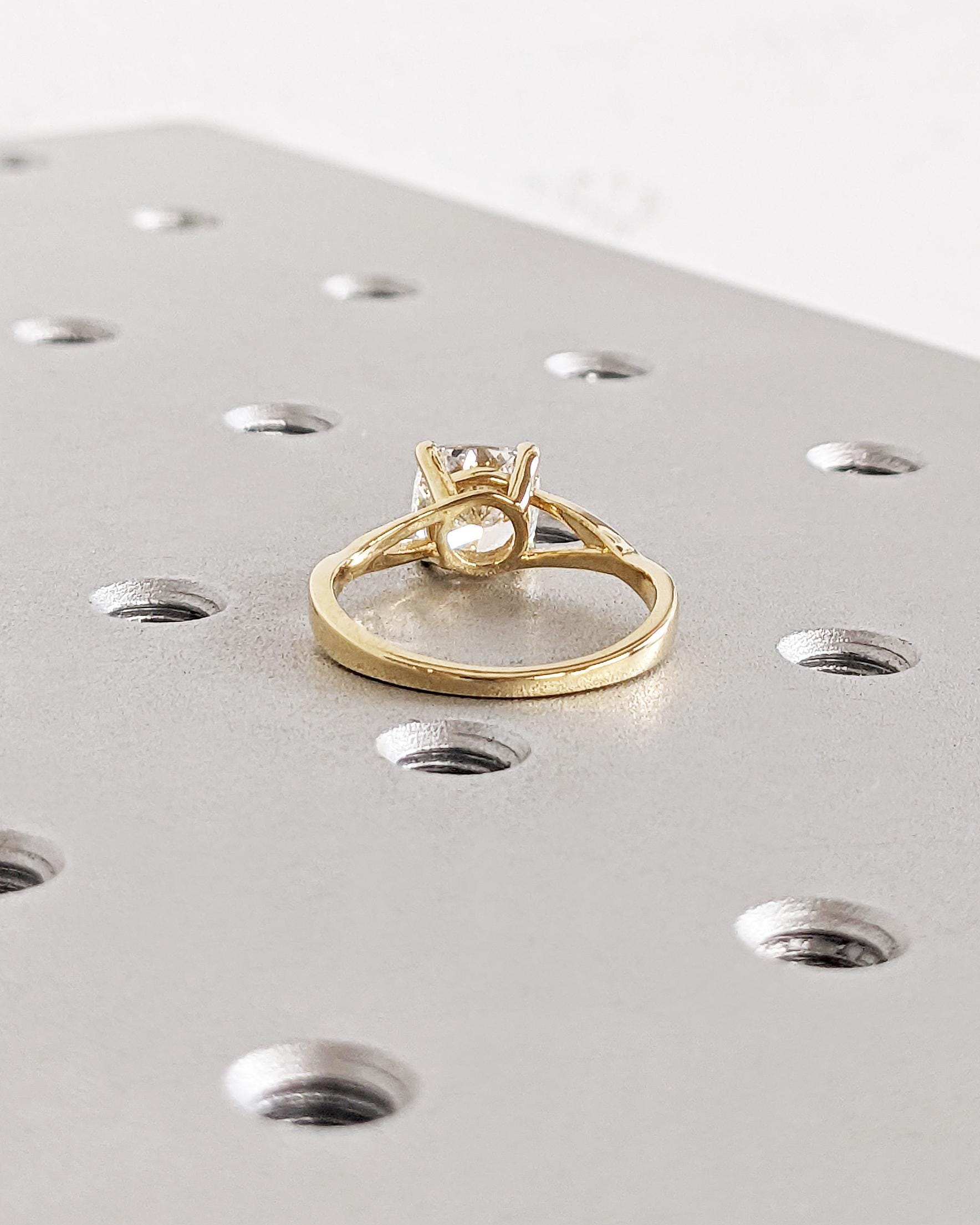 A perfect blend of style and elegance, this lab grown diamond engagement ring features a split shank and twisted band. The open gallery basket setting accentuates the center stone, making it a standout piece.
