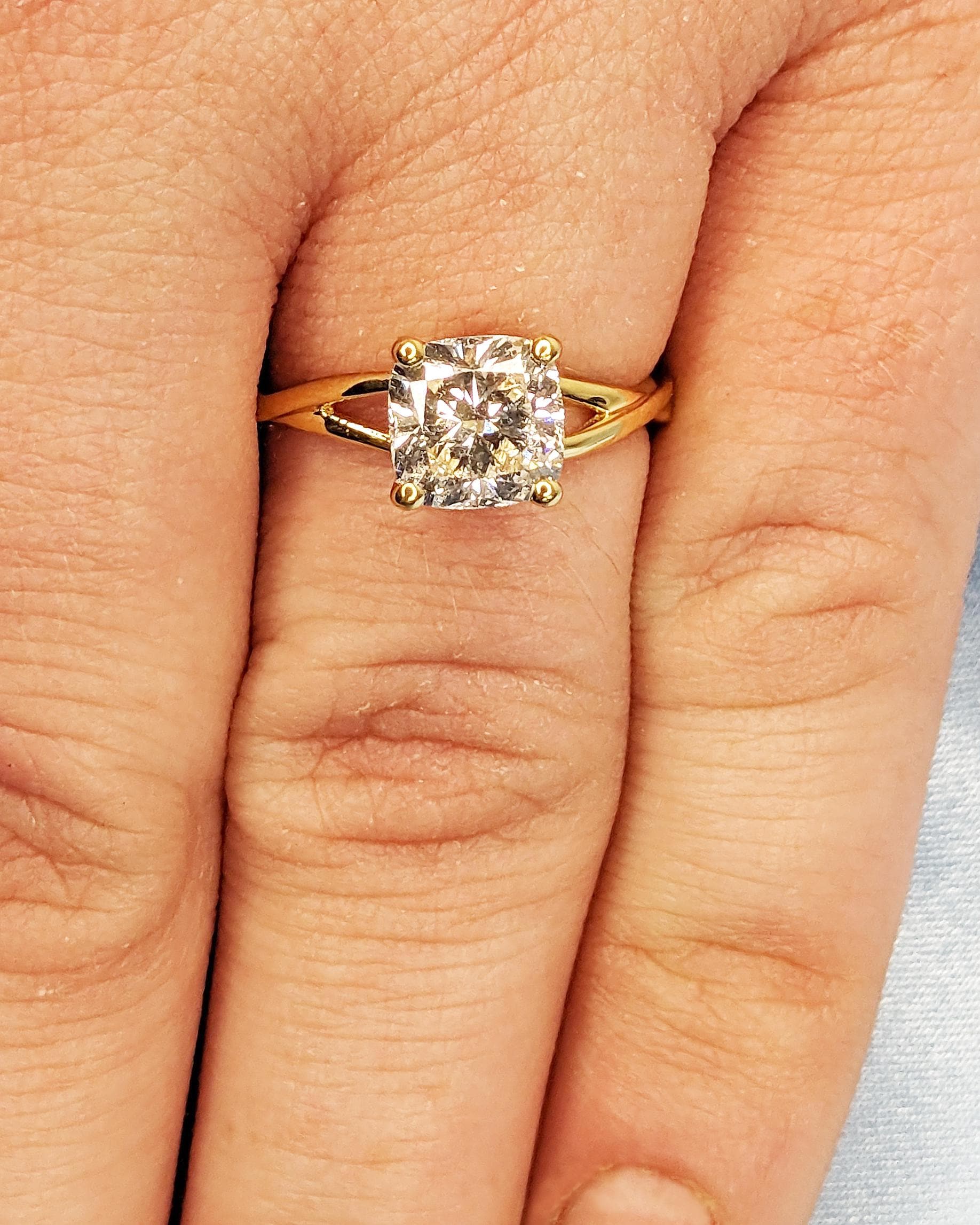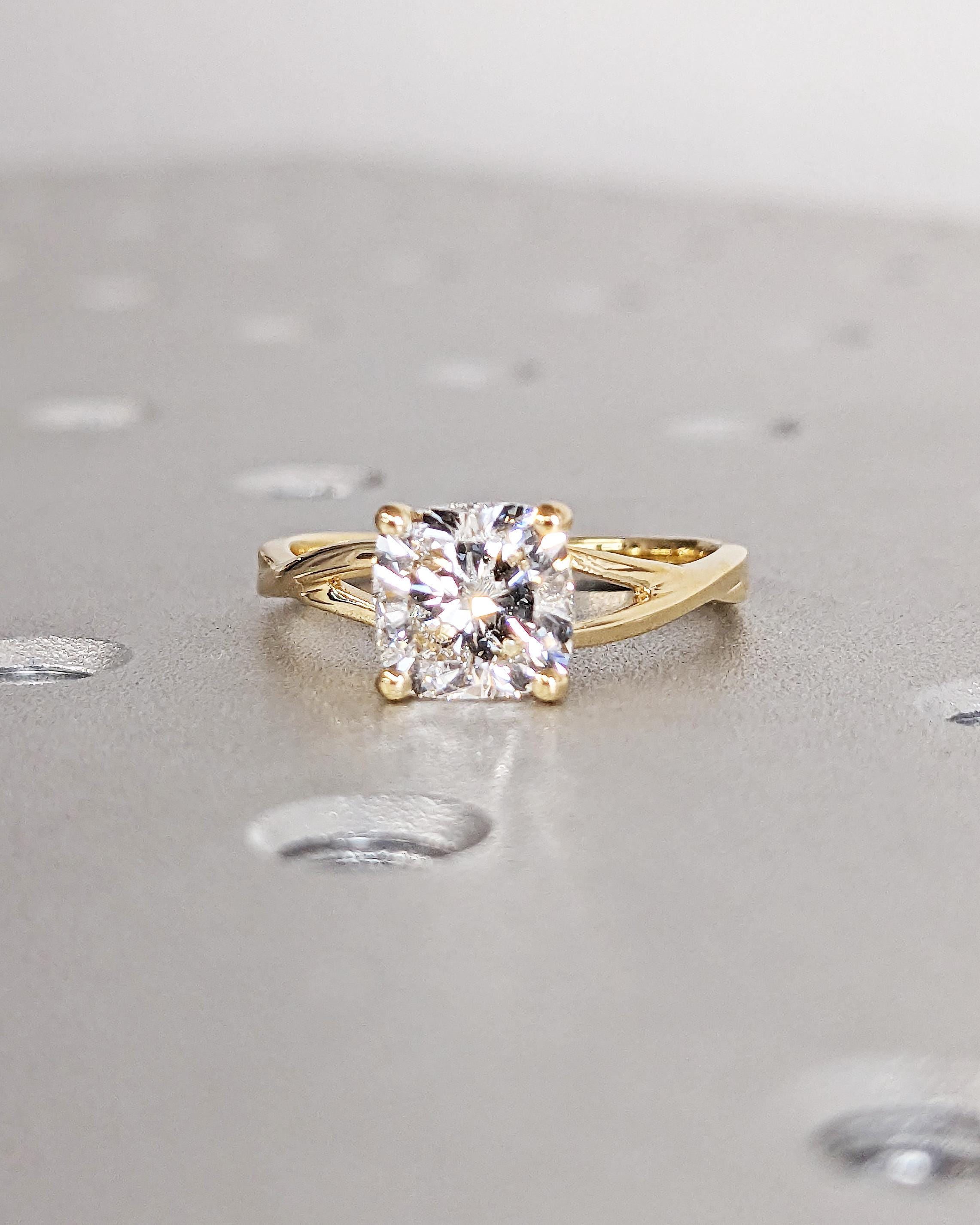 Cushion Cut Lab Created Diamond Solitaire Engagement Ring, IGI Certified Cushion Cut Diamond Wedding Ring, Split Shank, Unique Twisted Band
