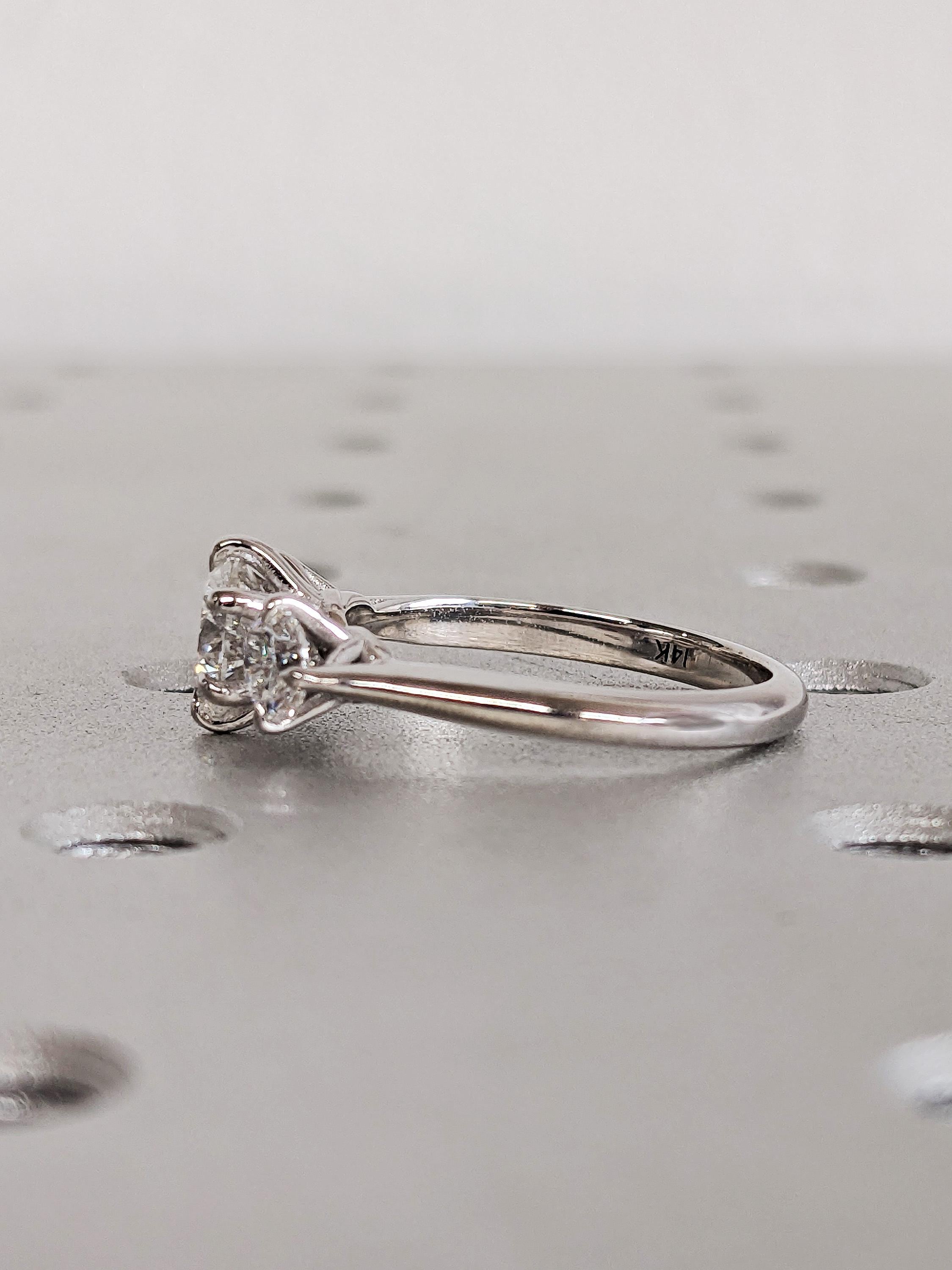 Custom 14K Solid White Gold Lab Grown Diamond Talon Prong Wedding Band, Round Cut Three Stone White Diamond Wedding Band