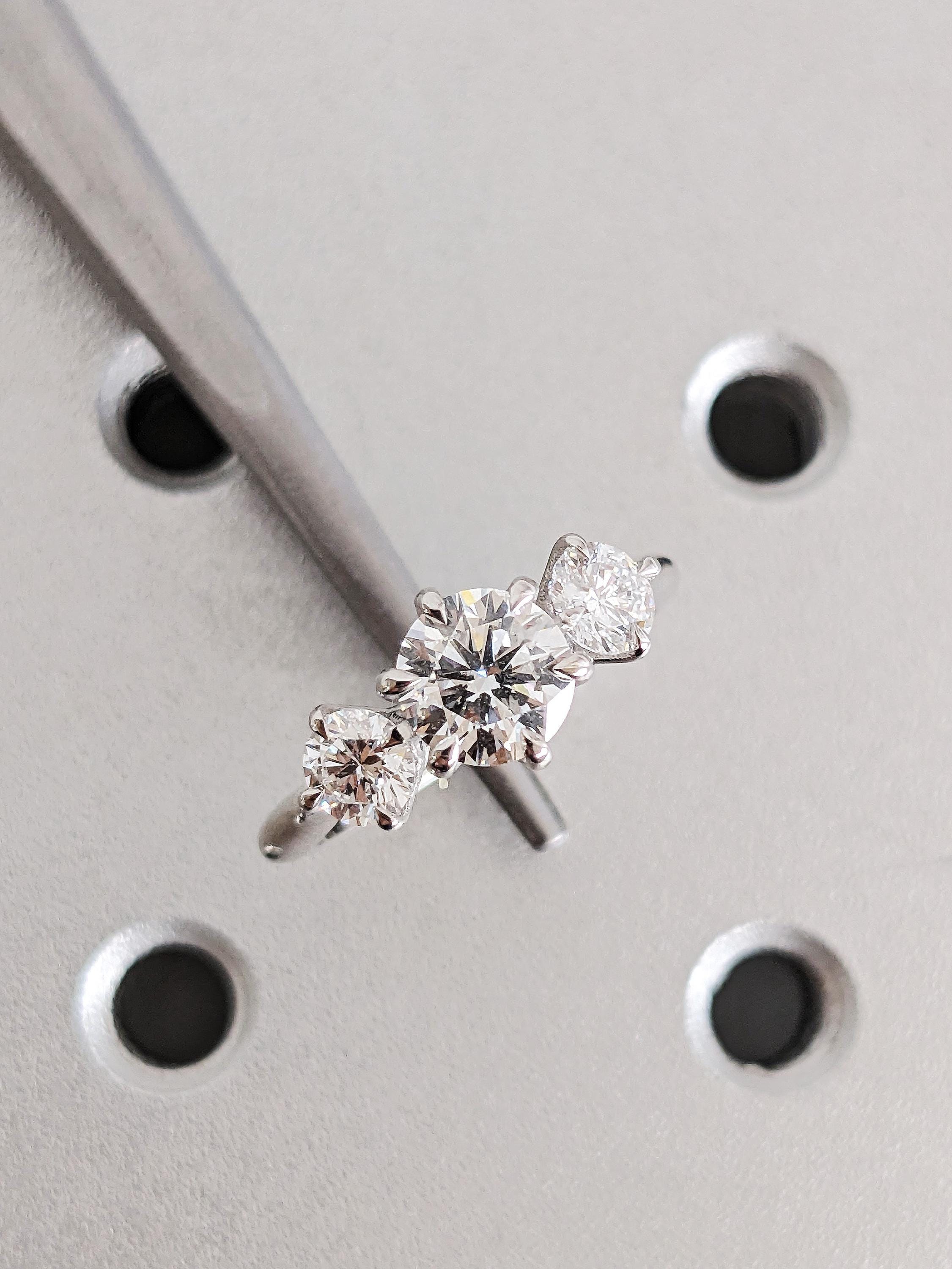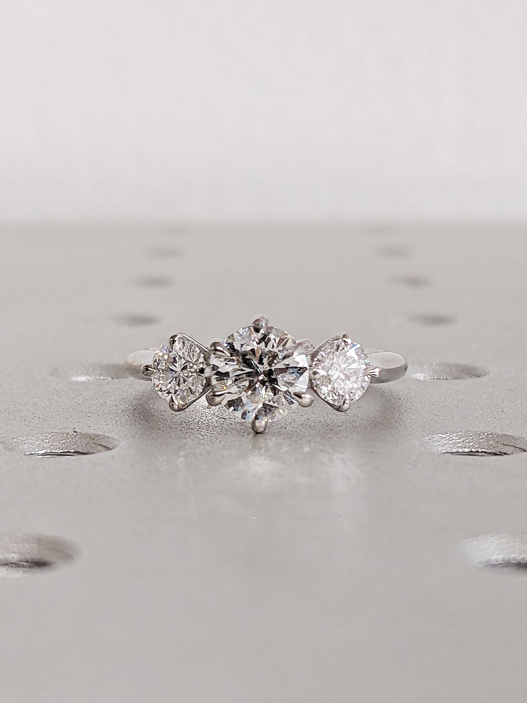 Custom 14K Solid White Gold Lab Grown Diamond Talon Prong Wedding Band, Round Cut Three Stone White Diamond Wedding Band