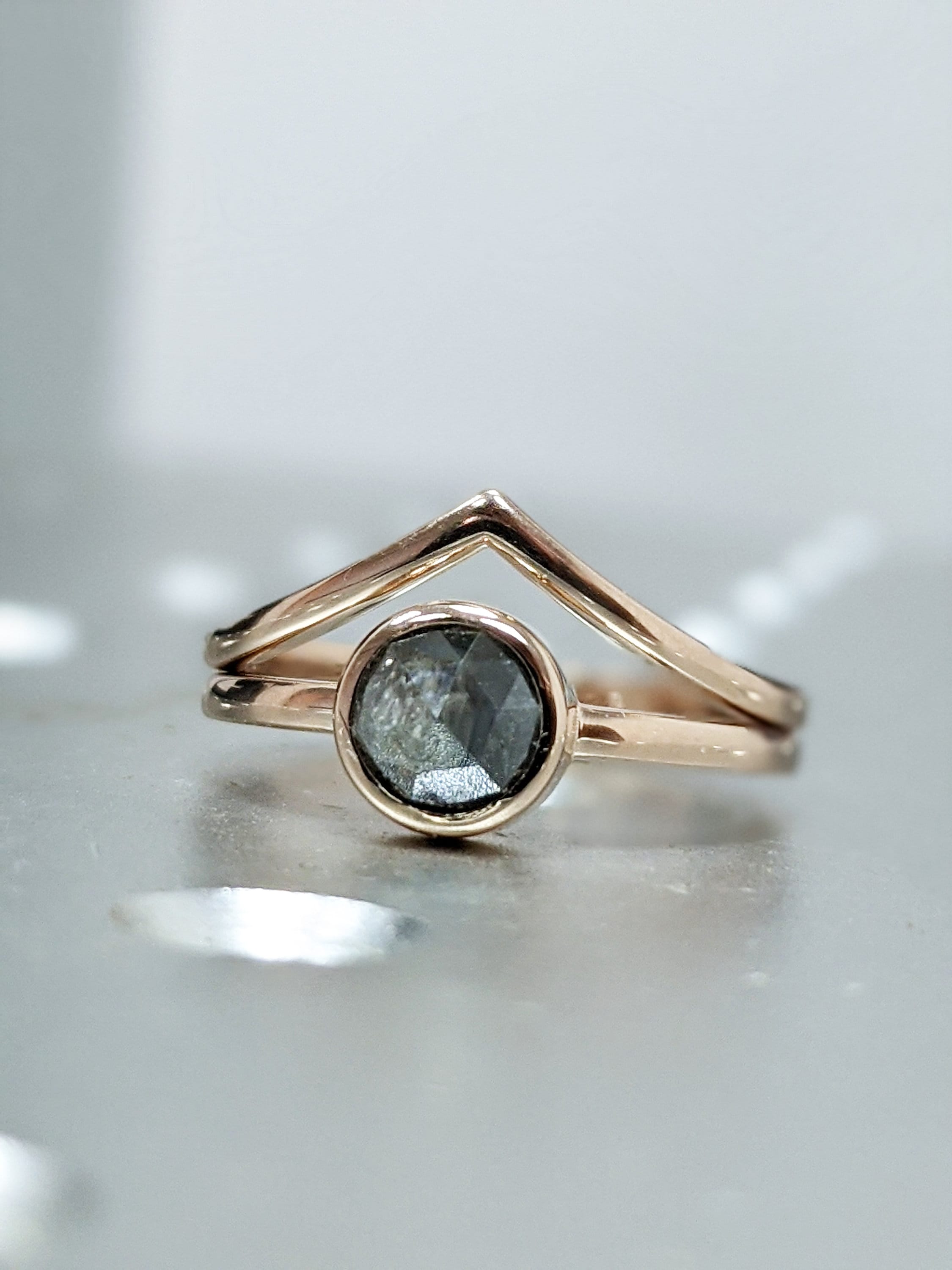 Custom rose cut diamond ring / conflict free diamond / galaxy diamond / gray diamond / salt and pepper diamond / diamond ring / wedding