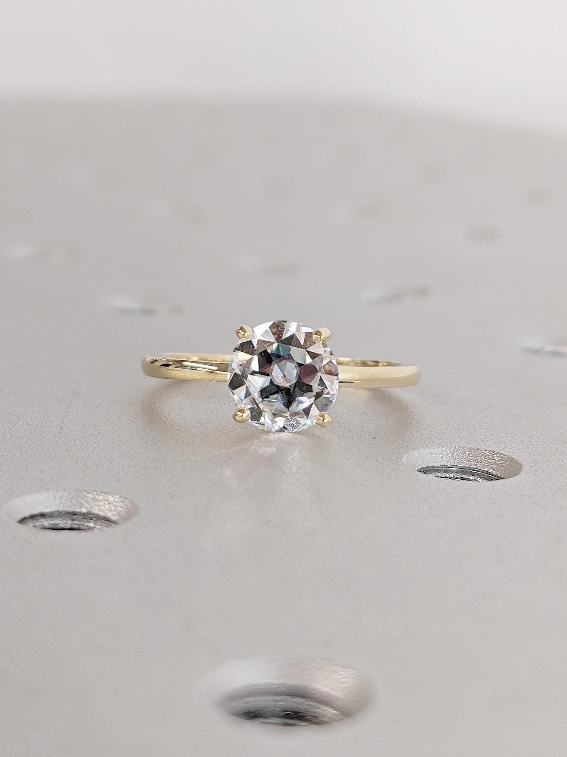 CVD Diamond Hidden Halo Ring | Vintage Old European cut Diamond Ring | Solid Gold Women Wedding Ring