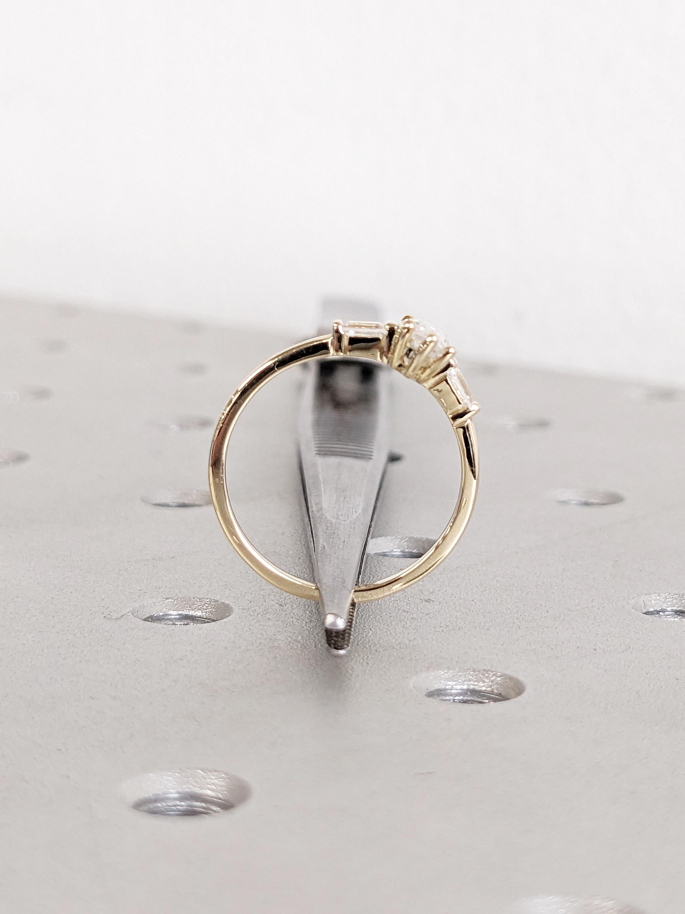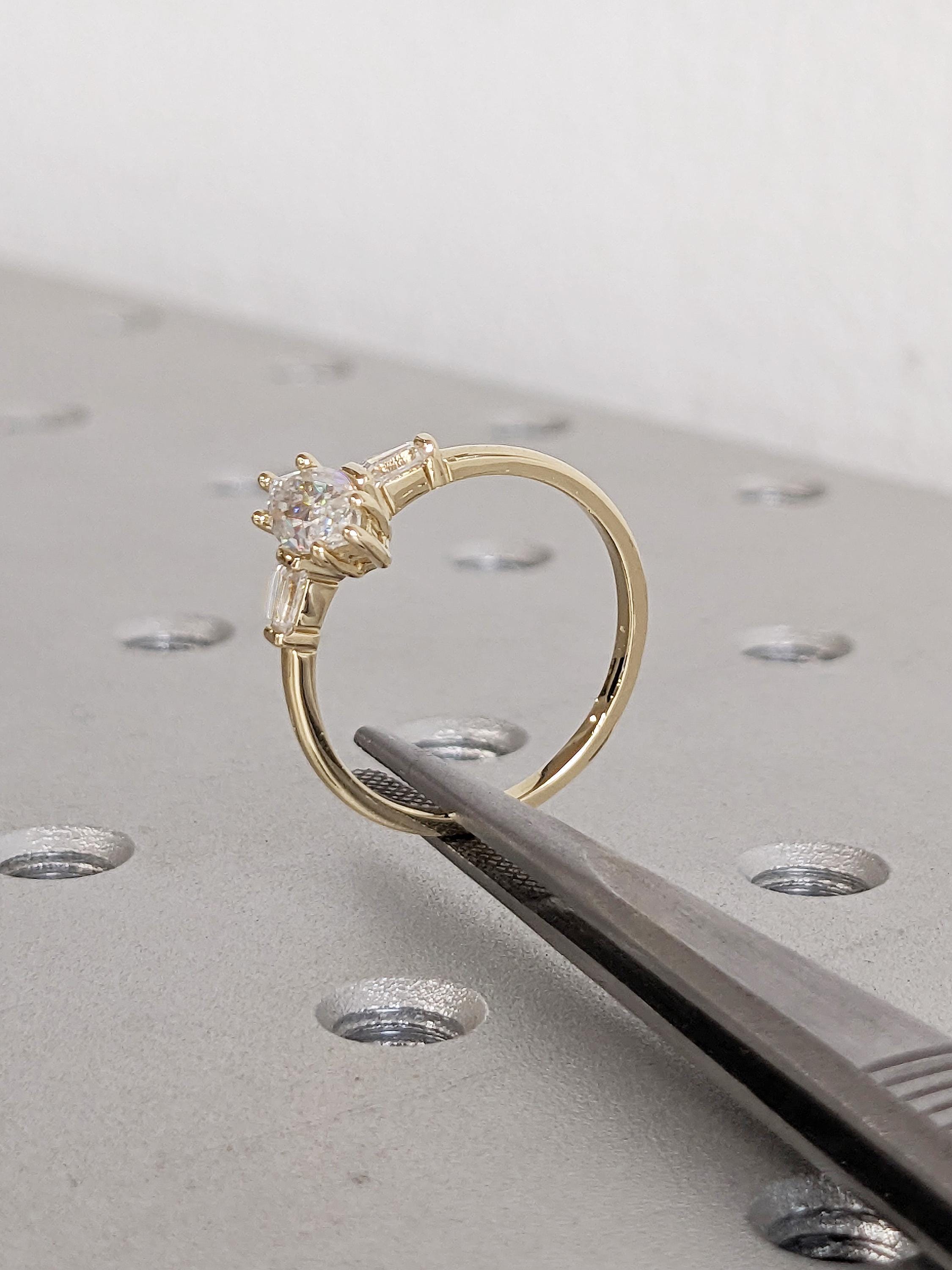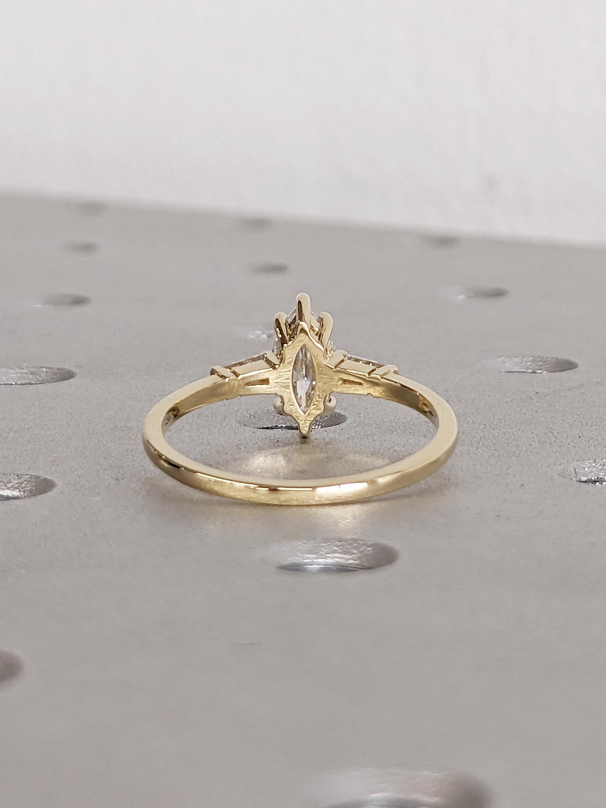 Dainty 14k Gold Women Wedding Ring, Marquise Moissanite Ring, Art Deco Moissanite Anniversary Rings for Women, Unique Tapered Baguette Ring