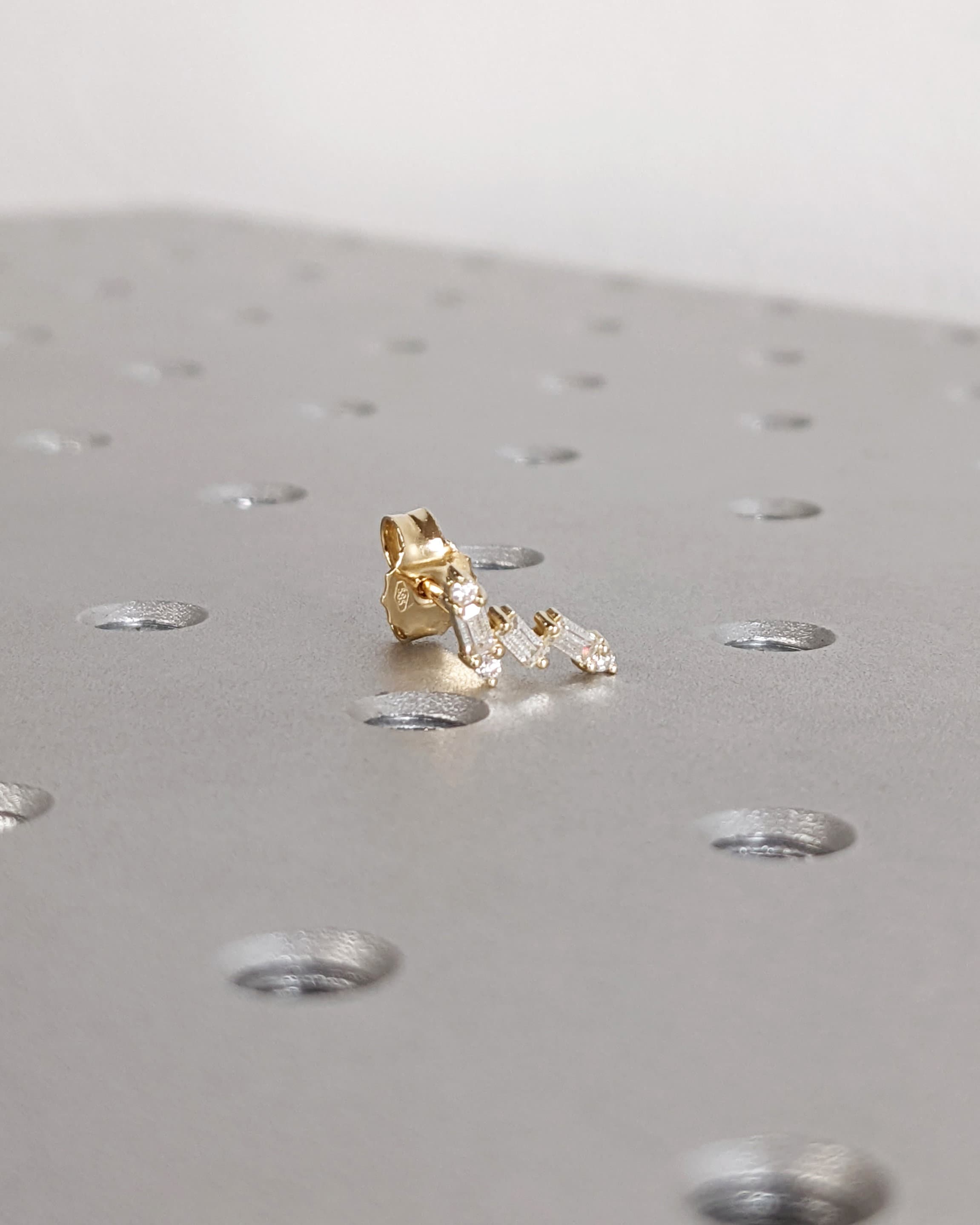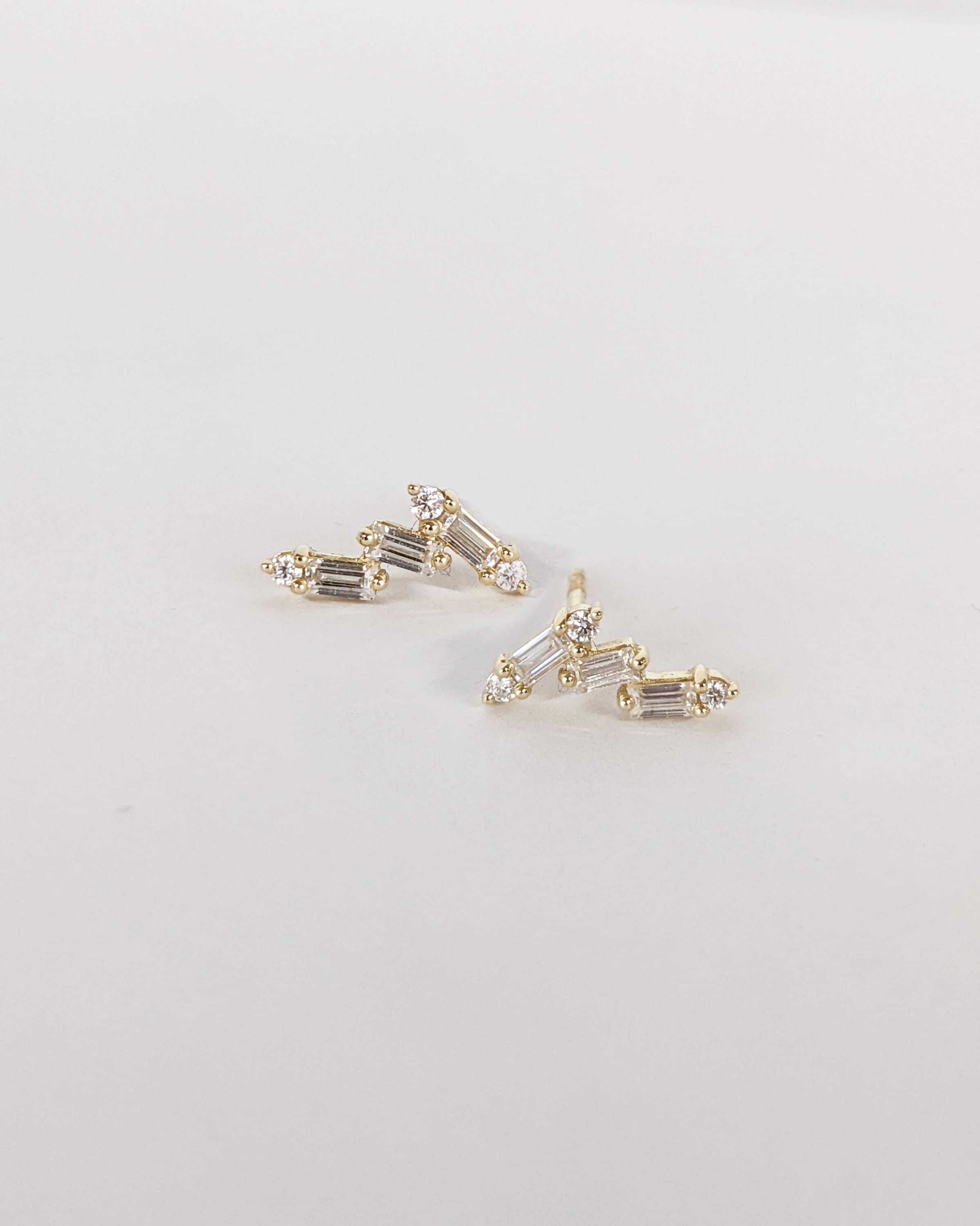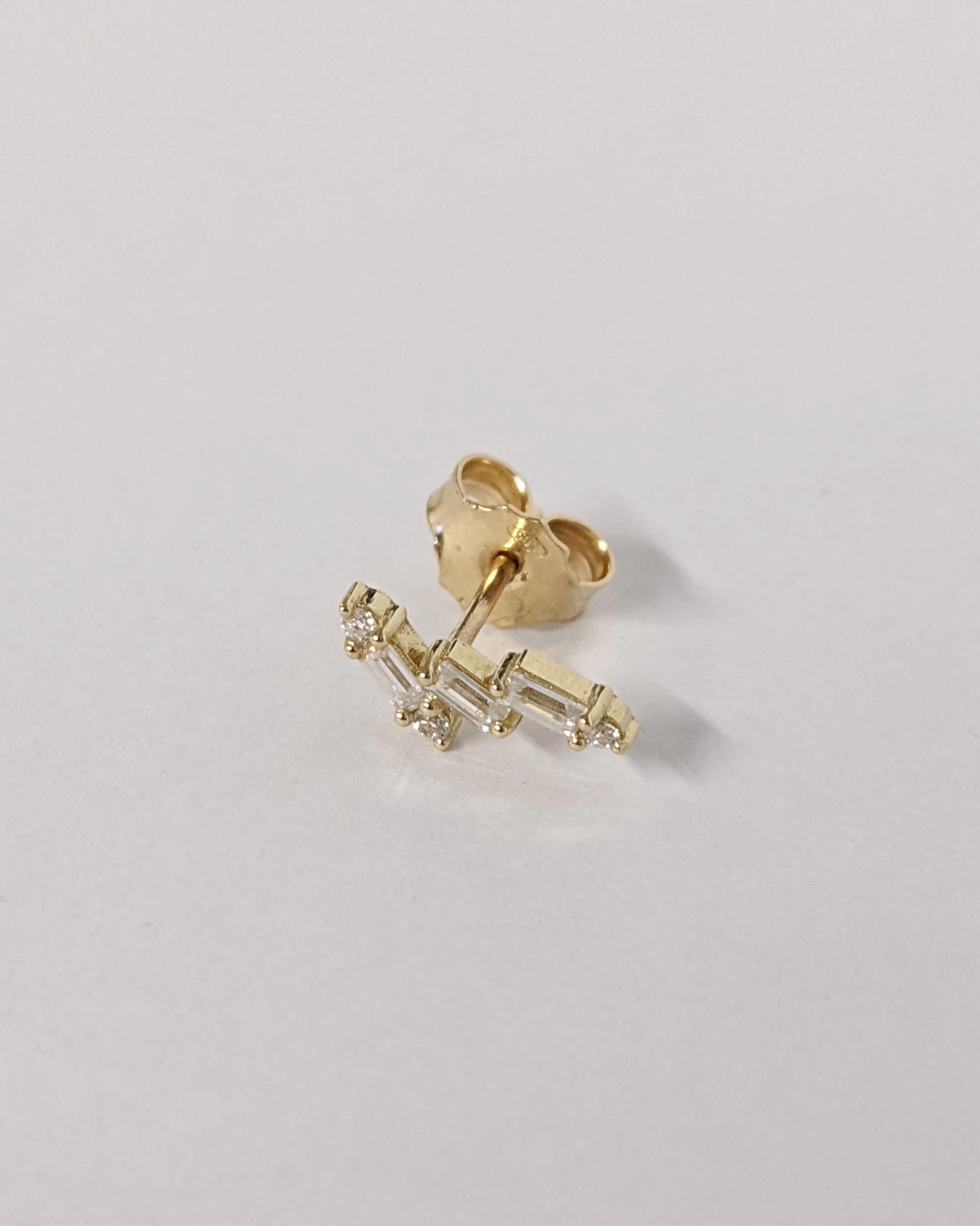Introduce a touch of glamour with our fresh earring collection, showcasing a cluster of natural diamonds designed in both baguette and round shapes. Opt for a single earring or a set to effortlessly enhance your overall appeal.