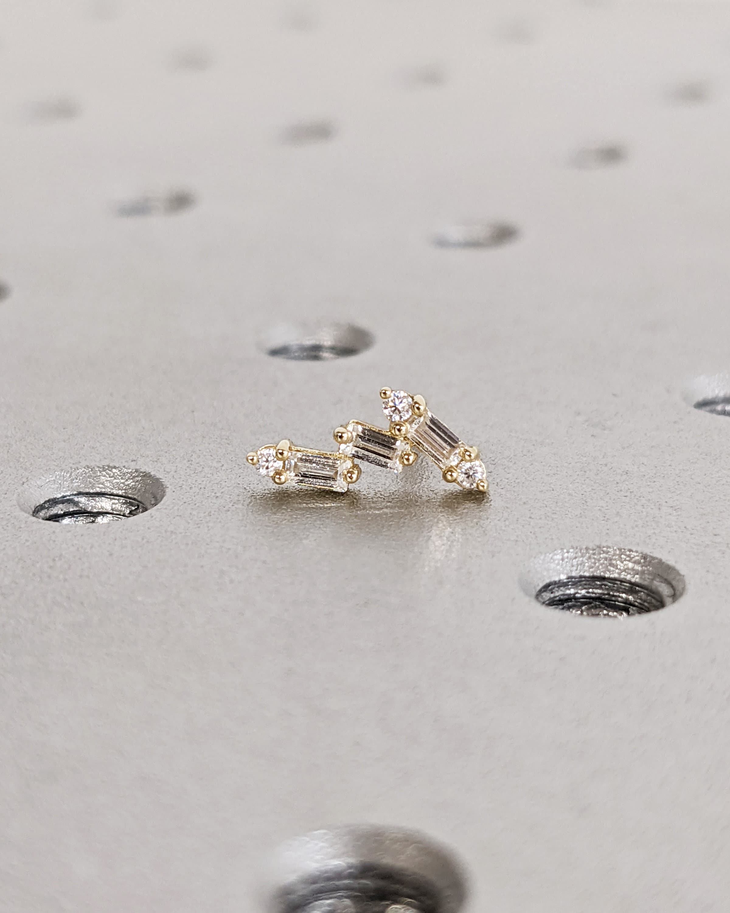 Dainty Baguette and Round Diamond Earrings / 14K 18K Solid Gold Screw Back Studs / Tiny Diamond Cluster / Minimalist Single or Pair Earrings