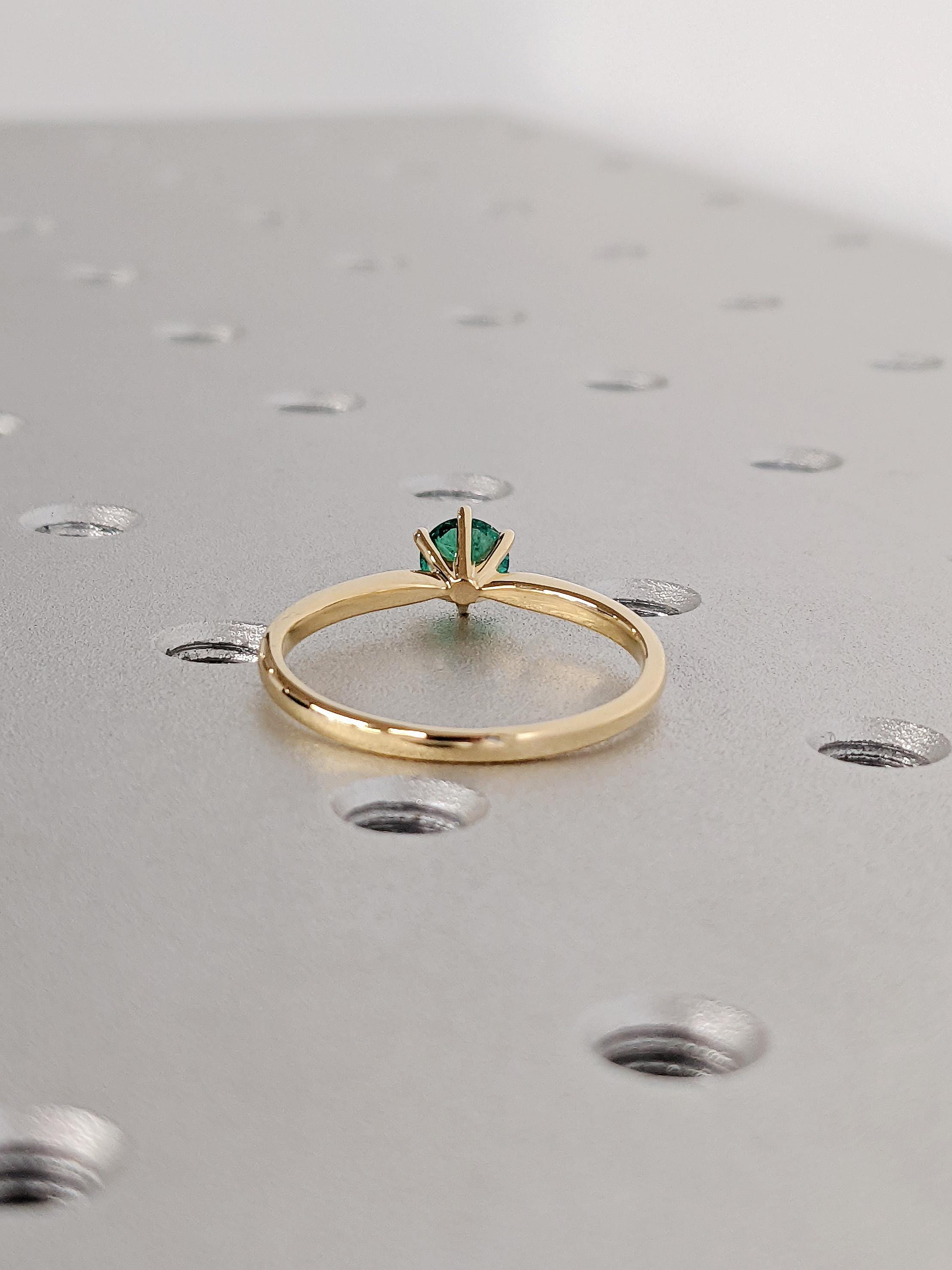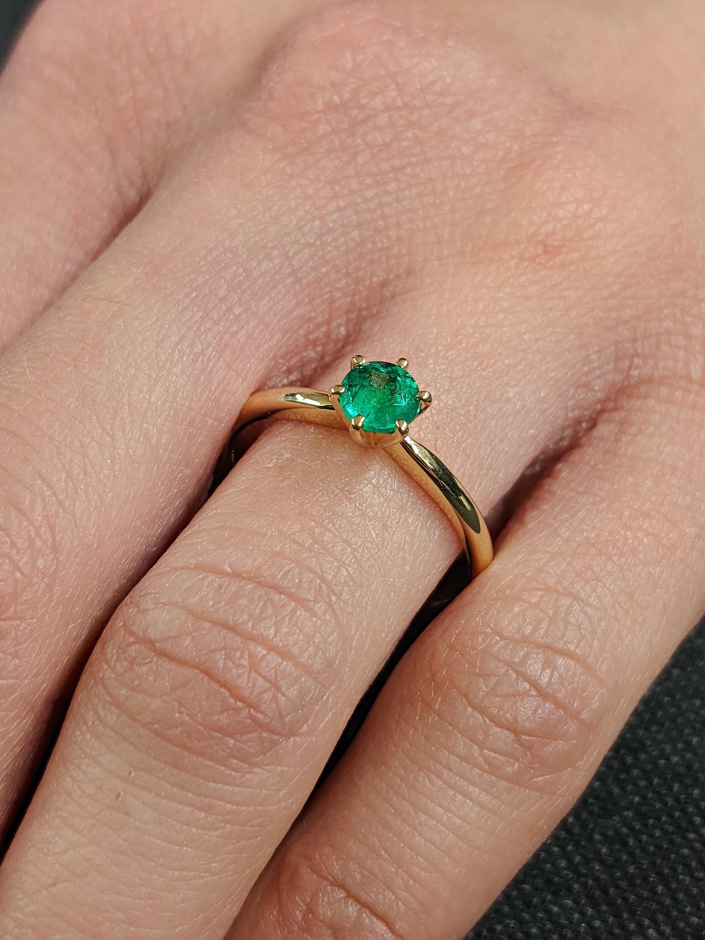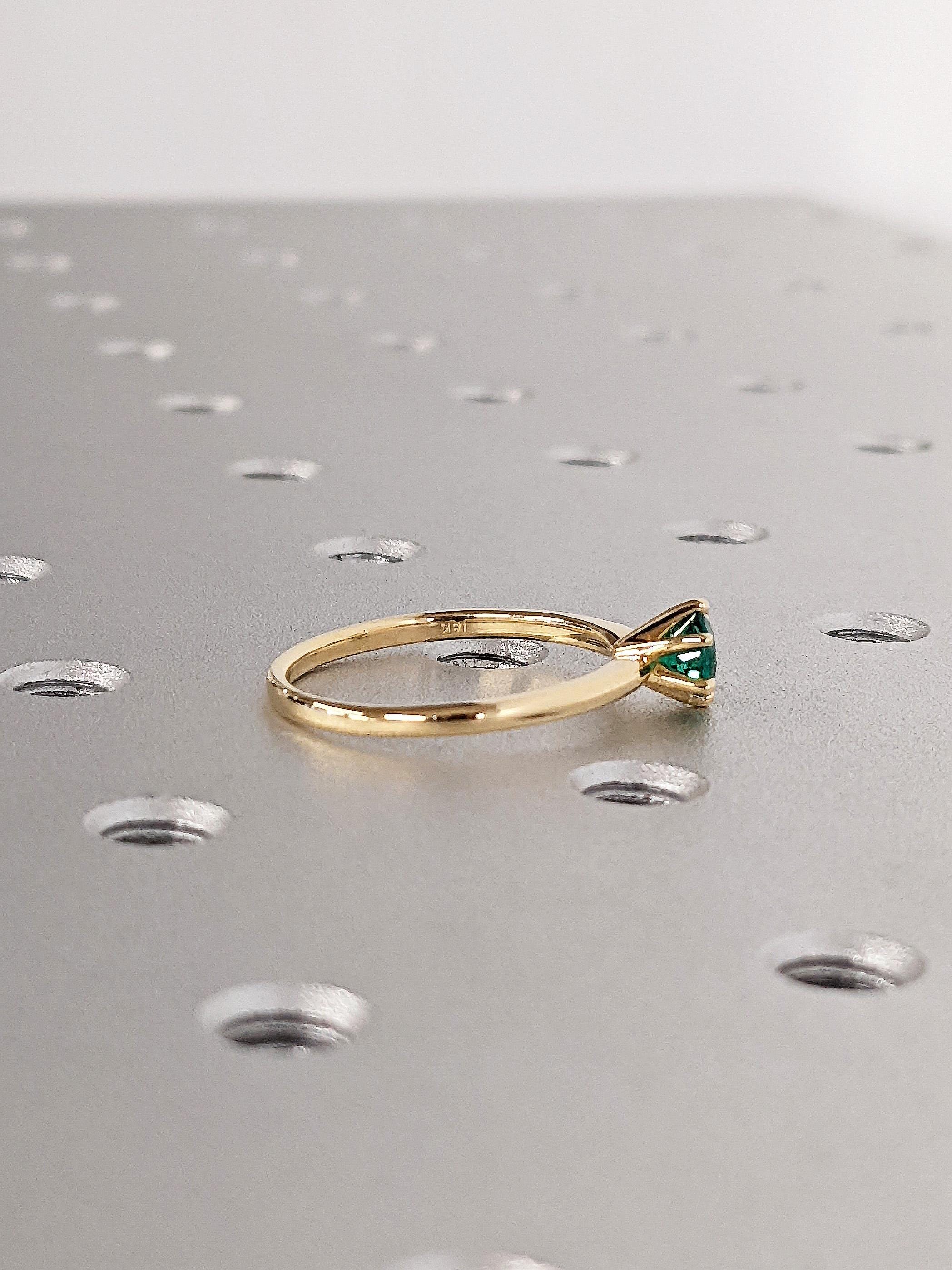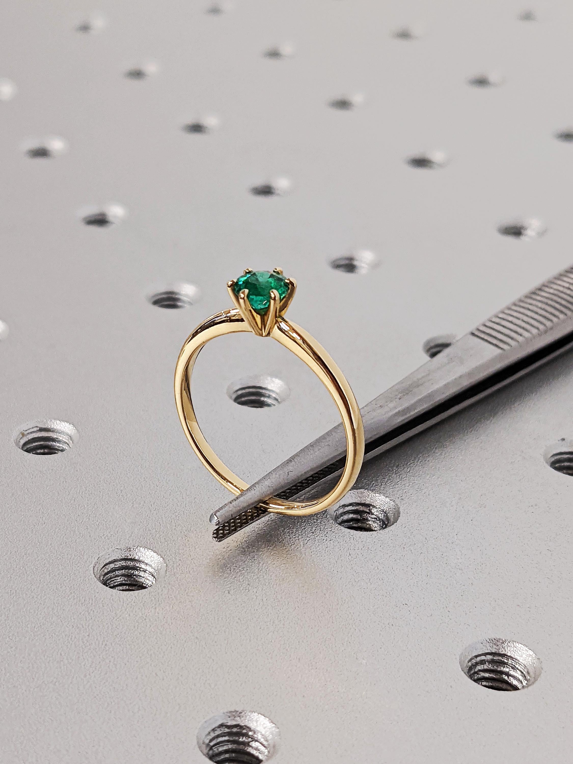 Dainty Green Lab Emerald Women's Engagement Ring, 18K Solid Yellow Gold Round Cut Solitaire Wedding Band, Custom Bridal Wedding Jewelry