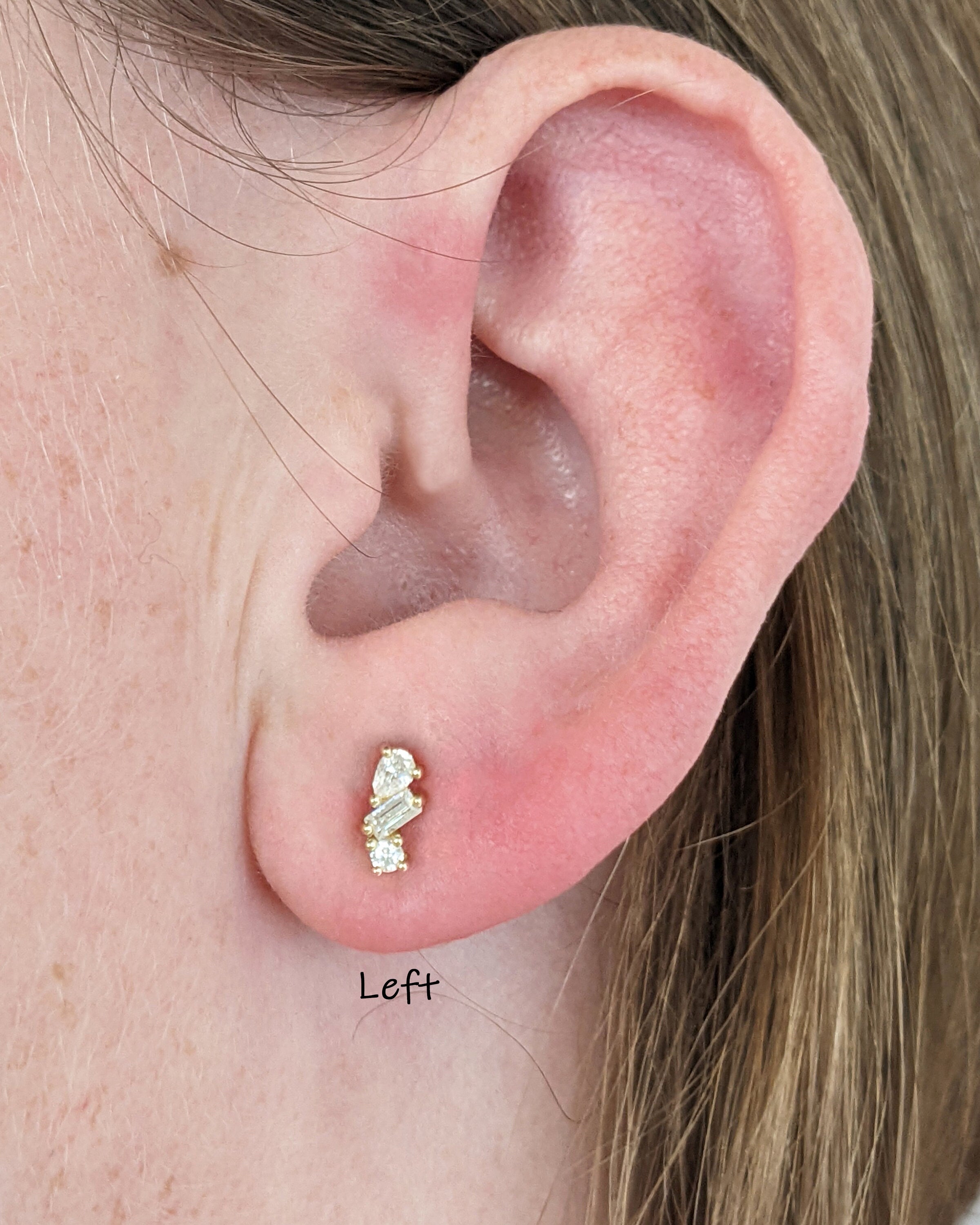 Dainty Multi Shape Baguette, Round, Pear cut Diamond Everyday Stud Earrings | Set of 4 Earrings Collection for Her | Yellow Rose White Gold