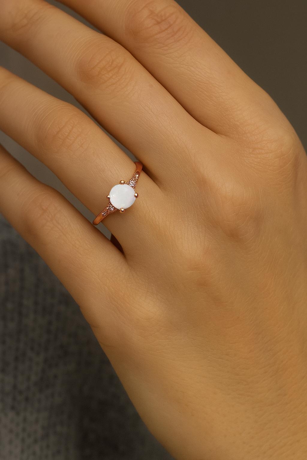 Dainty Opal Ring, 14k Rose Gold Engagement Ring, Opal and Diamond Wedding Ring, Gemstone Ring, Anniversary Gift for Her, Birthstone Jewelry