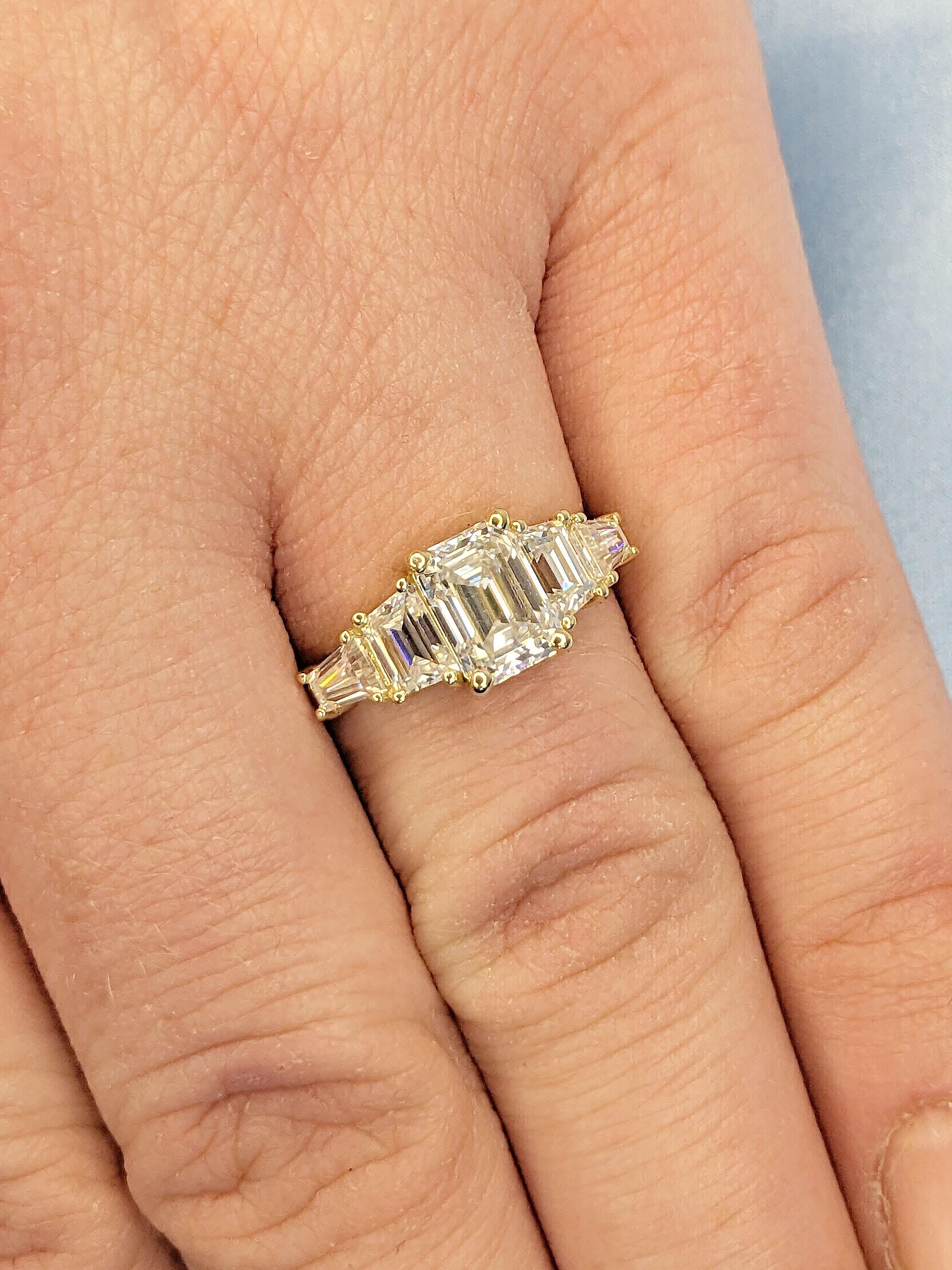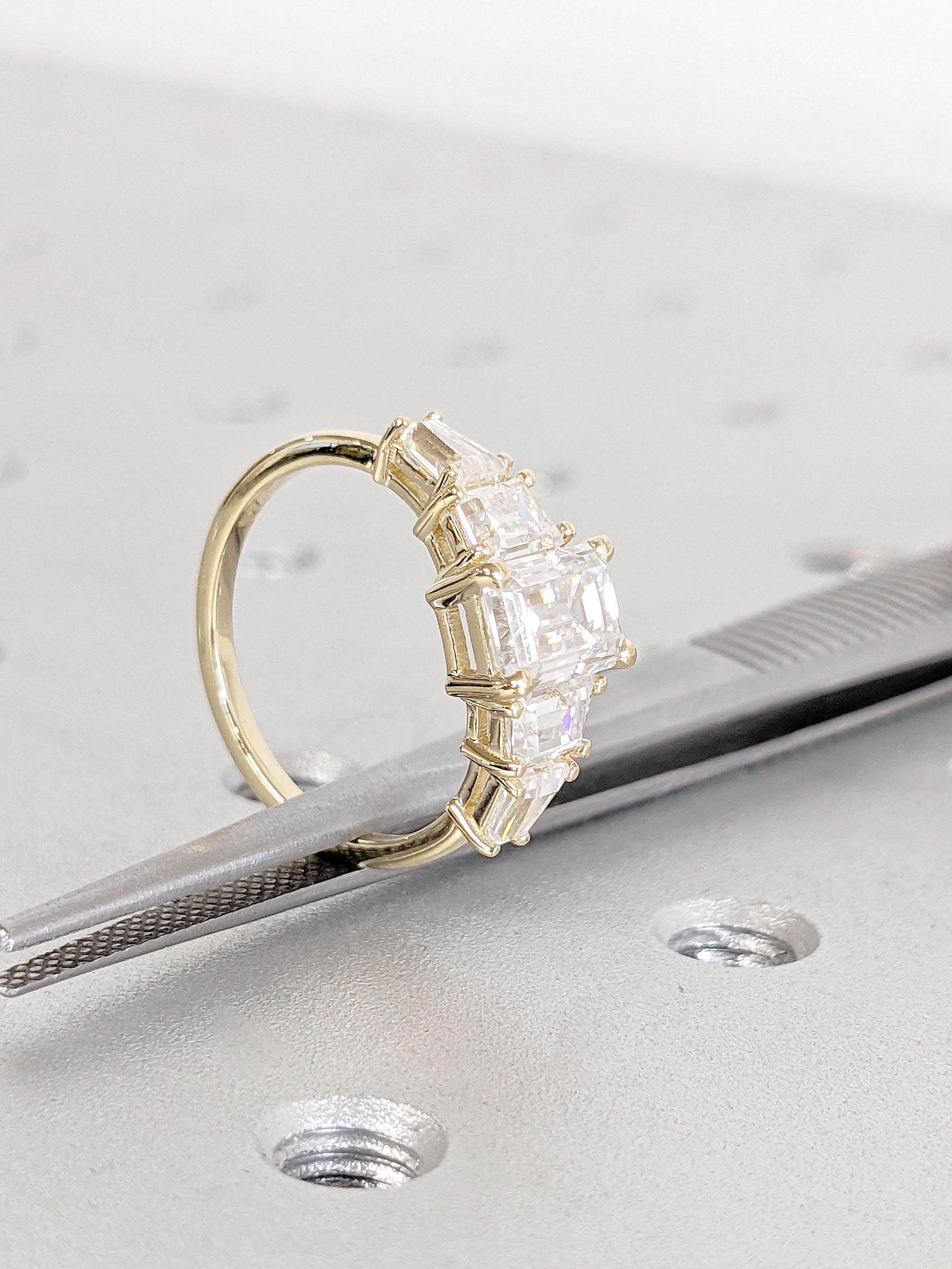 Dainty Solitaire Emerald Cut & Baguette Art Deco Promise Ring - 5 Stone Engagement Ring - Emerald Cut Moissanite 14K Yellow Gold Bridal Ring