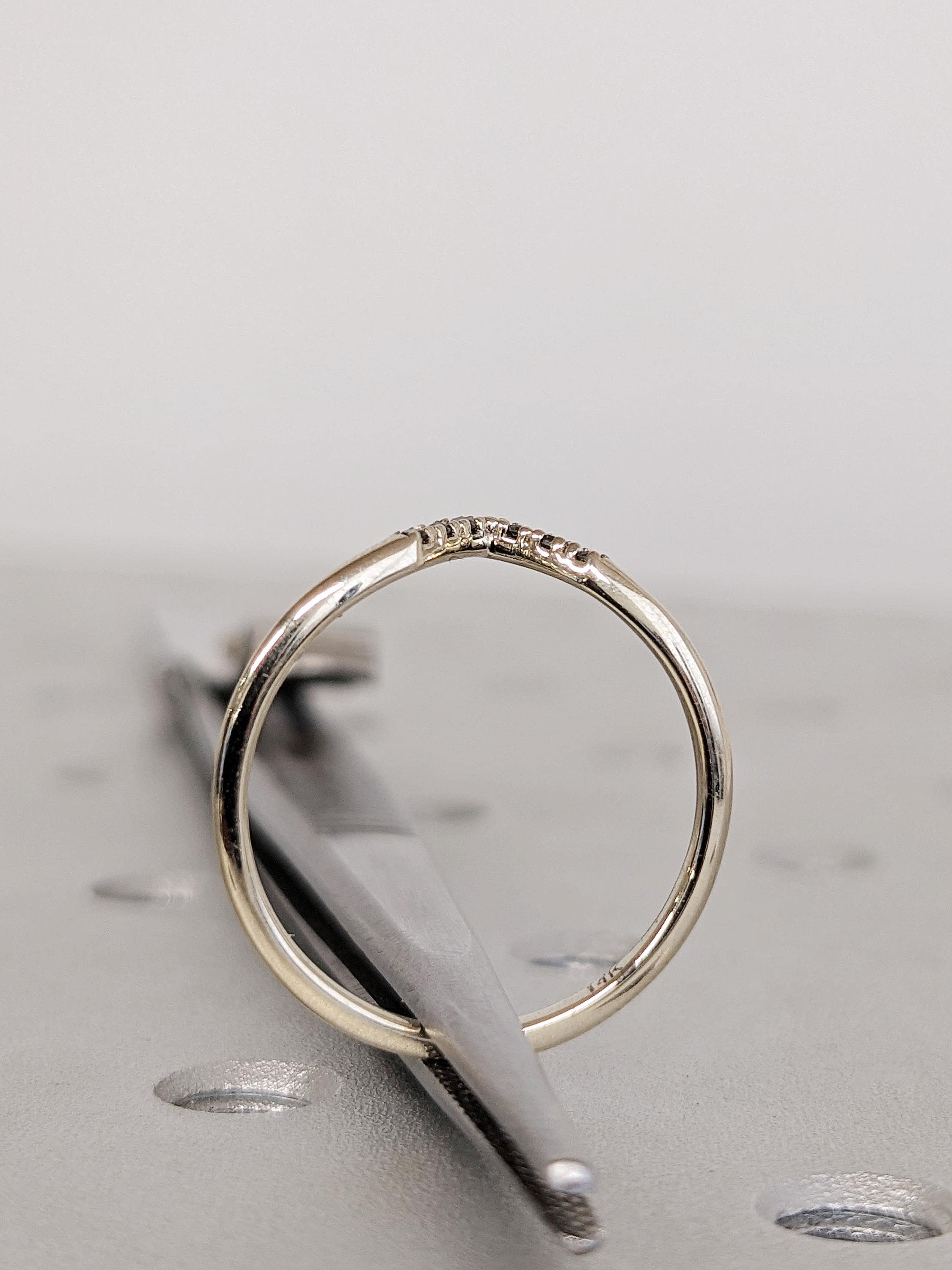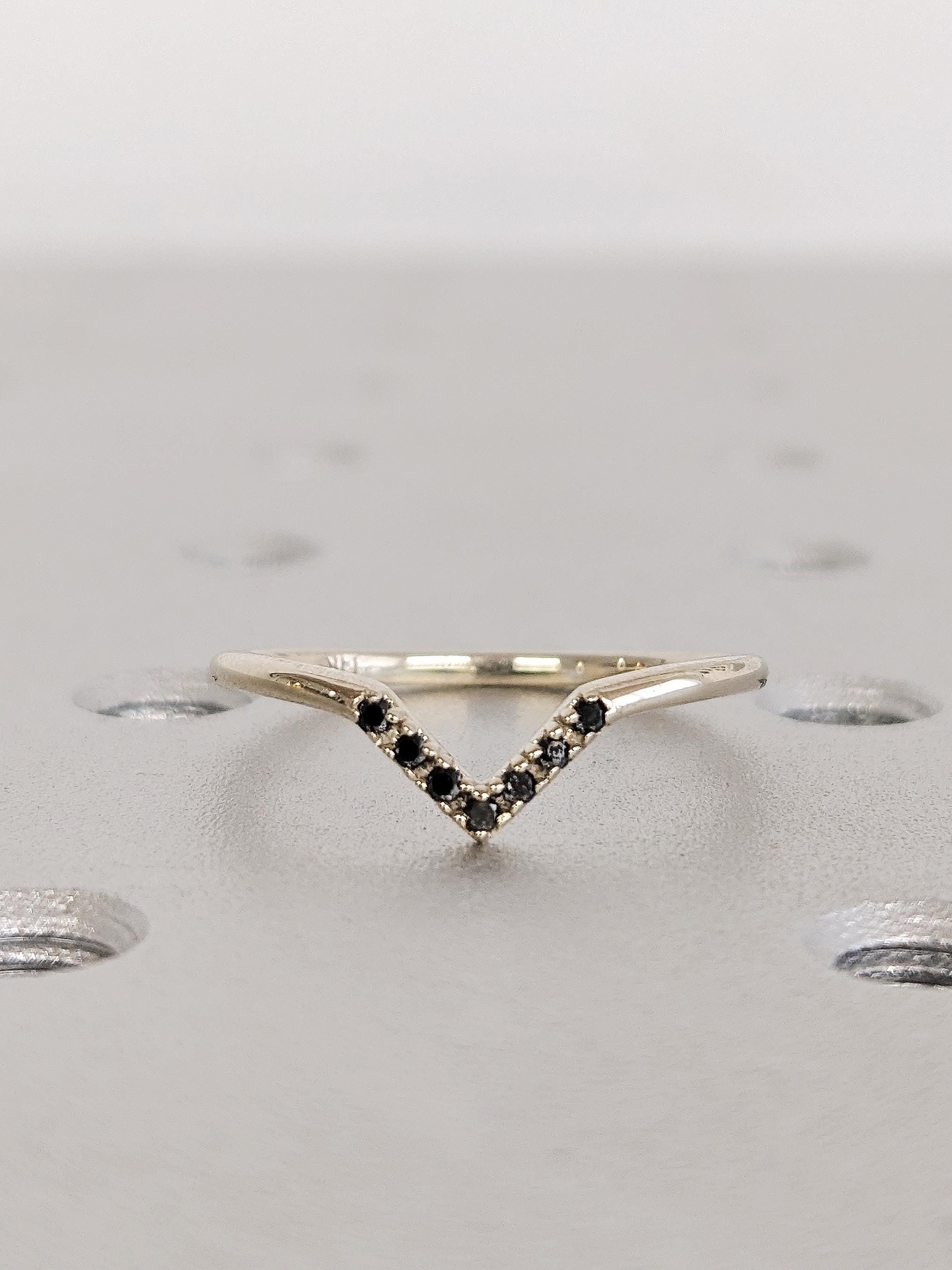Dainty V Shaped Black Diamond Ring, 14K White Gold Diamond Chevron Matching Ring, Stackable Matching Engagement Ring, Curved Wedding Band
