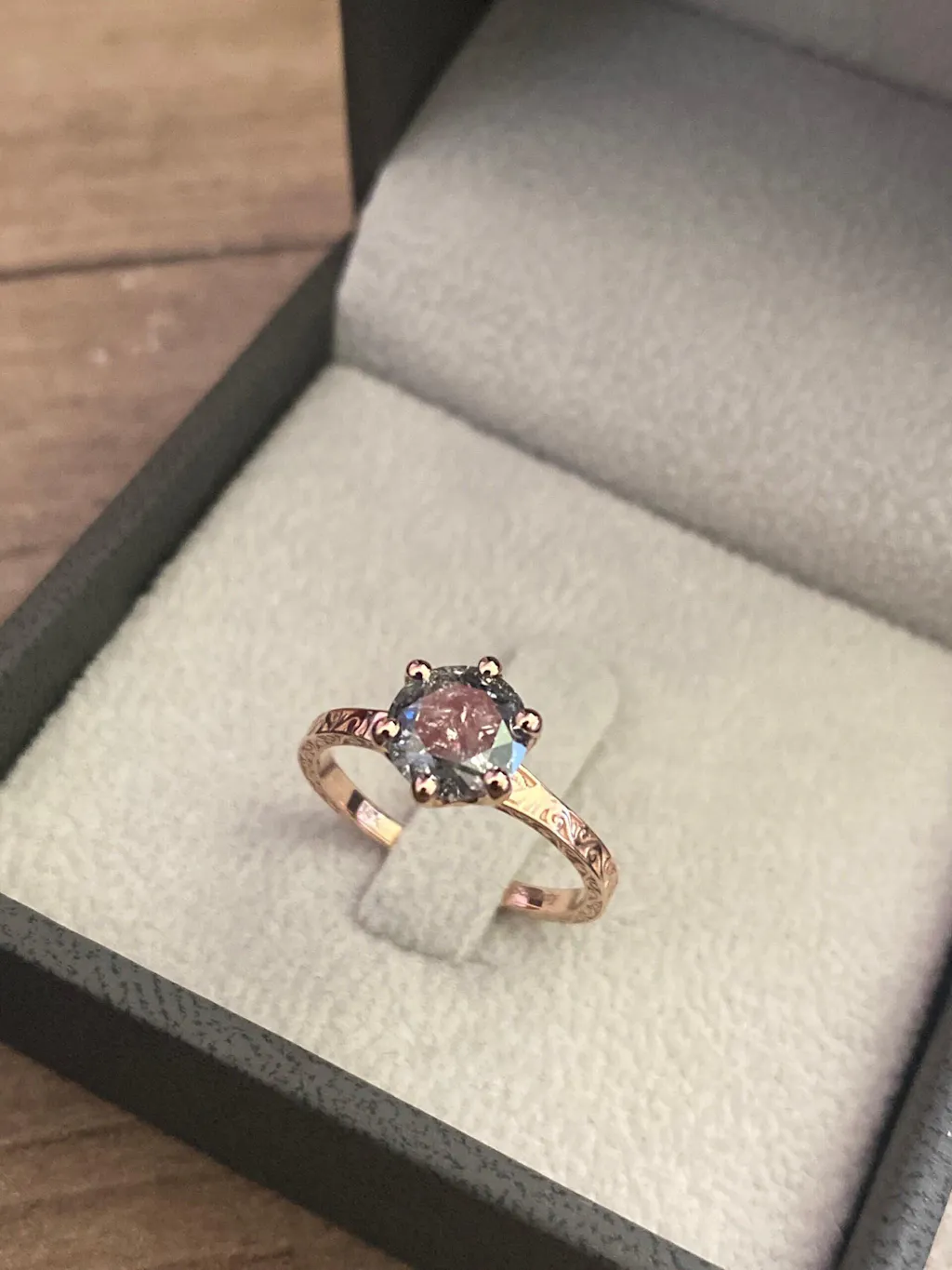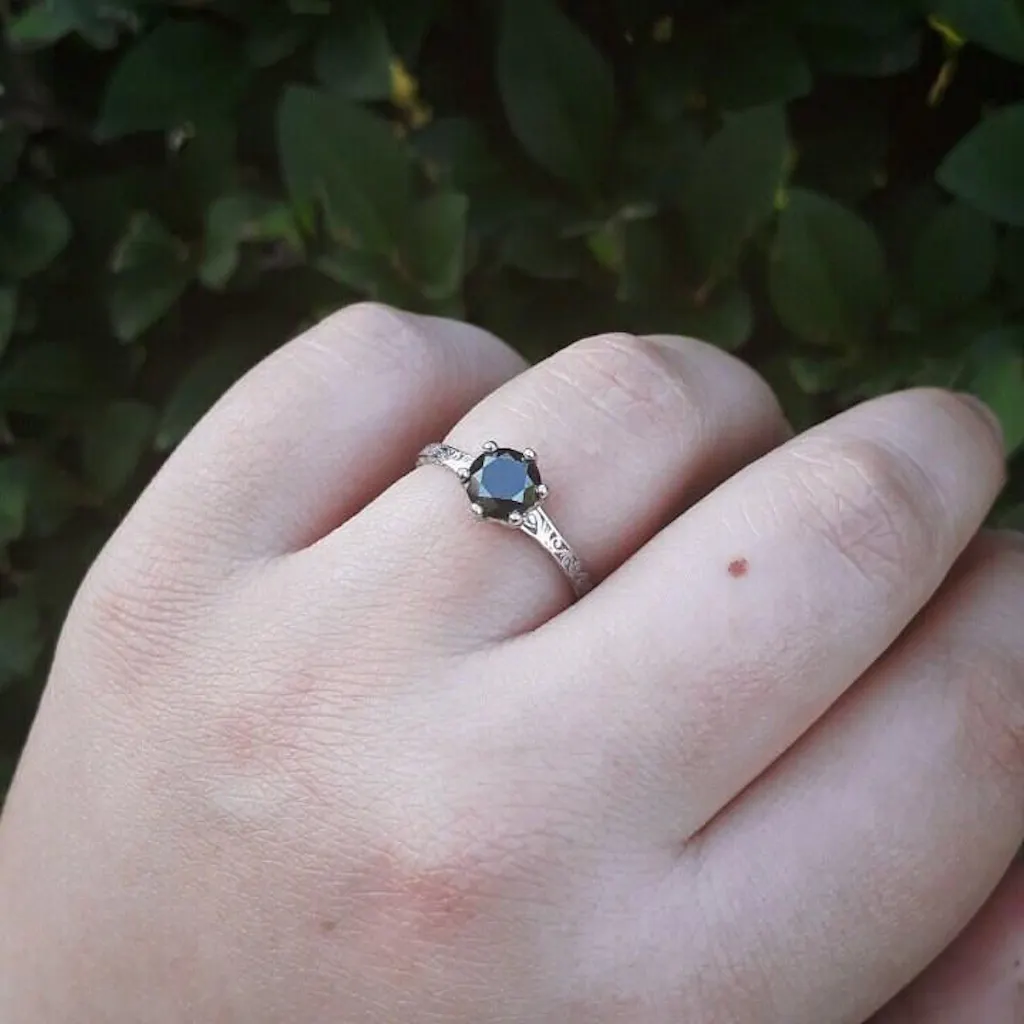 Dark Raw Salt and Pepper Diamond Rose /White /Yellow Gold Engagement Ring Art Deco 1920's Inspired Thin Petite Band 14k Unique Ring for Her