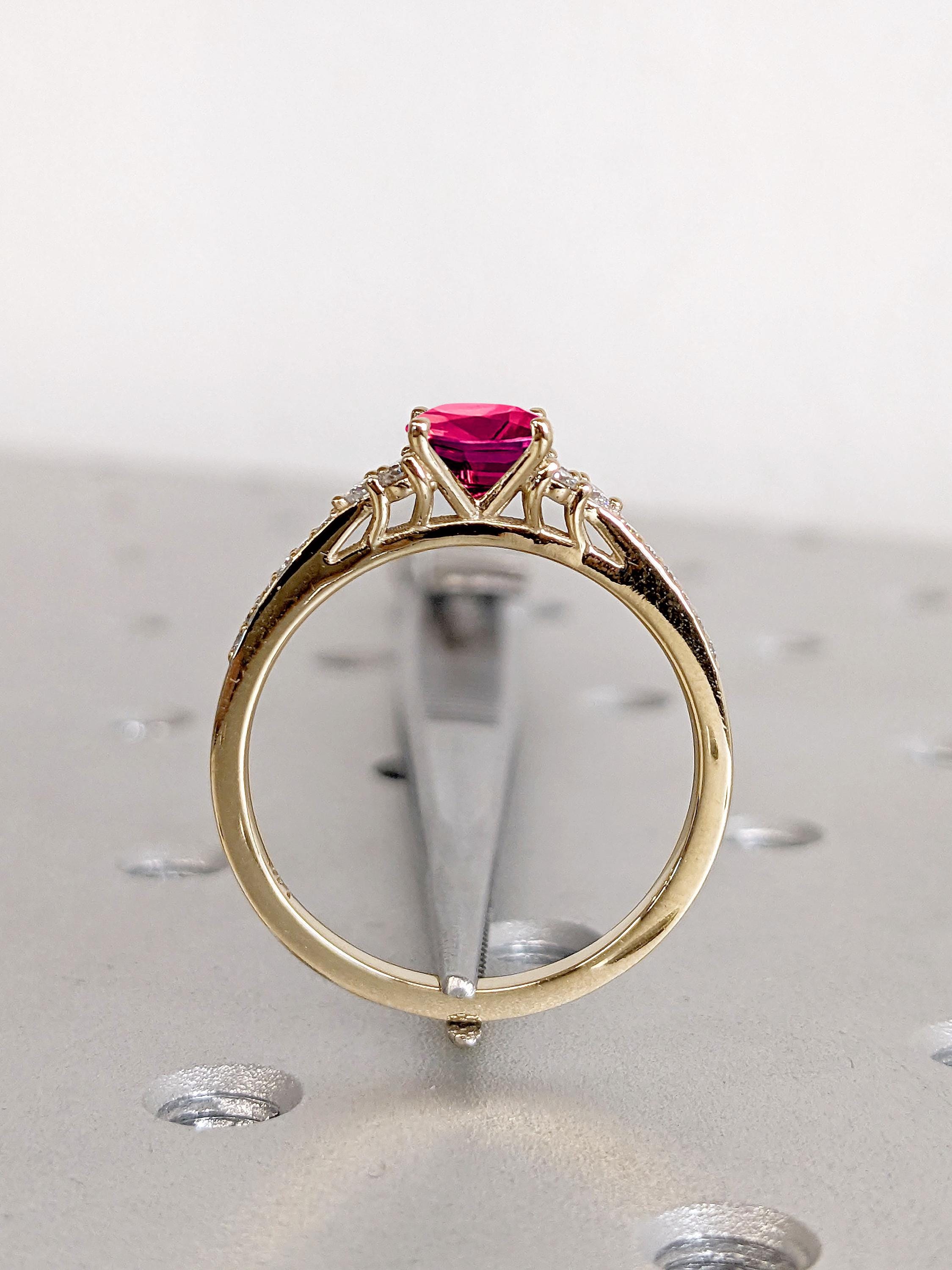 Delicate Engagement Ring | Solid Yellow Gold Ruby Ring | Paved Tiny Moissanite Half Eternity Band | Wedding Anniversary Ring Gift for Wife