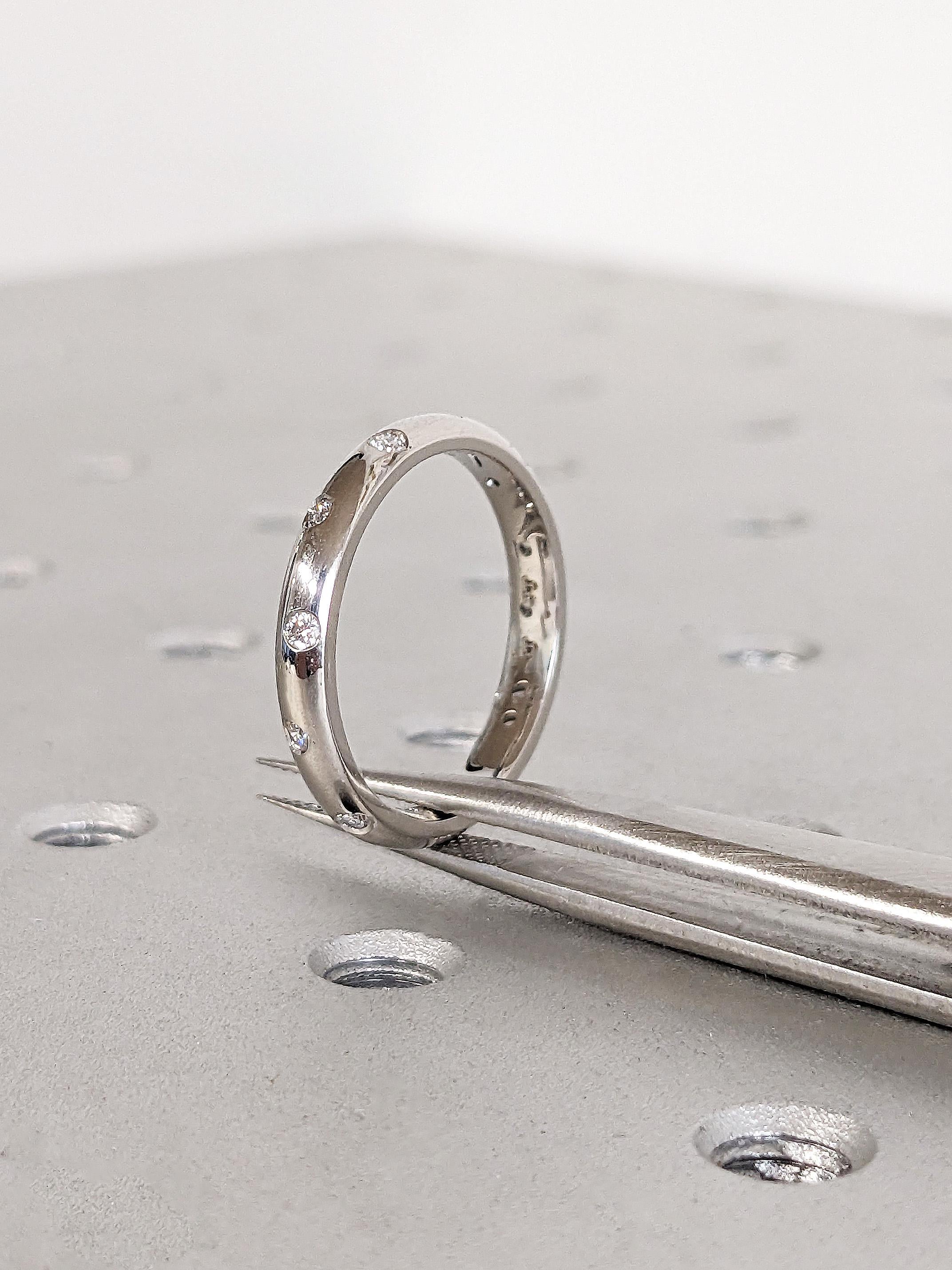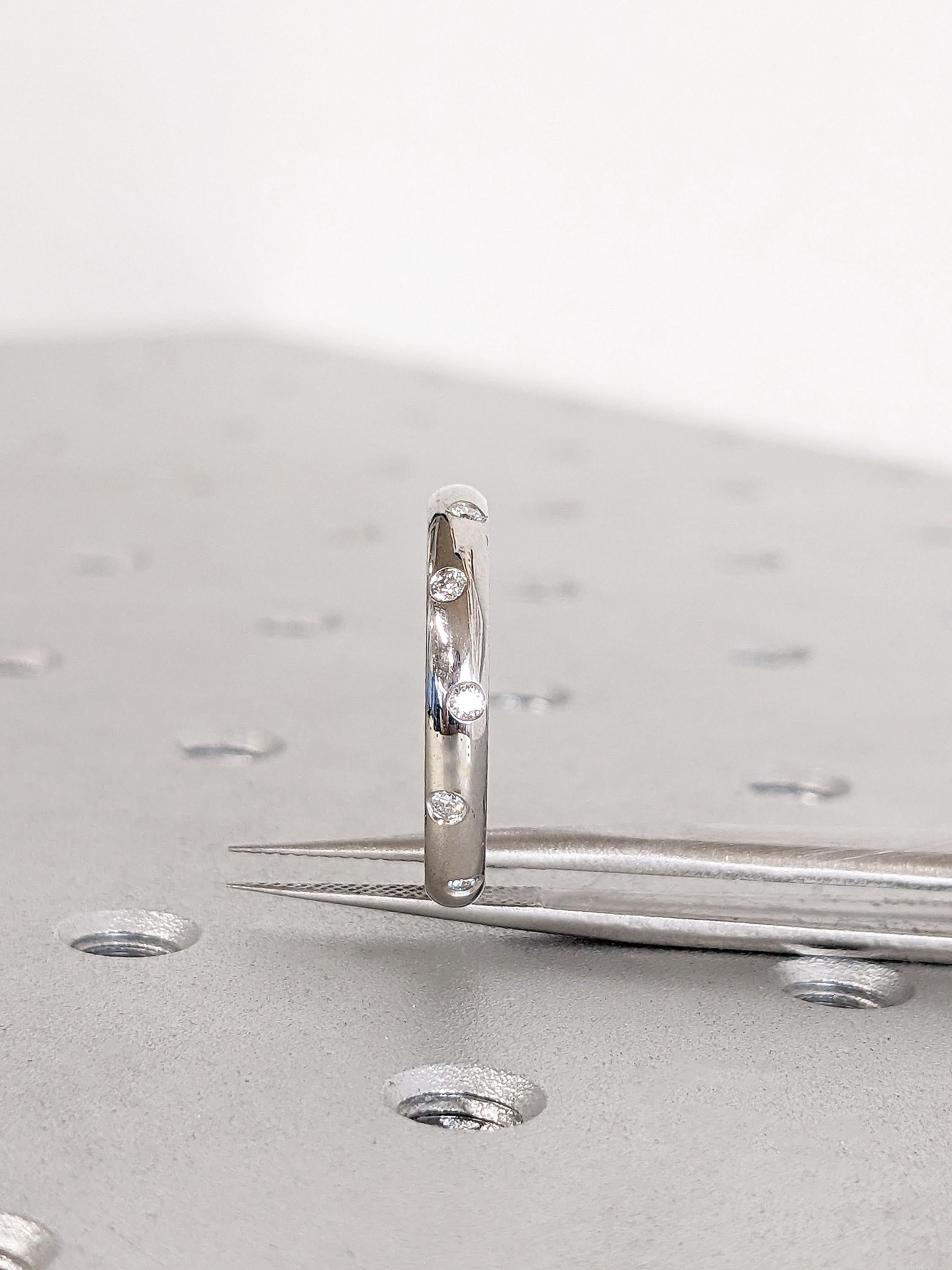 This diamond wedding band features round shaped diamonds elegantly set along a gentle zig zag pattern, creating a modern and distinctive look. Designed with a smooth comfort fit, it’s perfect for everyday wear and suitable for both men and women. With its timeless craftsmanship and refined design, it’s perfect for wearing alone, paired with an engagement ring or stacked with other favorites.