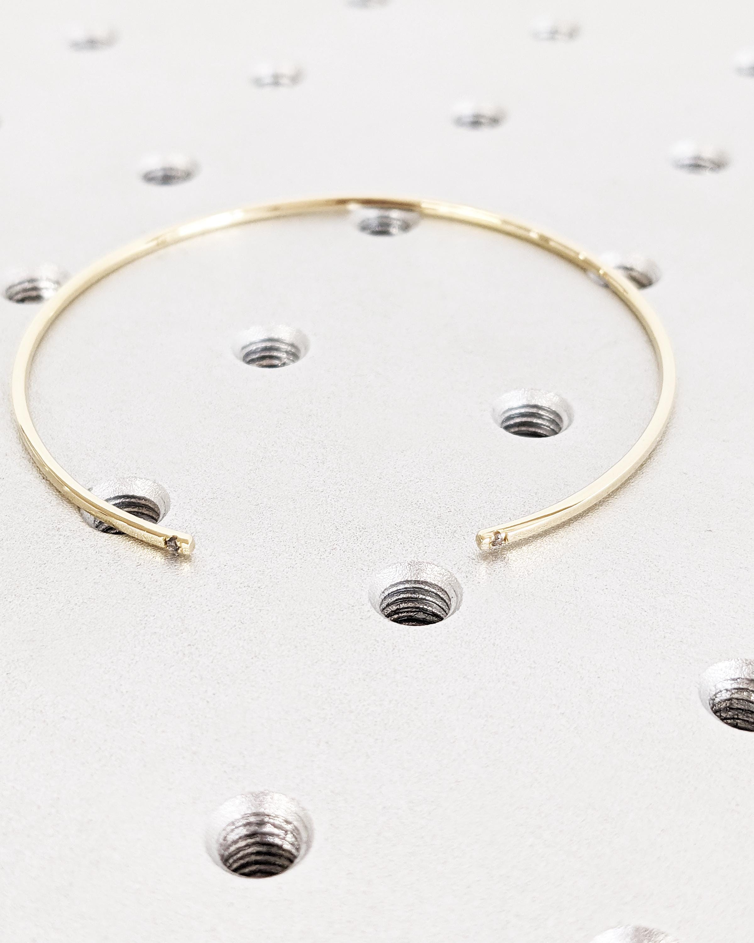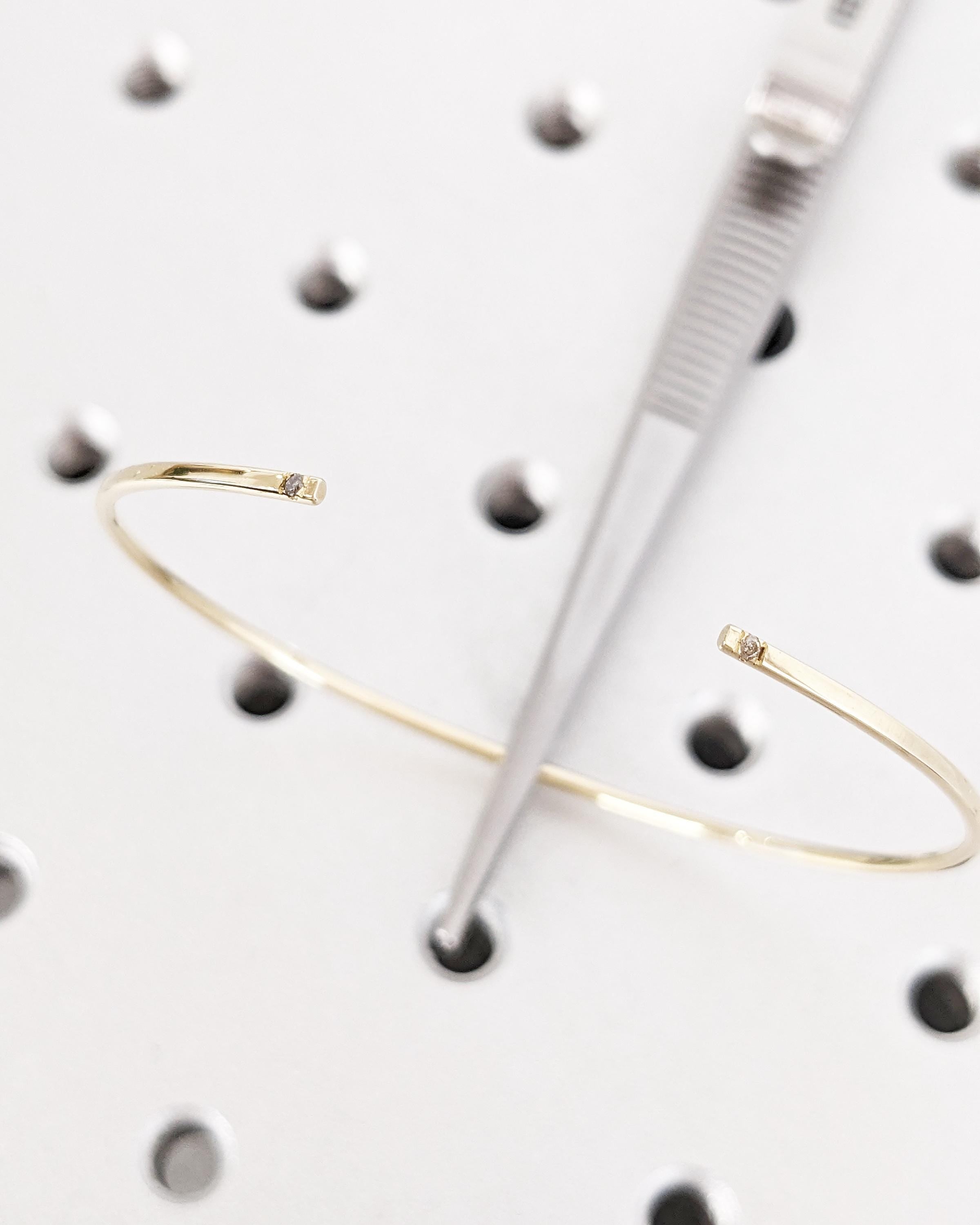 Elegant and versatile, this dainty open cuff bracelet features a salt and pepper diamond at each end for a balanced, sleek touch. Crafted in gold or platinum, the delicate design makes it ideal for layering or wearing alone. Lightweight and stylish, it’s perfect for daily wear or special occasions.