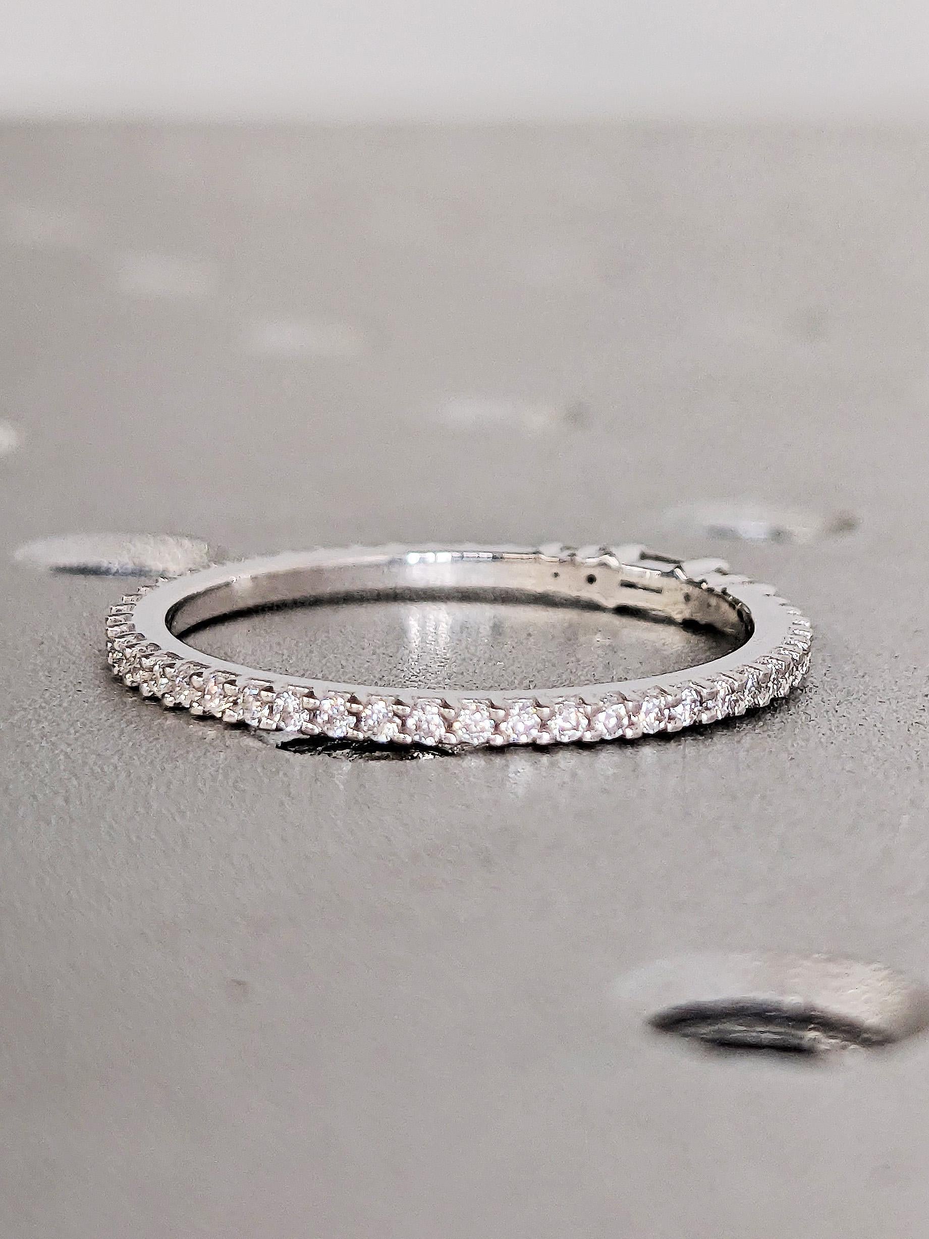Diamond Stacking Ring, Dainty 14K Gold White Diamond Wedding Band, Thin Full Eternity Matching Engagement Ring, Custom Bridal Jewelry
